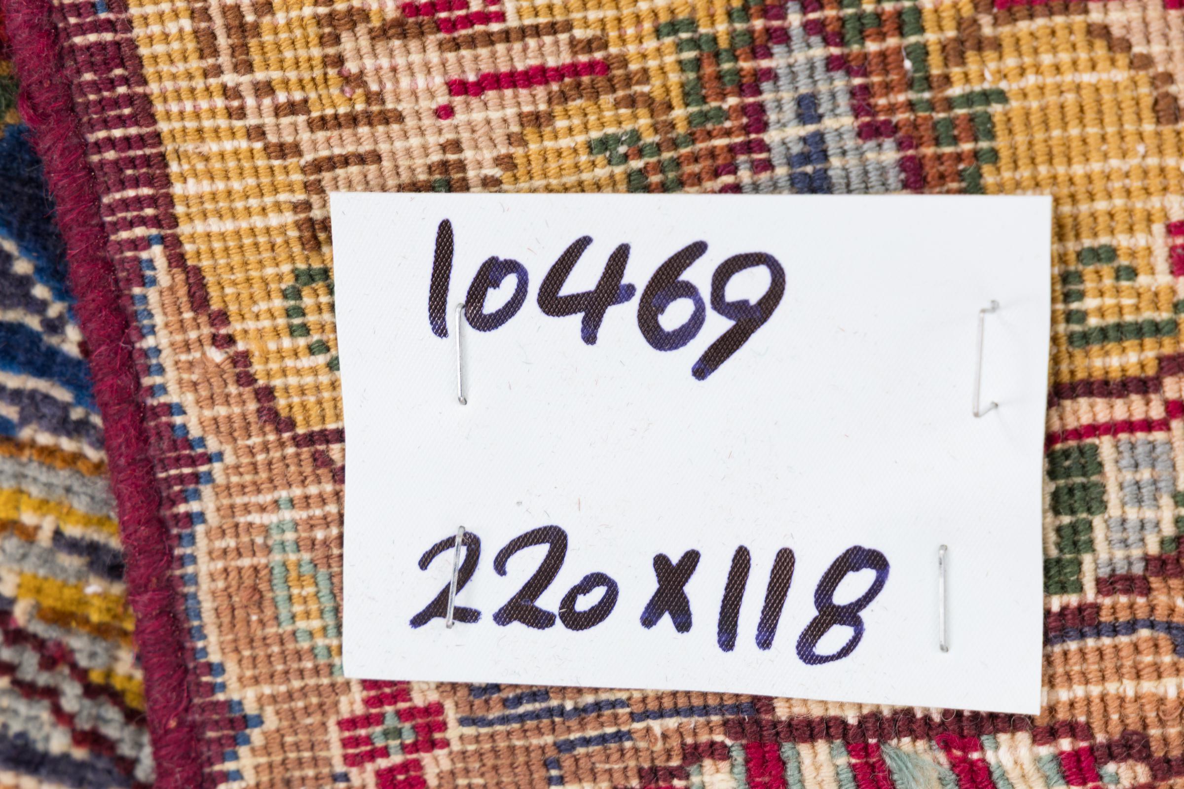 Carpet ID: 284145008014769 Size: 219x117 cm Thickness: ap. 12 mm Knot density: 200 000 - 250 000 / m² Manufacturing: Knotted by hand Pile: Handspun wool Warp: Cotton Condition / Conservation Carpet is severely and uniformly frayed Origin: Persia Age: 30-50 years (New) Weight: ap. 9 kg In stock: Unique - Only 1 in stock