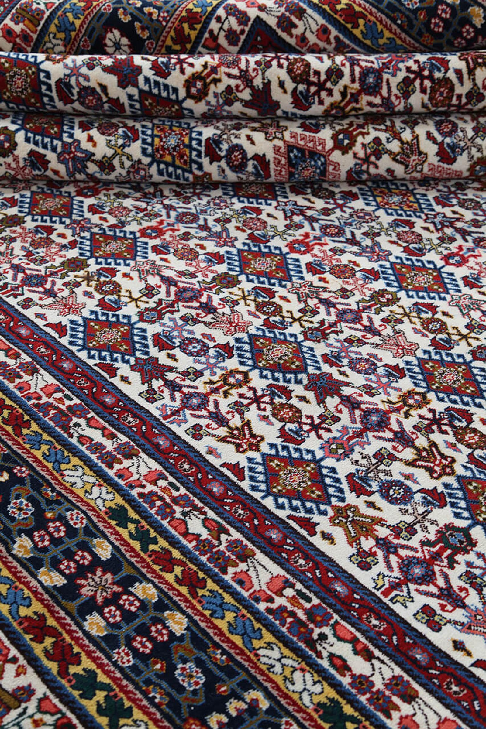 This carpet comes from Iran (formerly Persia) and as a Persian rug enjoys probably the highest reputation among all hand-knotted rug types. No other region looks back on such a long tradition in rug making as Iran. Thus, the probably finest and most elaborate rugs originate here. The robustness, durability and quality of the Persian knot are still unsurpassed today. Persian rugs are usually named after their region of origin. For instance, a Nain, a Ghom as well as an Isfahan carpet comes from the city of the same name in Iran.