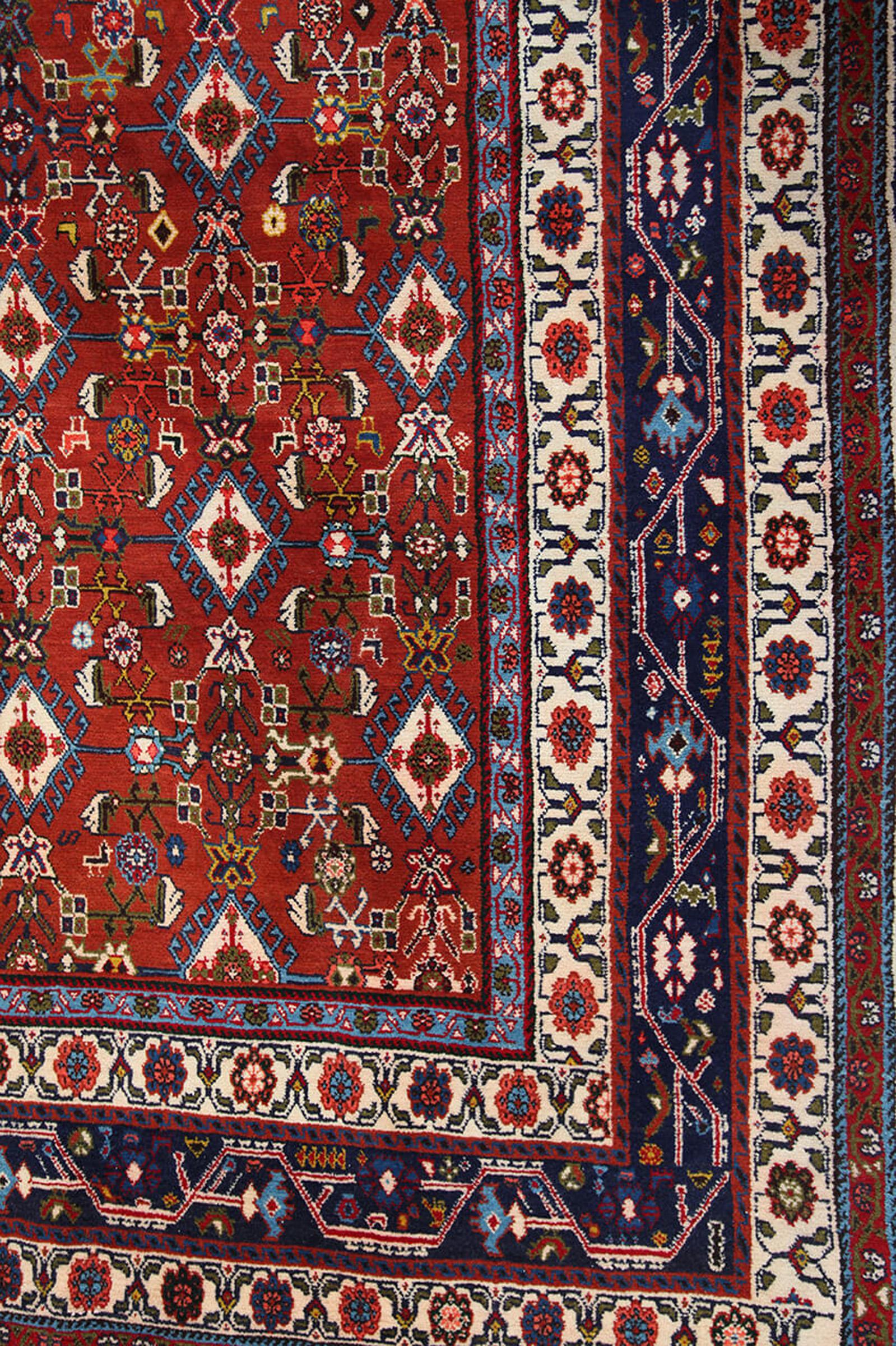 This carpet comes from Iran (formerly Persia) and as a Persian rug enjoys probably the highest reputation among all hand-knotted rug types. No other region looks back on such a long tradition in rug making as Iran. Thus, the probably finest and most elaborate rugs originate here. The robustness, durability and quality of the Persian knot are still unsurpassed today. Persian rugs are usually named after their region of origin. For instance, a Nain, a Ghom as well as an Isfahan carpet comes from the city of the same name in Iran.