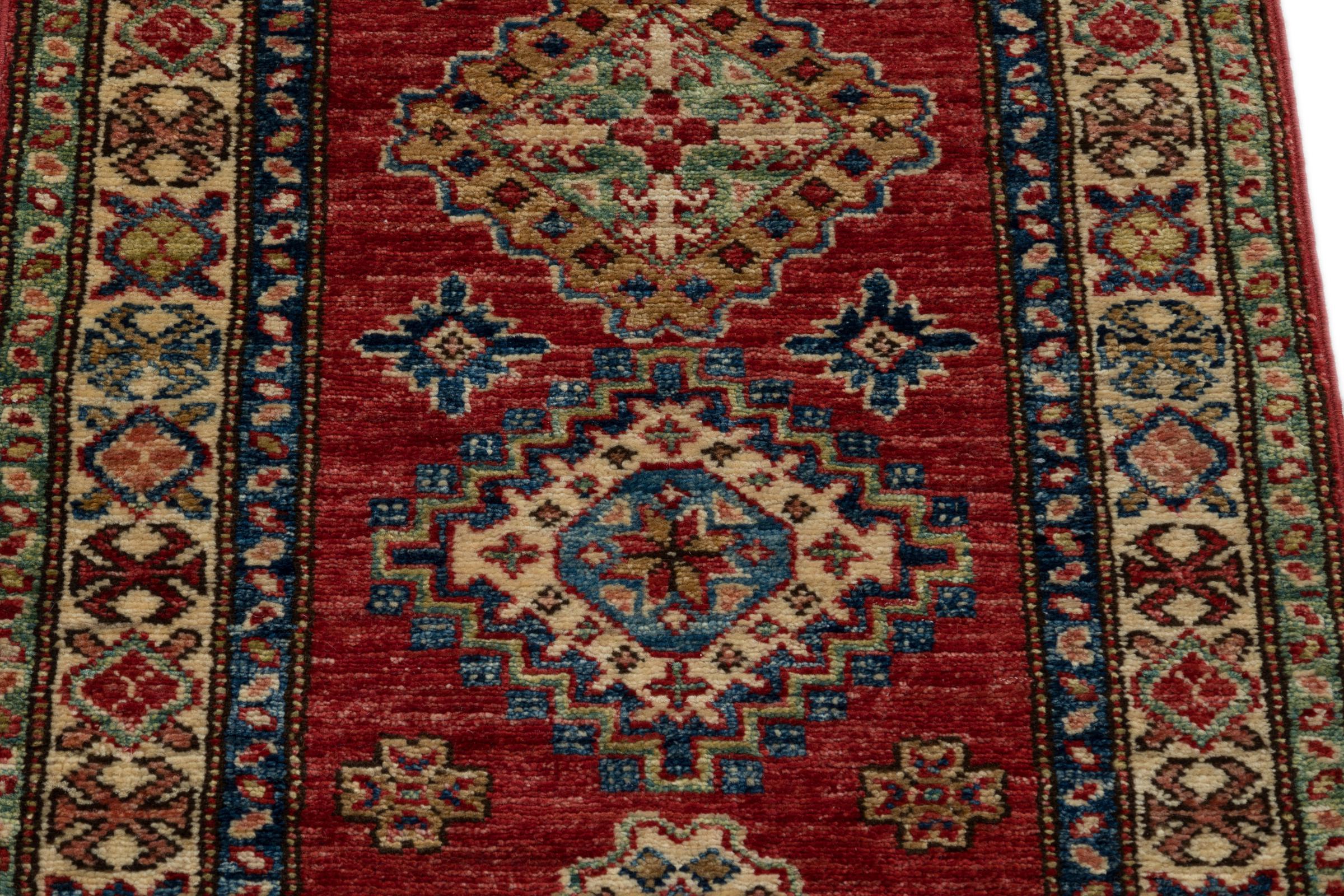 Carpet ID: 263579002834077 Size: 162x52 cm Thickness: ap. 5 mm Knot density: 144 000 - 180 000 / m² Manufacturing: Knotted by hand Pile: Handspun wool Warp: Cotton Origin: Pakistan Age: New Weight: ap. 2 kg In stock: Unique - Only 1 in stock
