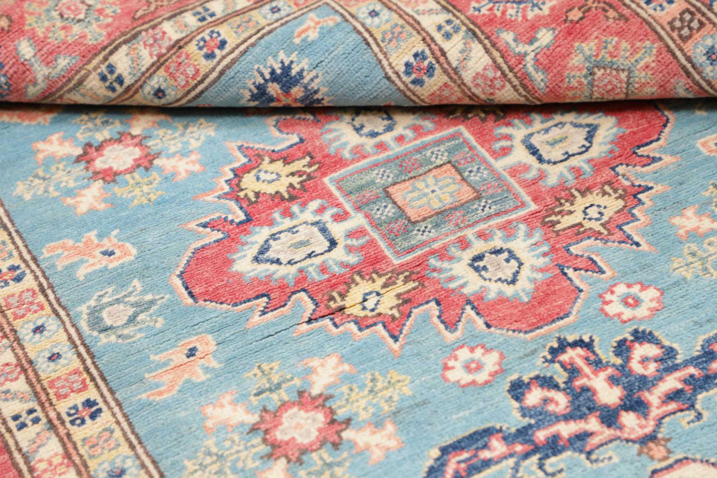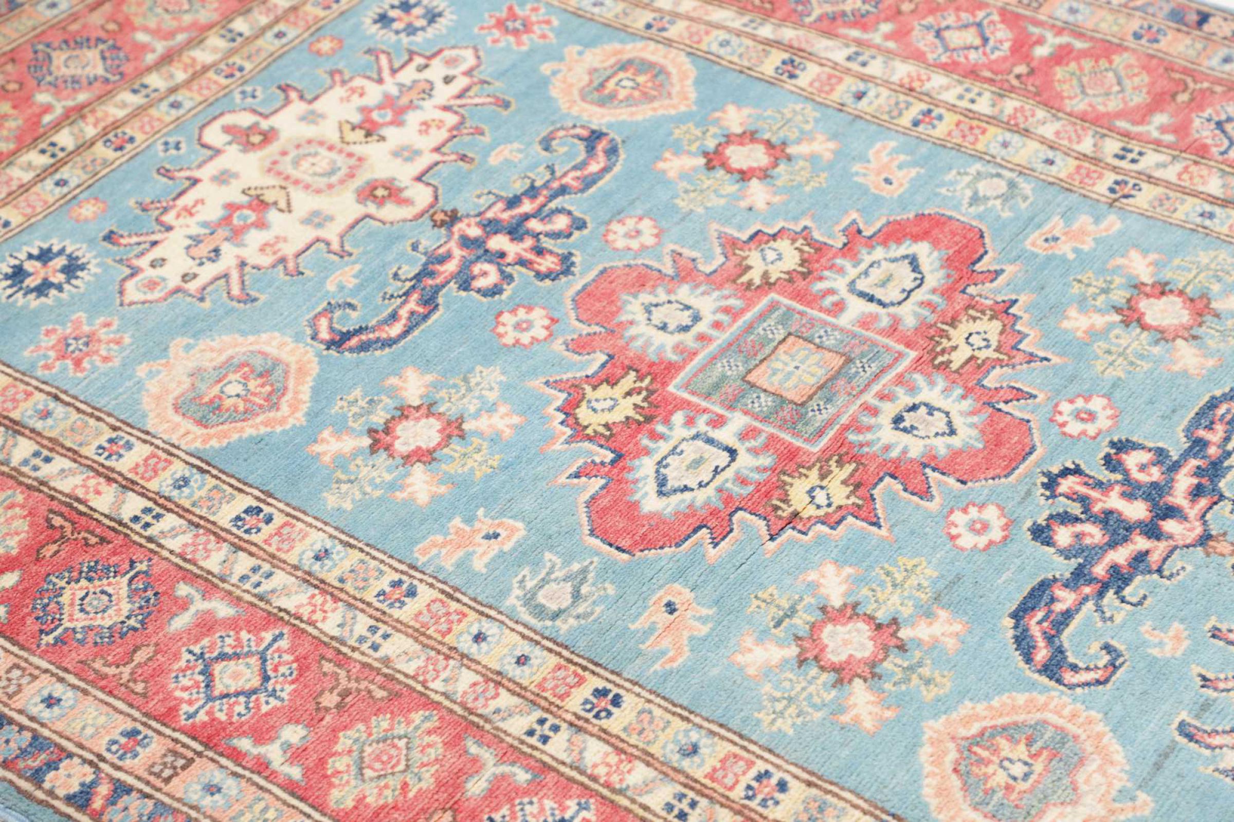 Kazak rugs are originally Caucasian rugs and are considered the best of their kind. They are hand-knotted from high-quality wool and are characterised by their design with warm natural colours and straight geometric shapes.