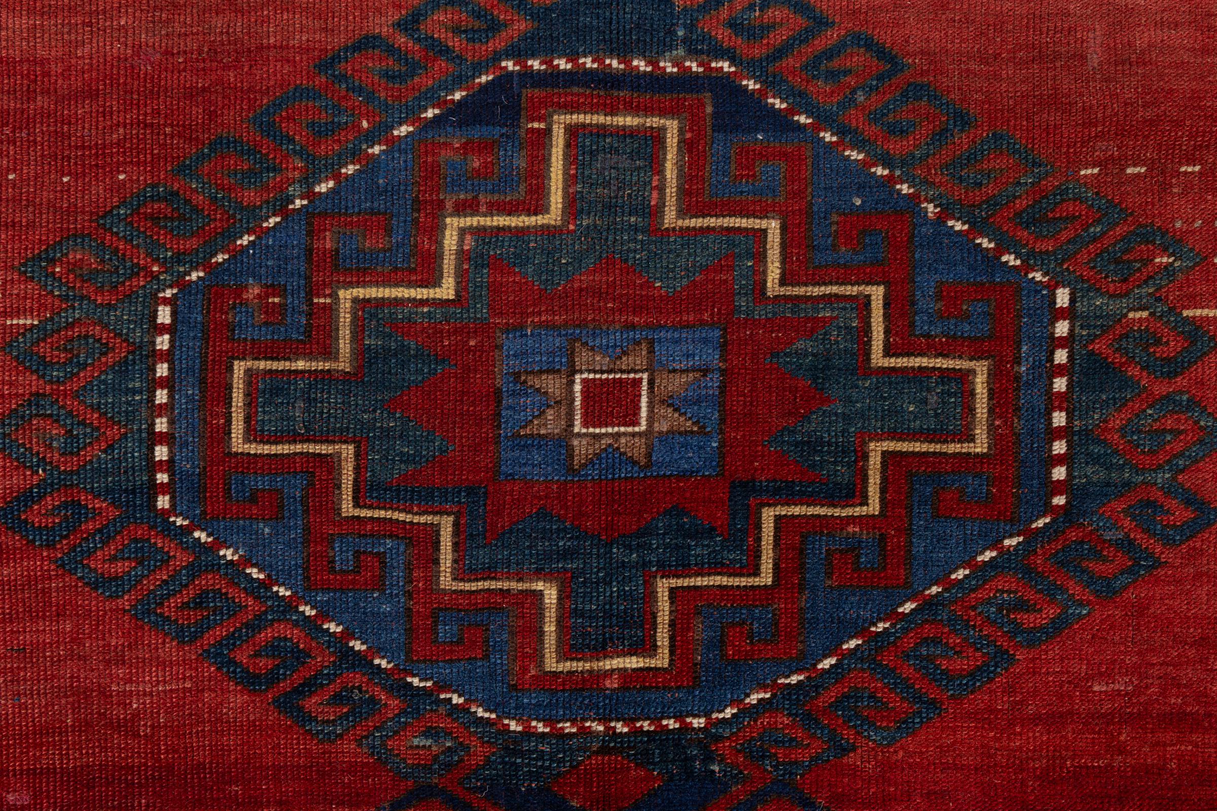 Carpet ID: 299038001141 Size: 179x133 cm Thickness: ap. 5 mm Knot density: 200 000 - 250 000 / m² Manufacturing: Knotted by hand Pile: Handspun wool Warp: Sheep wool Origin: Azerbaijan / Russia Age: Old/Semi antique, over 50 years Weight: ap. 6 kg In stock: Unique - Only 1 in stock