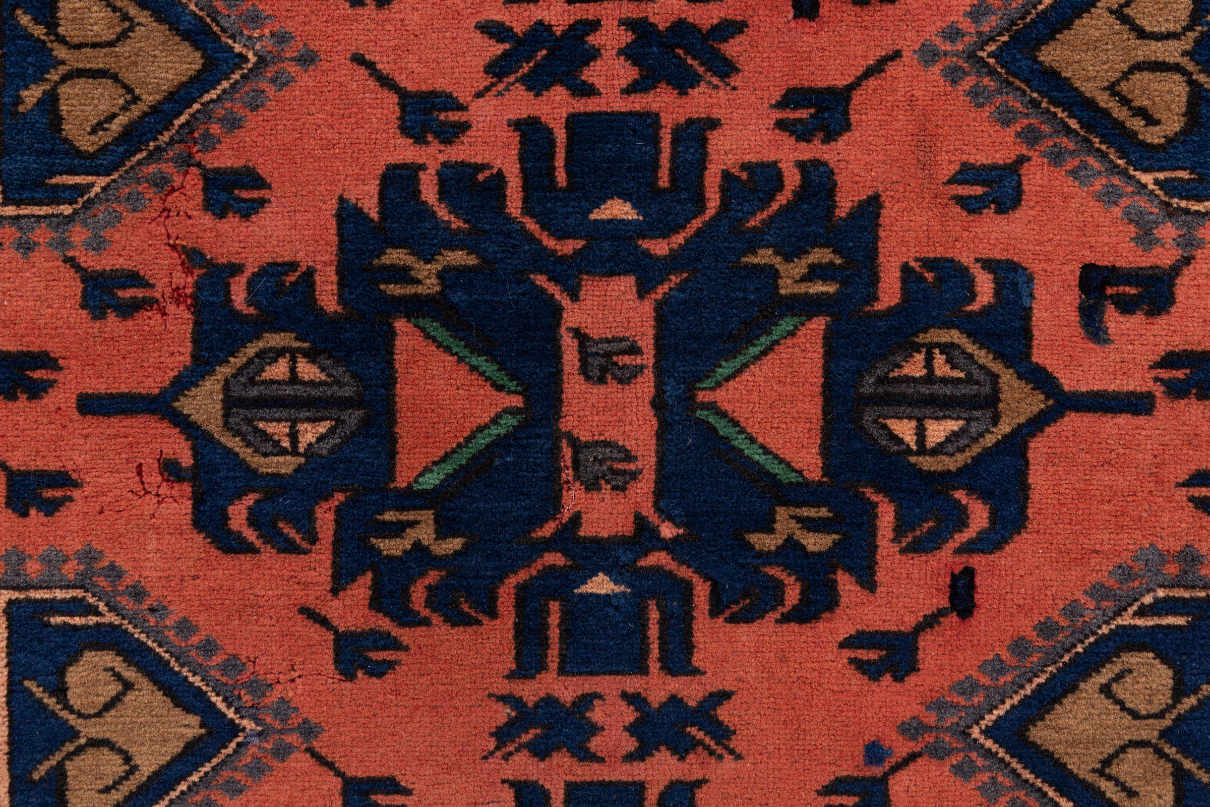 Carpet ID: 298963007224 Size: 196x119 cm Thickness: ap. 5 mm Knot density: 440 000 - 490 000 / m² Manufacturing: Knotted by hand Pile: Handspun wool Warp: Sheep wool Origin: Azerbaijan / Russia Age: Old/Semi antique, over 50 years Weight: ap. 6 kg In stock: Unique - Only 1 in stock