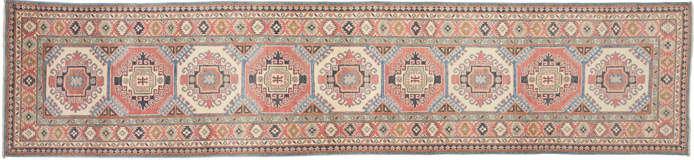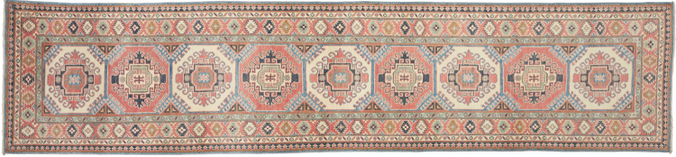 Kazak rugs are originally Caucasian rugs and are considered the best of their kind. They are hand-knotted from high-quality wool and are characterised by their design with warm natural colours and straight geometric shapes.