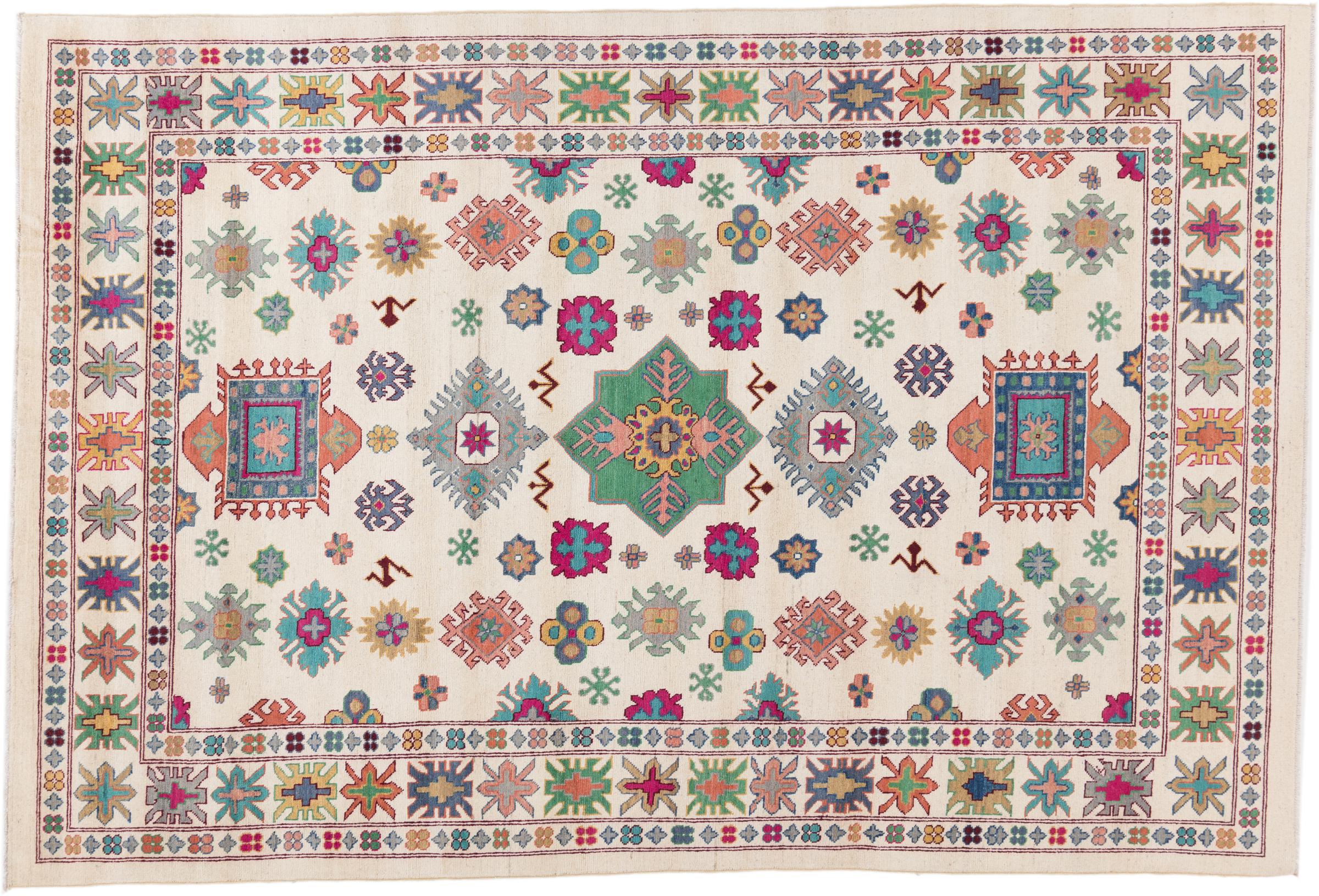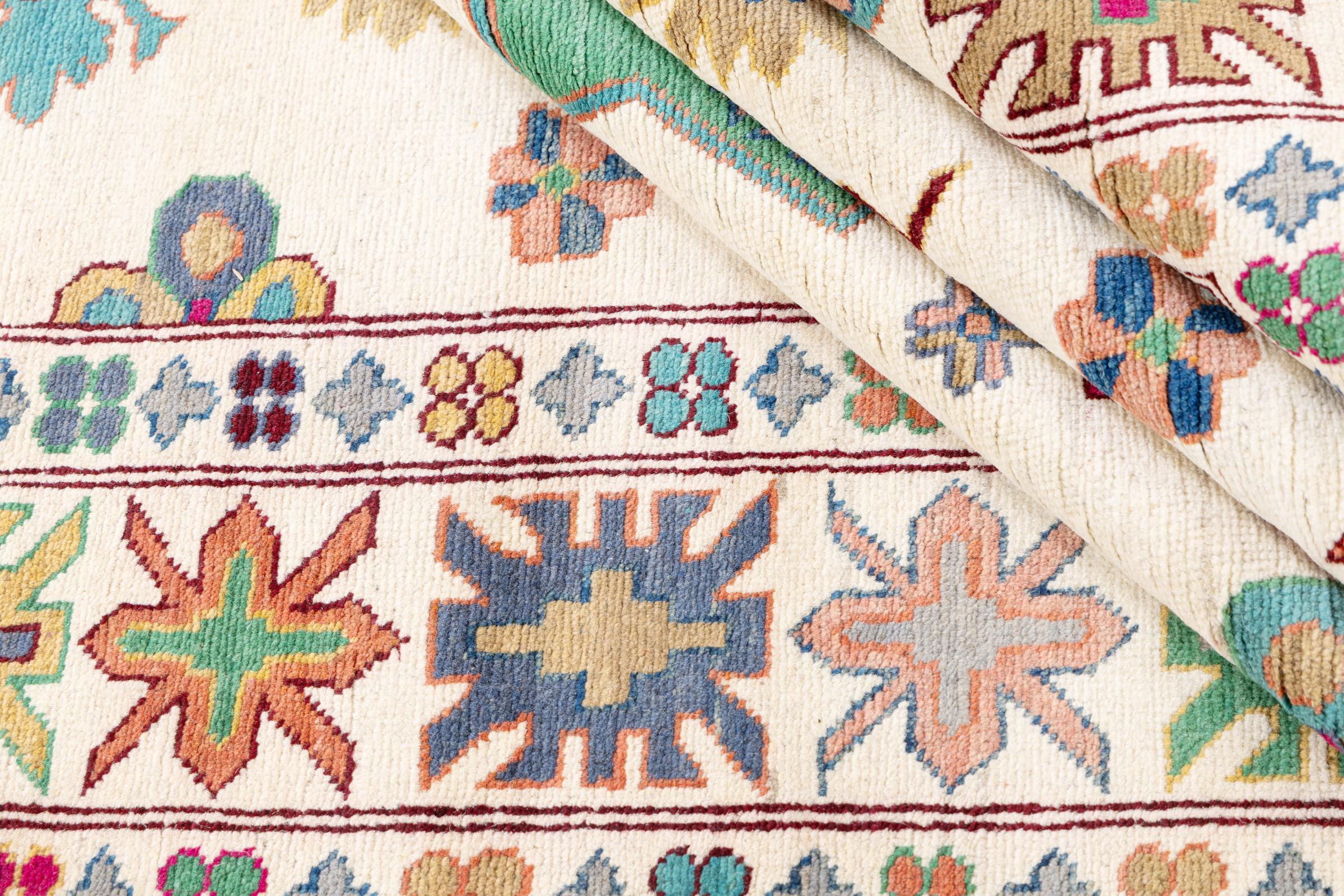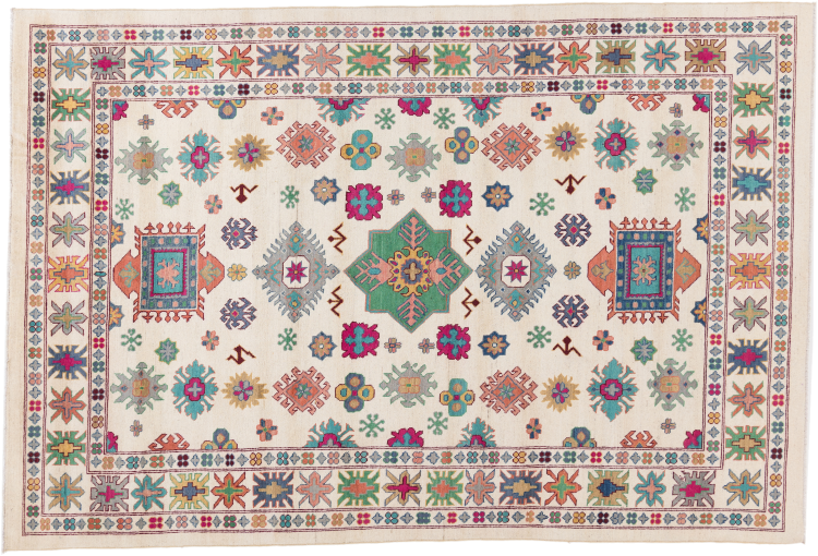 Kazak rugs are originally Caucasian rugs and are considered the best of their kind. They are hand-knotted from high-quality wool and are characterised by their design with warm natural colours and straight geometric shapes.