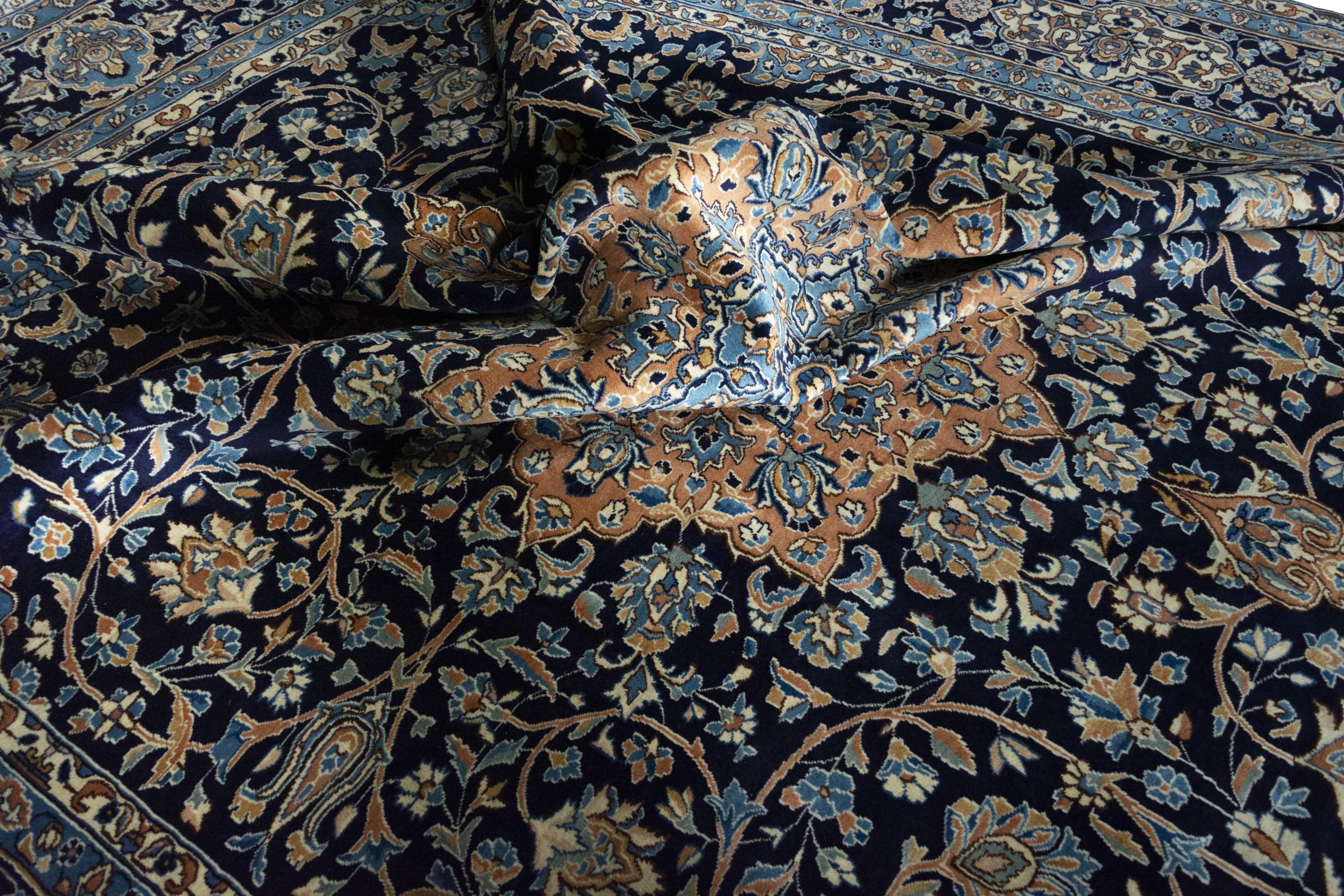 This Kerman carpet is truly impressive, its quality and design are a wonderful composition of oriental art. It has been crafted by hand in Kerman, an oasis in a desert far out from Teheran. Floral ornaments are typical for this type of carpet, something you value highly in an oasis of the wide desert. The design of these carpets is unique and special among other Persian rugs.