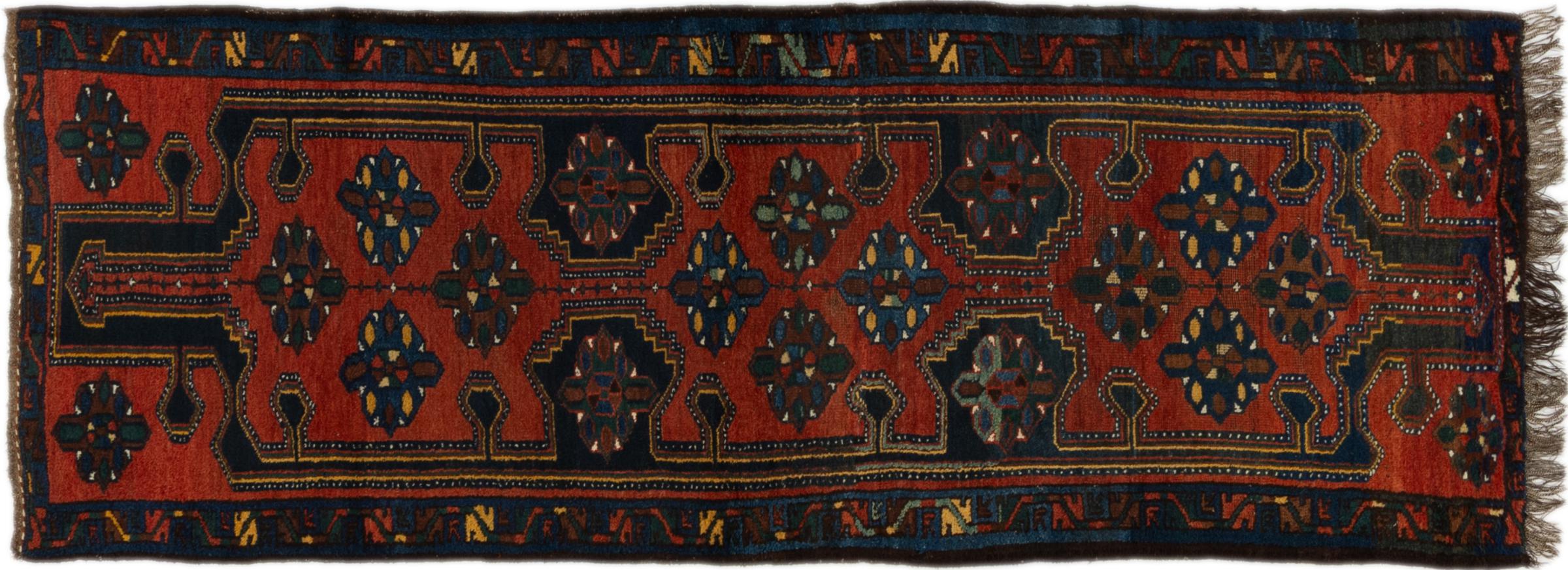Carpet ID: 297130001591155 Size: 314x146 cm Thickness: ap. 12 mm Knot density: 128 000 - 160 000 / m² Manufacturing: Knotted by hand Pile: Sheep wool Warp: Sheep wool Origin: Persia Age: 30-50 years (New) Weight: ap. 16 kg In stock: Unique - Only 1 in stock