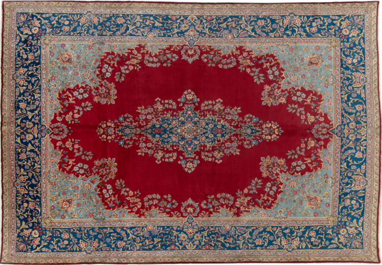 Once, hand-knotted rugs from the desert city of Kerman were considered the best Persian and oriental rugs. Today this reputation is no longer true, but these Persian rugs are still undisputedly among the highest quality oriental rugs. Kerman rugs are known for their rich floral ornaments, the strong plant colours and their pompous medallions in the centre. Kerman carpets have a long tradition.