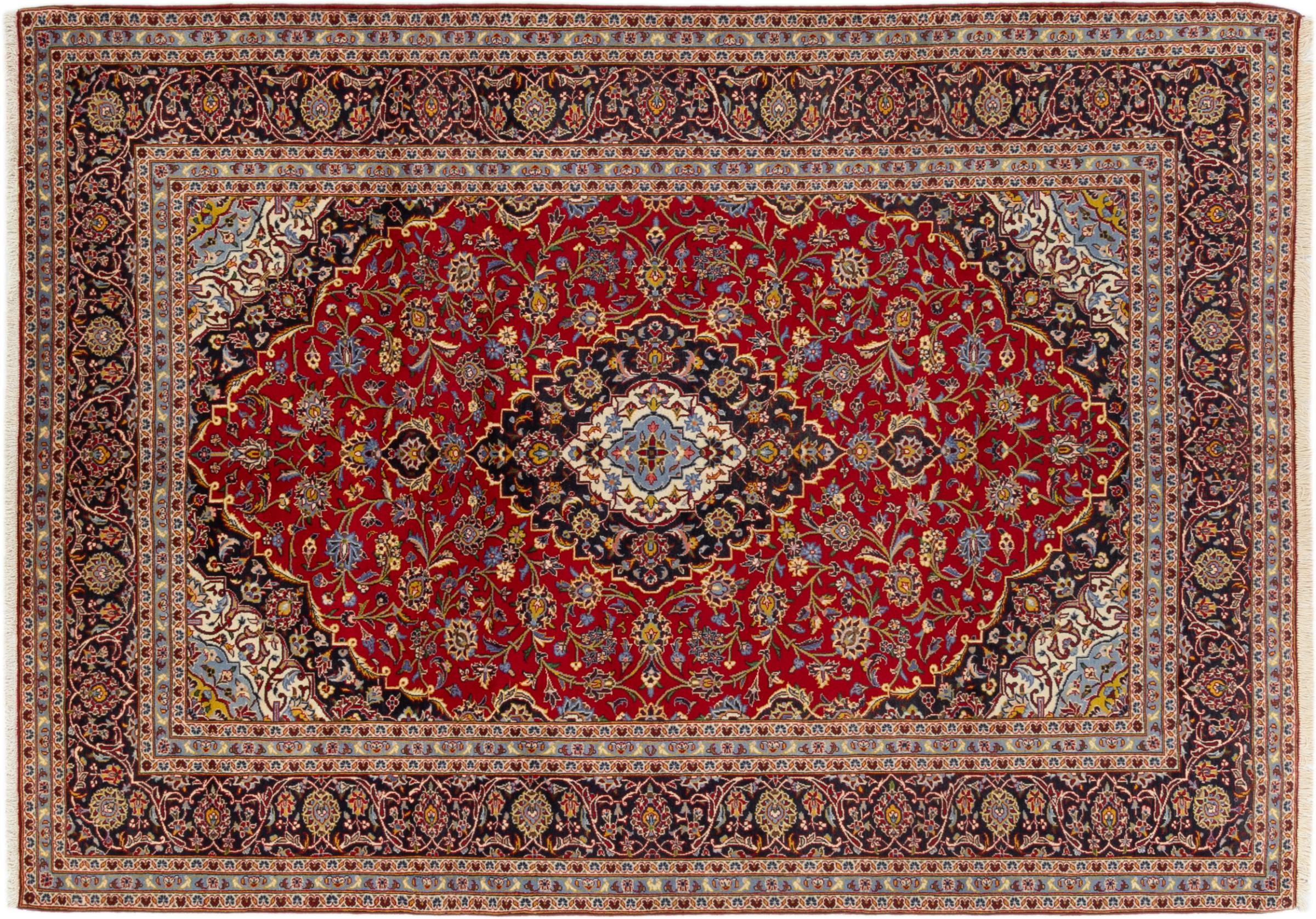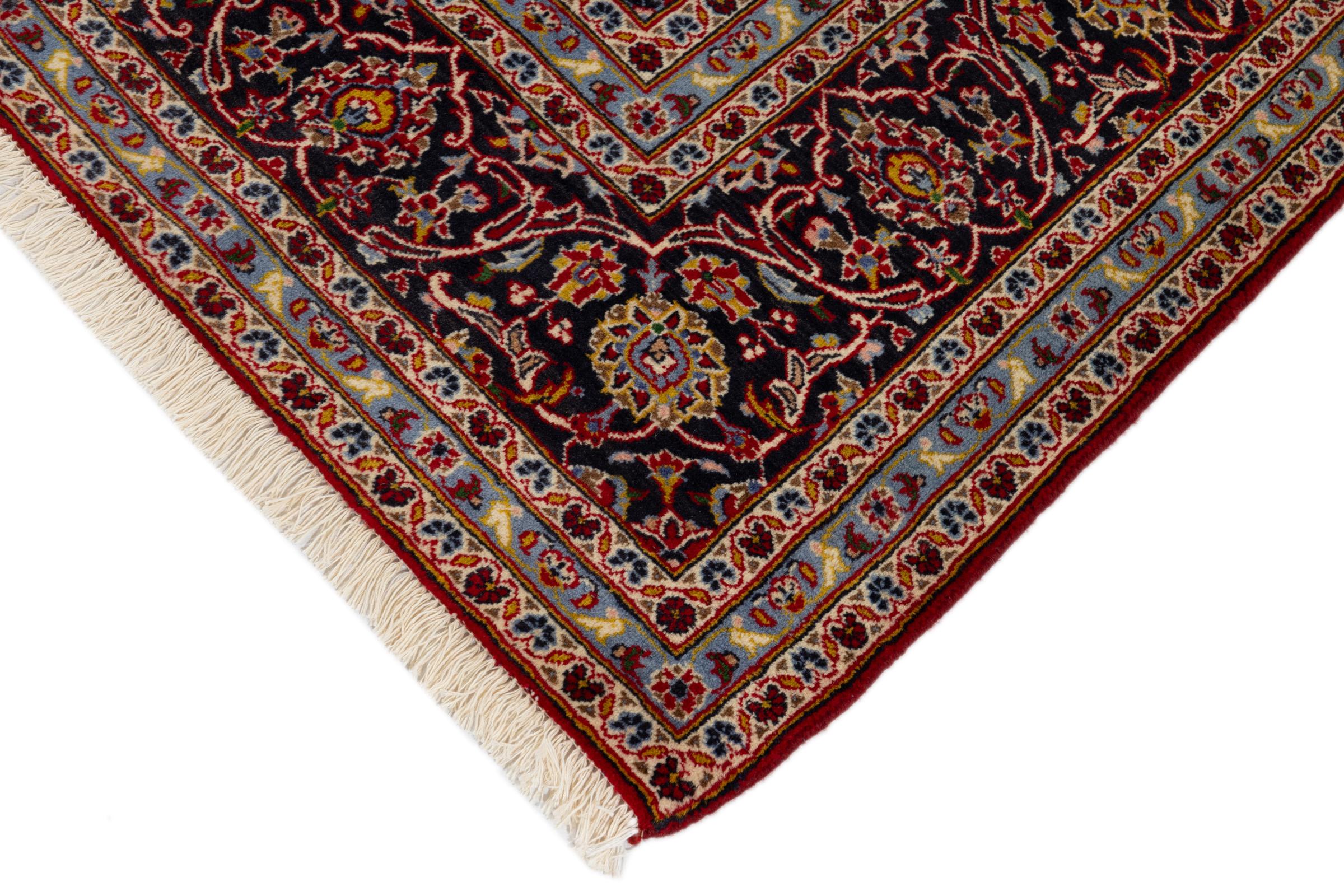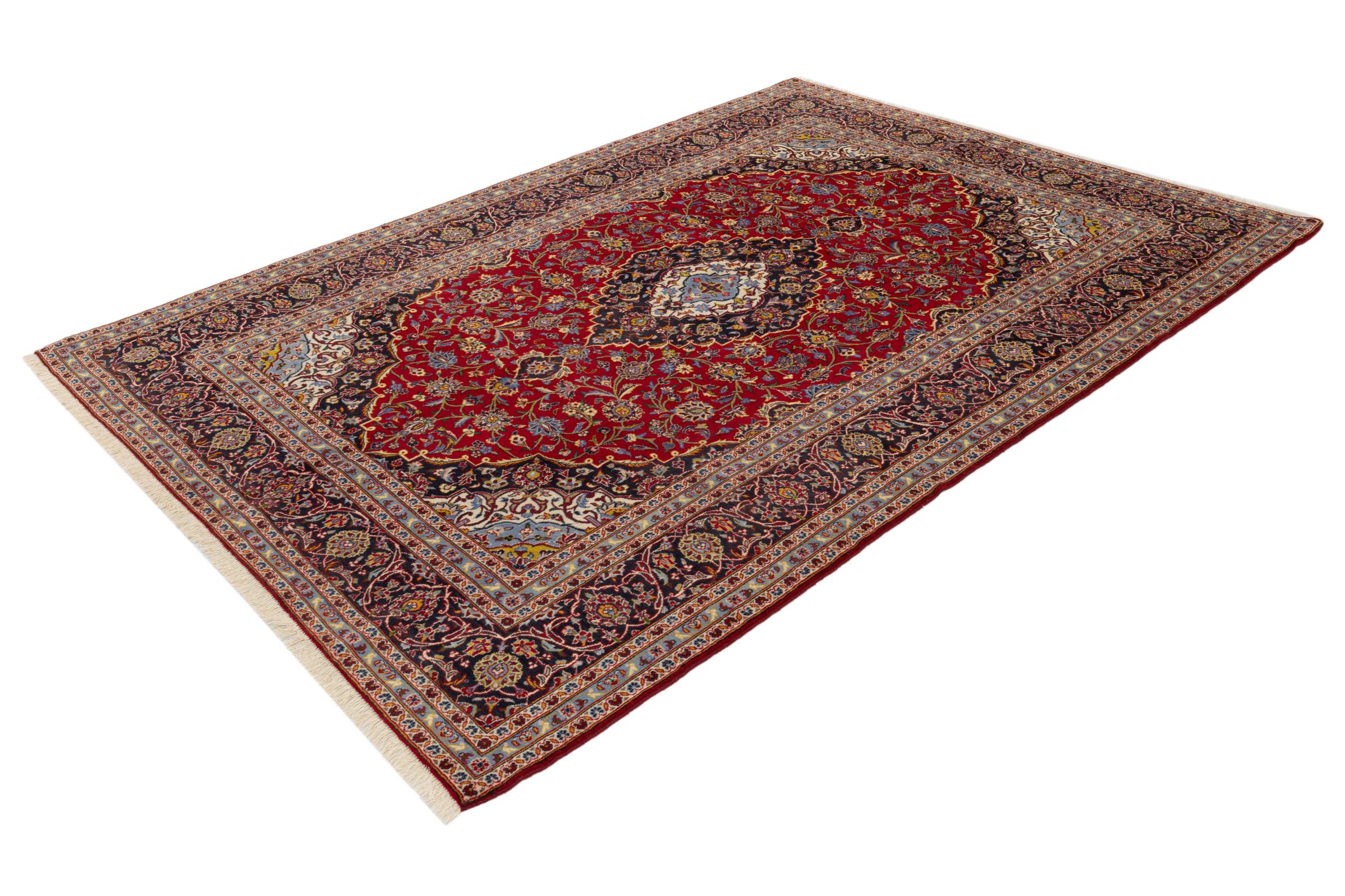 Hand knotted rugs from the city of Kashan (Keshan) are known worldwide. Not only do these Persian rugs have a very popular design, but their quality is undisputedly one of the best. In the Persian Empire the city was considered one of the most important trading places along the famous Silk Road. Kashan rugs usually have a central medallion, floral ornaments and a red background. They are made of high-quality sheep's wool and vegetable dyes.