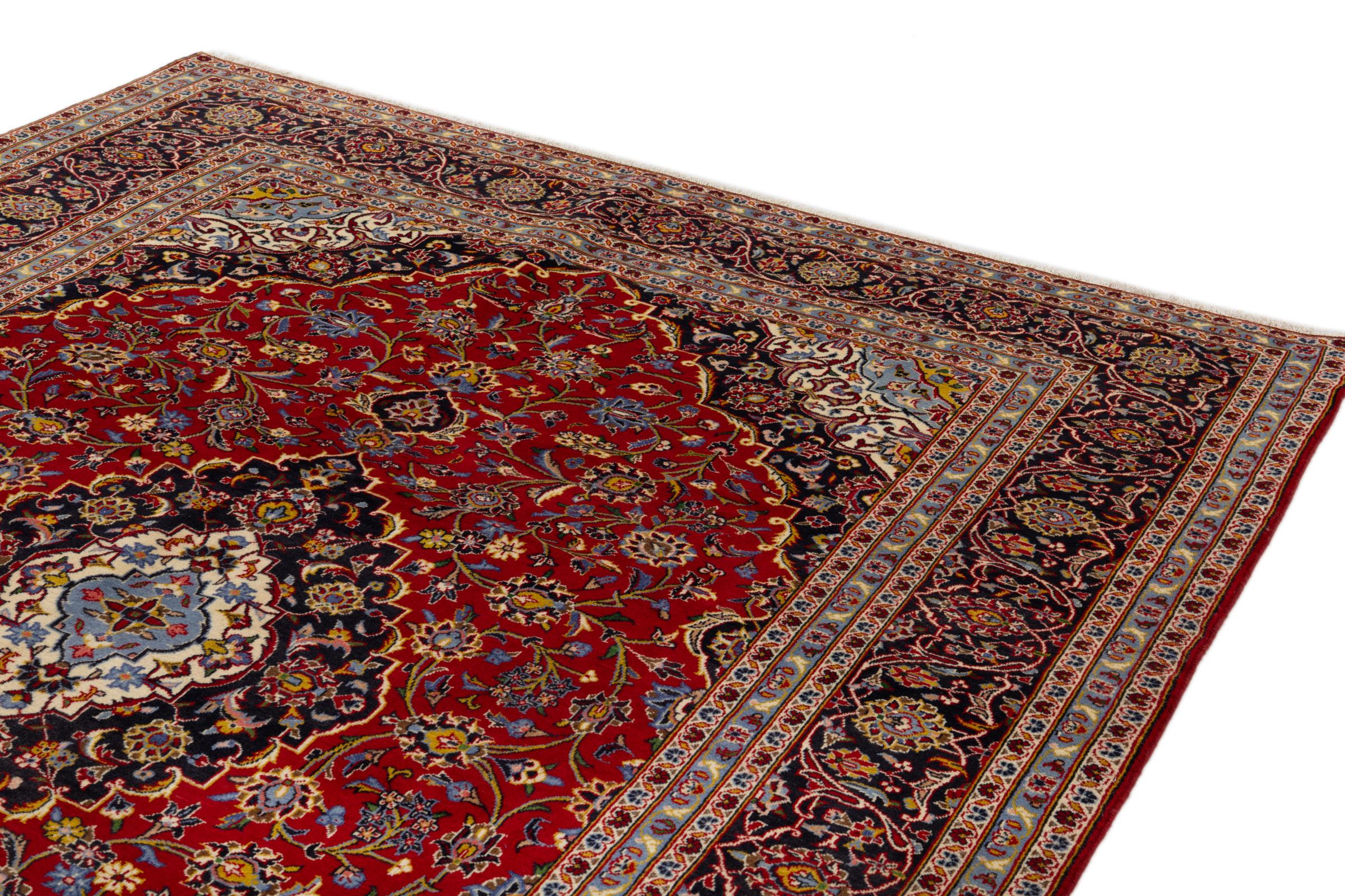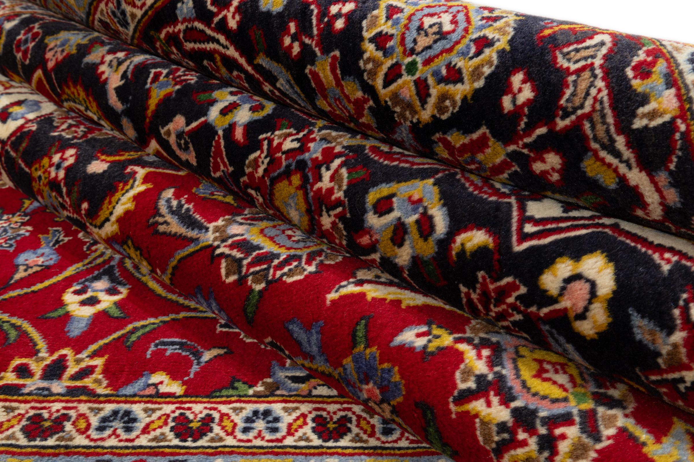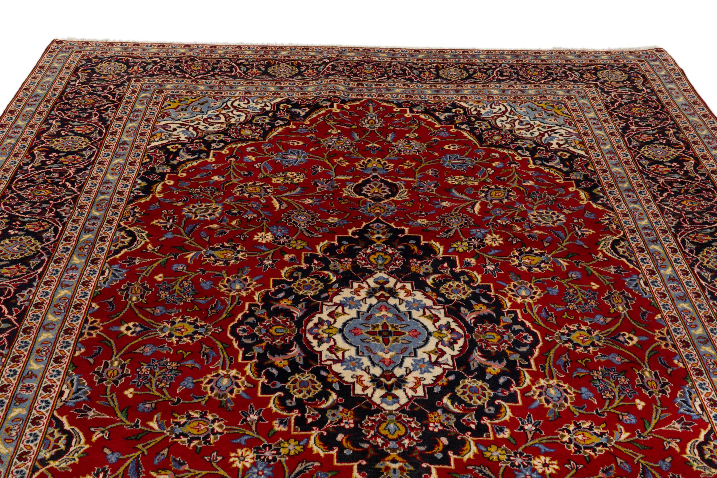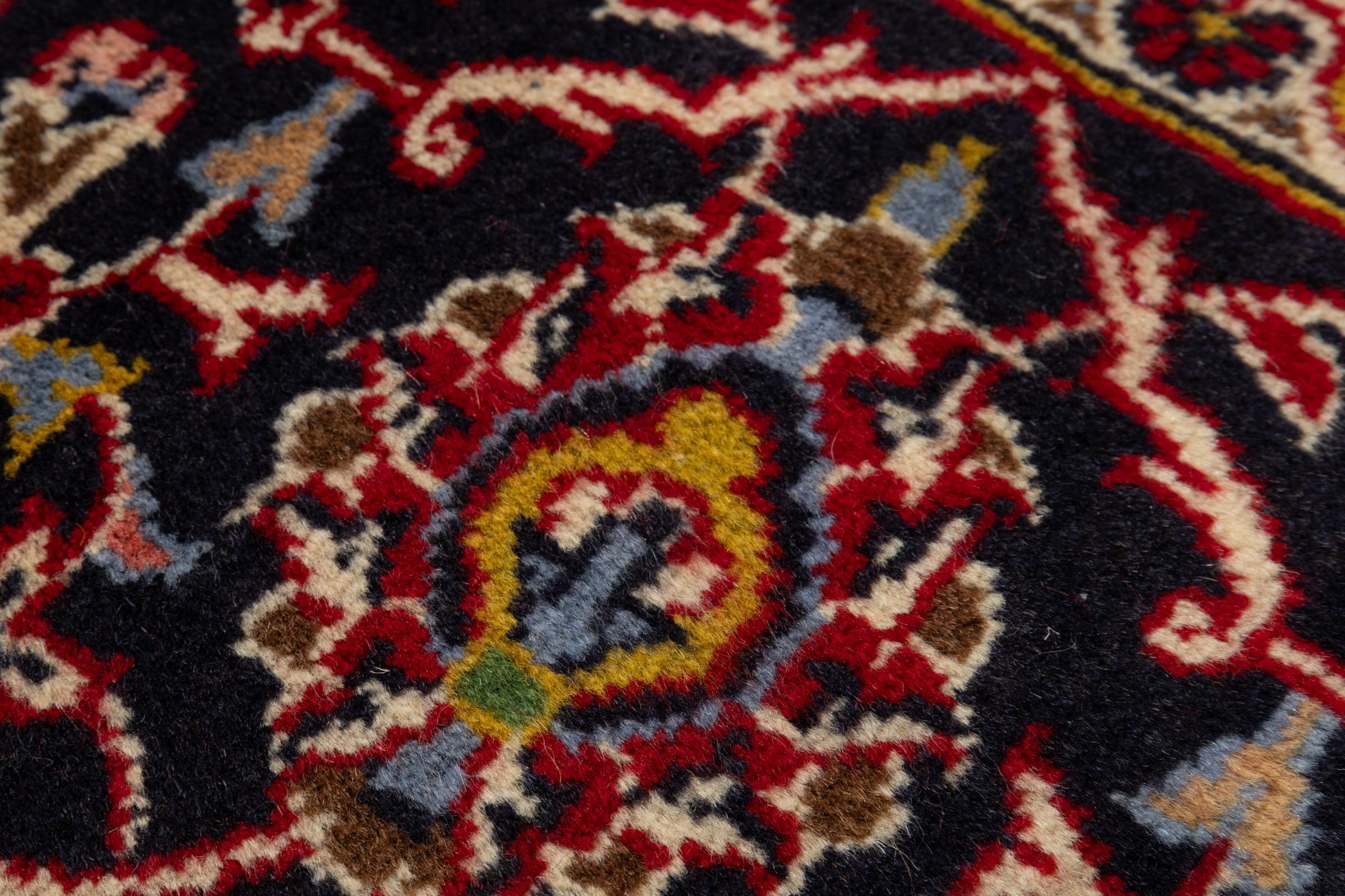 This carpet from Kashan (Keshan) is held in its very traditional and typical Persian design with beautiful ornaments. Kashan rugs are highly popular due to their exceptionally elegant design. These carpets originate from Kashan, a city on the ancient Silk Road. This carpet has been knotted by hand from high grade sheep wool and is going to be an one-of-a-kind highlight in your home.