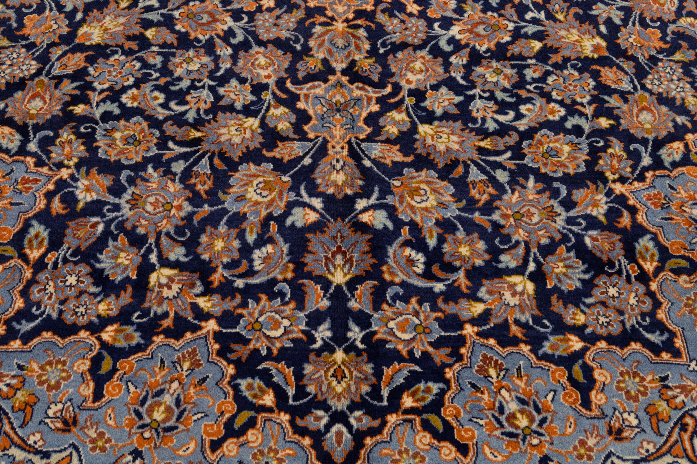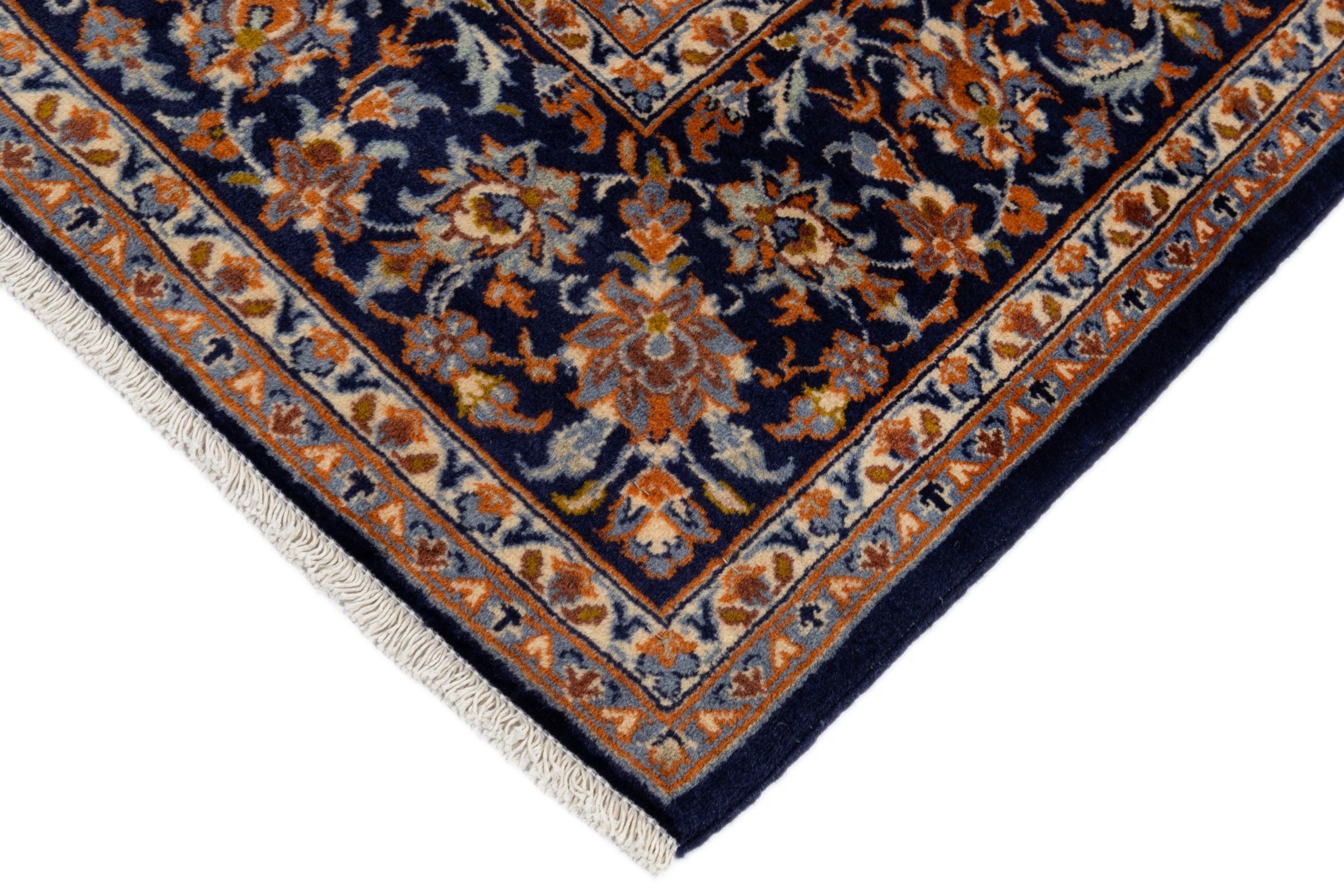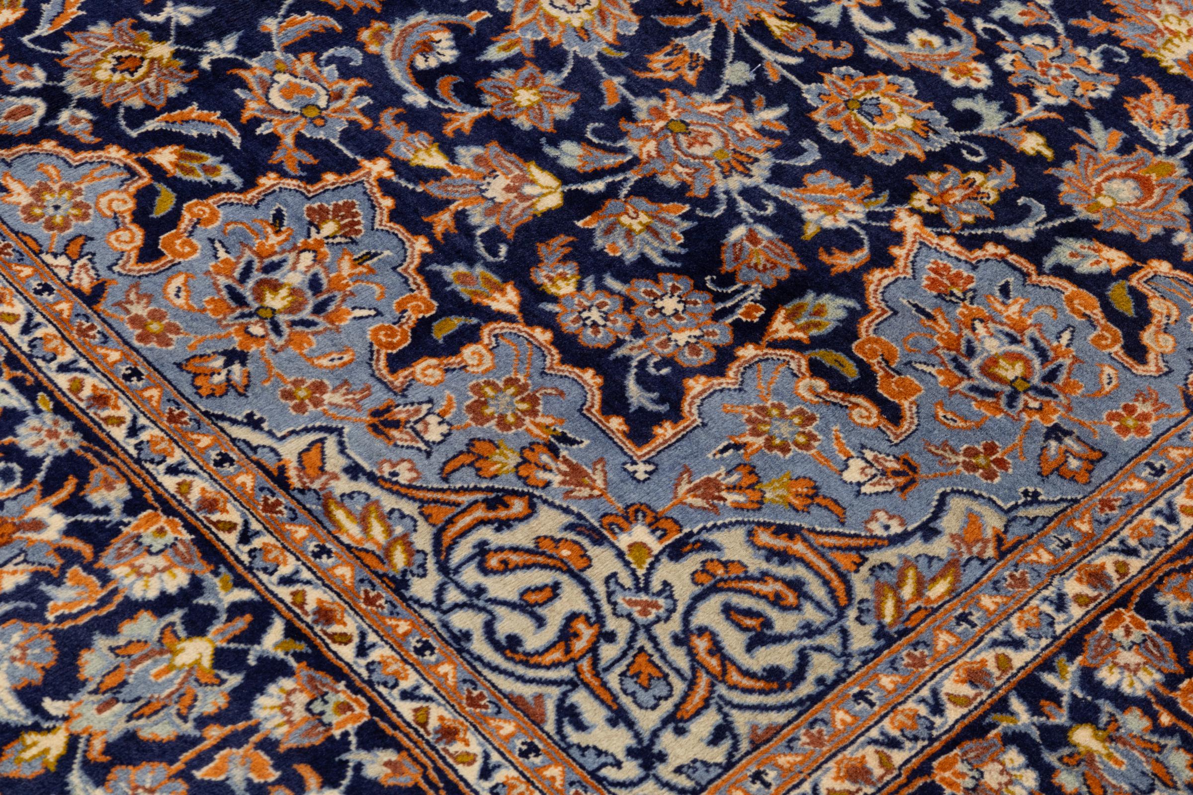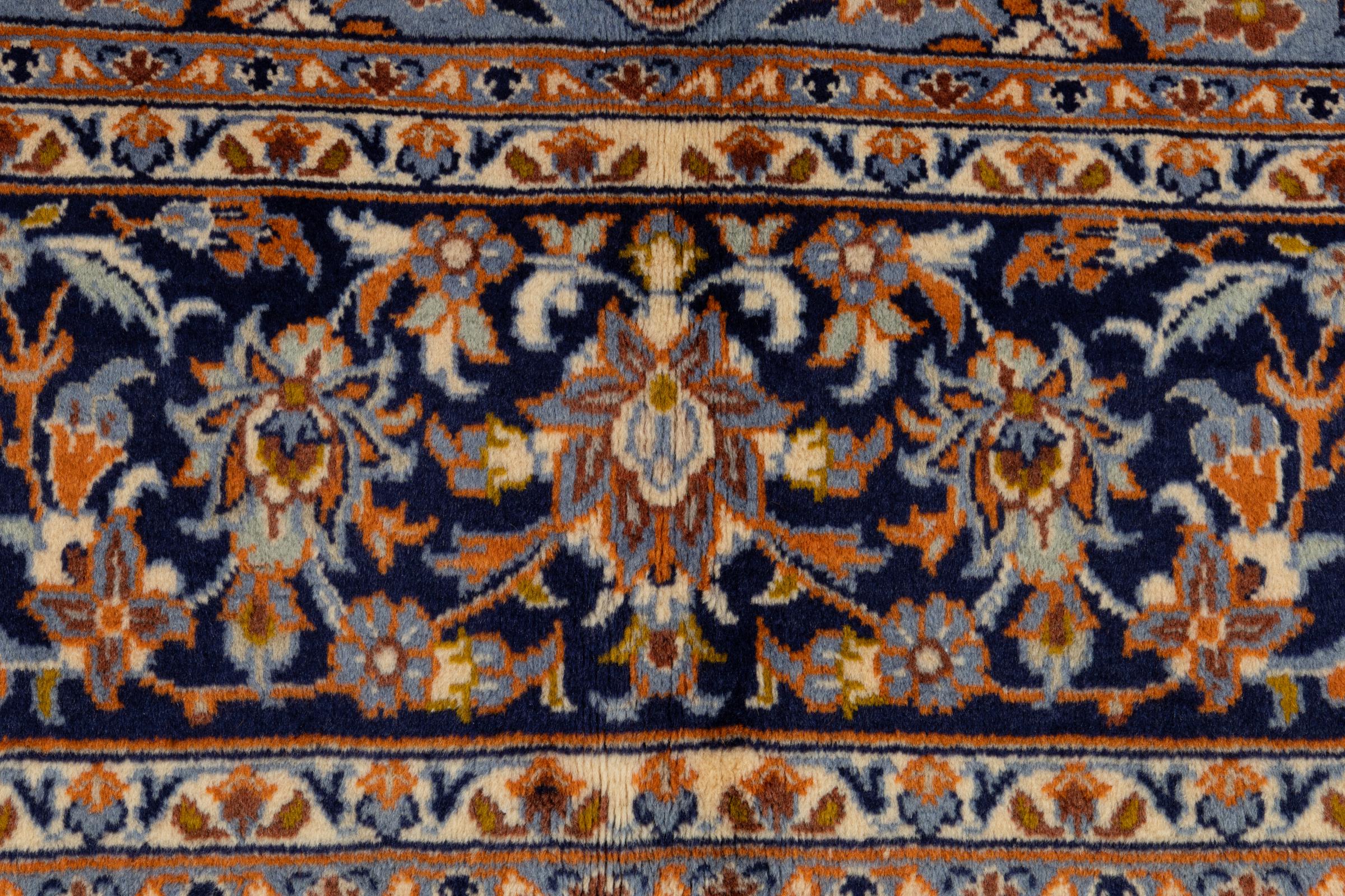 This carpet from Kashan (Keshan) is held in its very traditional and typical Persian design with beautiful ornaments. Kashan rugs are highly popular due to their exceptionally elegant design. These carpets originate from Kashan, a city on the ancient Silk Road. This carpet has been knotted by hand from high grade sheep wool and is going to be an one-of-a-kind highlight in your home.
