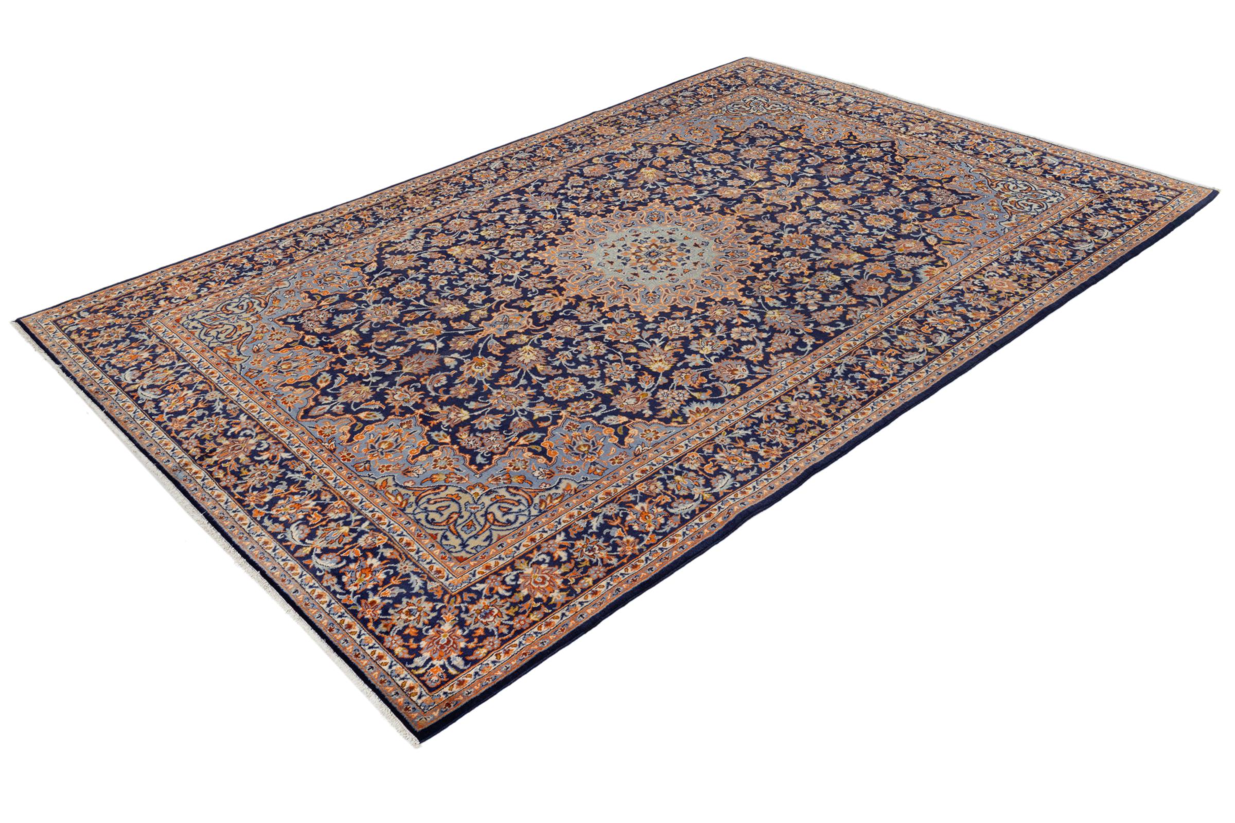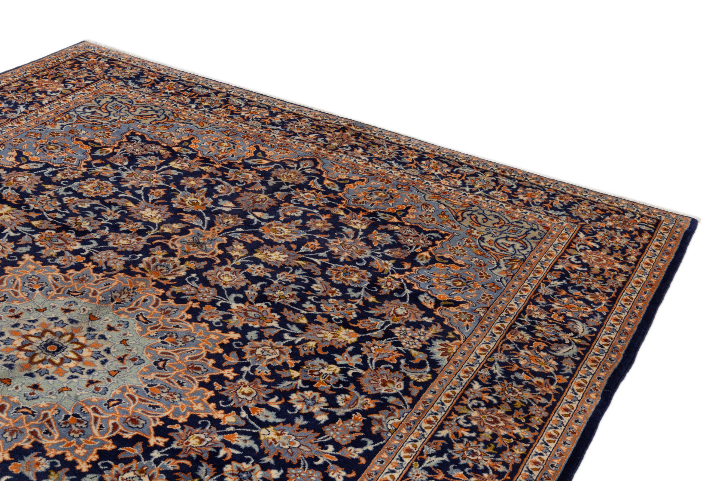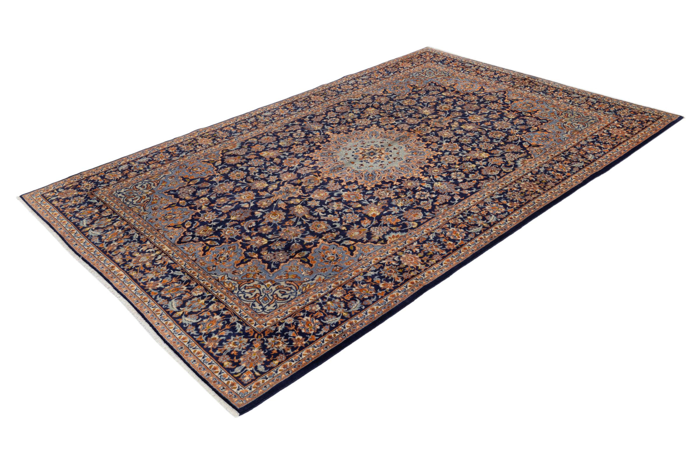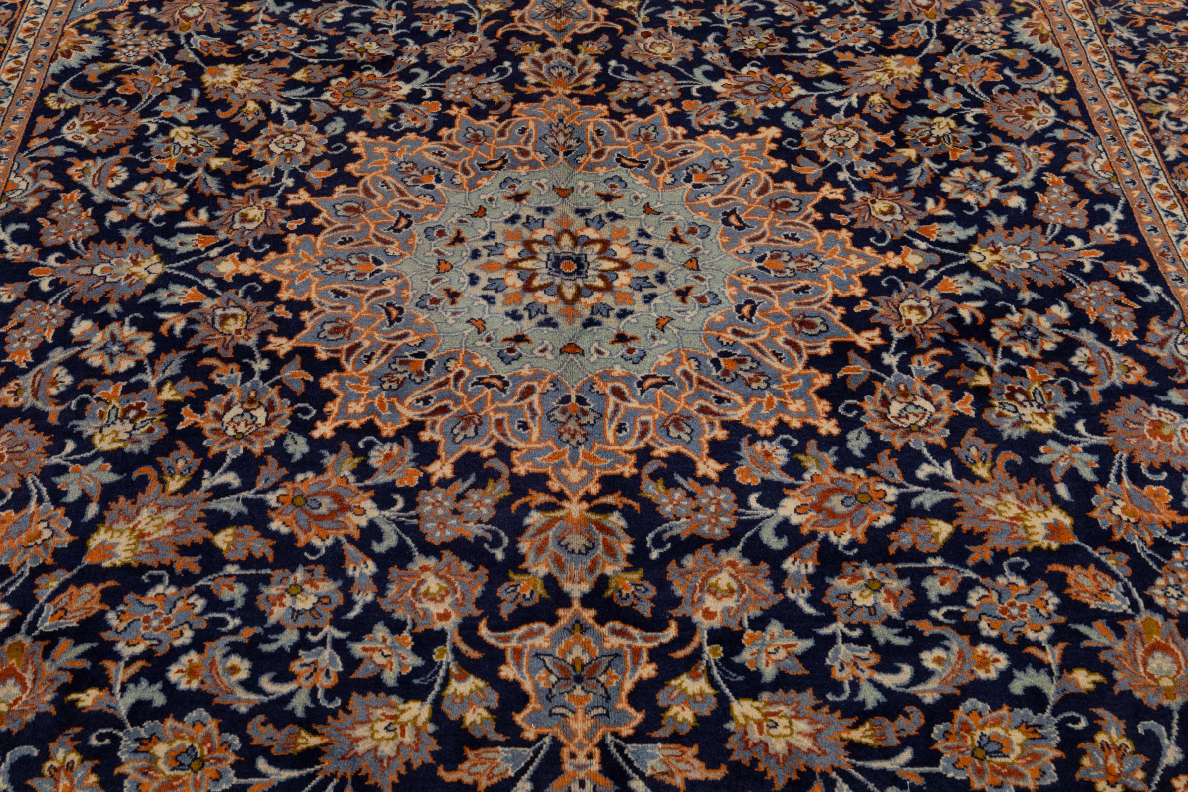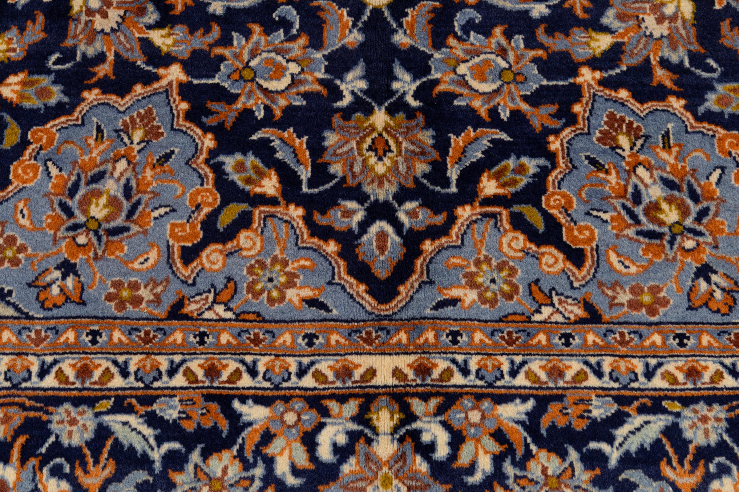 This carpet from Kashan (Keshan) is held in its very traditional and typical Persian design with beautiful ornaments. Kashan rugs are highly popular due to their exceptionally elegant design. These carpets originate from Kashan, a city on the ancient Silk Road. This carpet has been knotted by hand from high grade sheep wool and is going to be an one-of-a-kind highlight in your home.