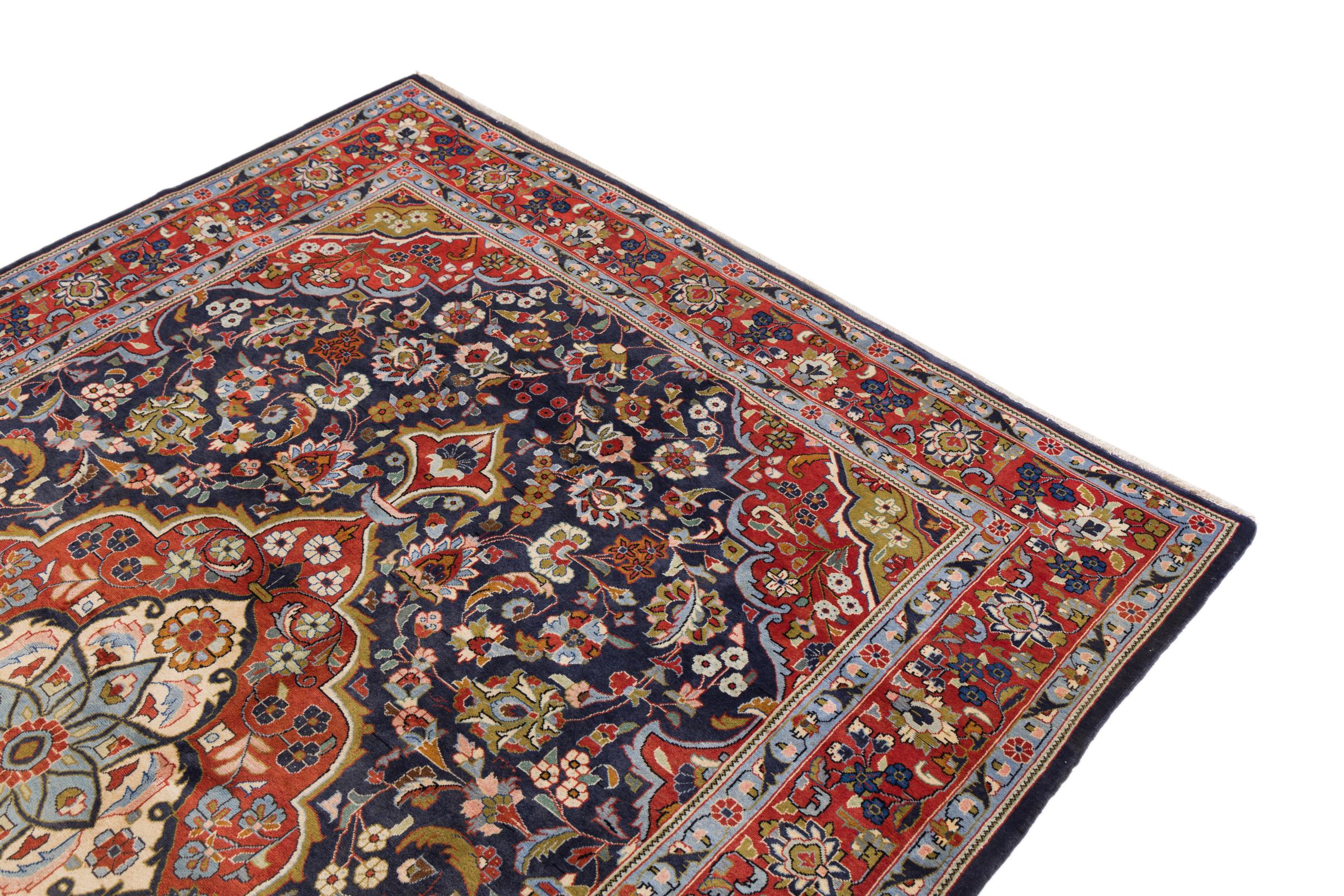 This antique Keshan rug is a beautiful unique piece. It was hand-knotted decades ago in the city of Kashan in Iran. Its ornaments have been woven in durable and strong colours with a lot of experience. Thanks to the high knot density, the patterns appear fine and lively. The rug has been fully checked, cleaned and cared for by our experts. This antique Persian rug from one of the most popular provenances is an extremely valuable piece of traditional craftsmanship from the history of Persia.