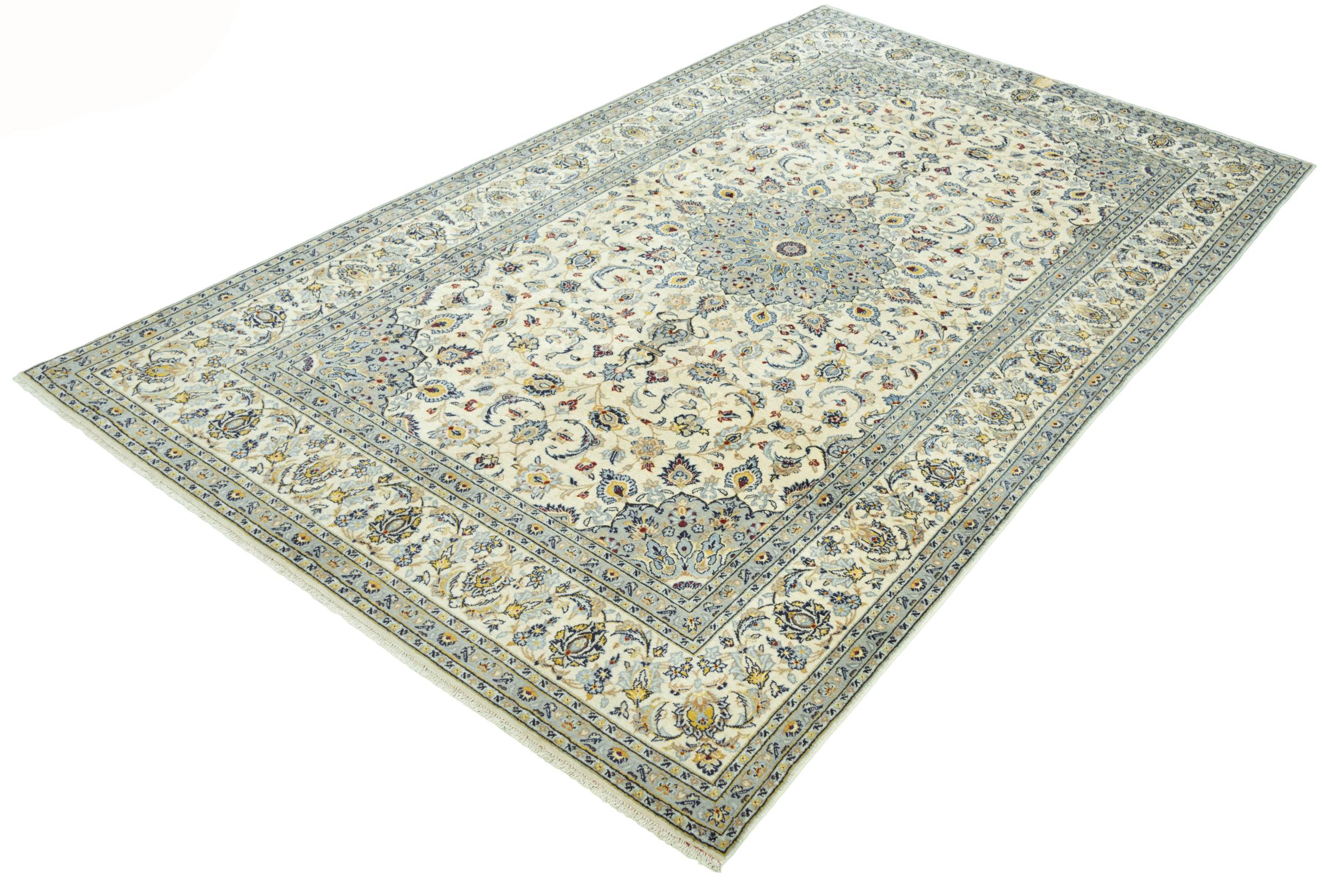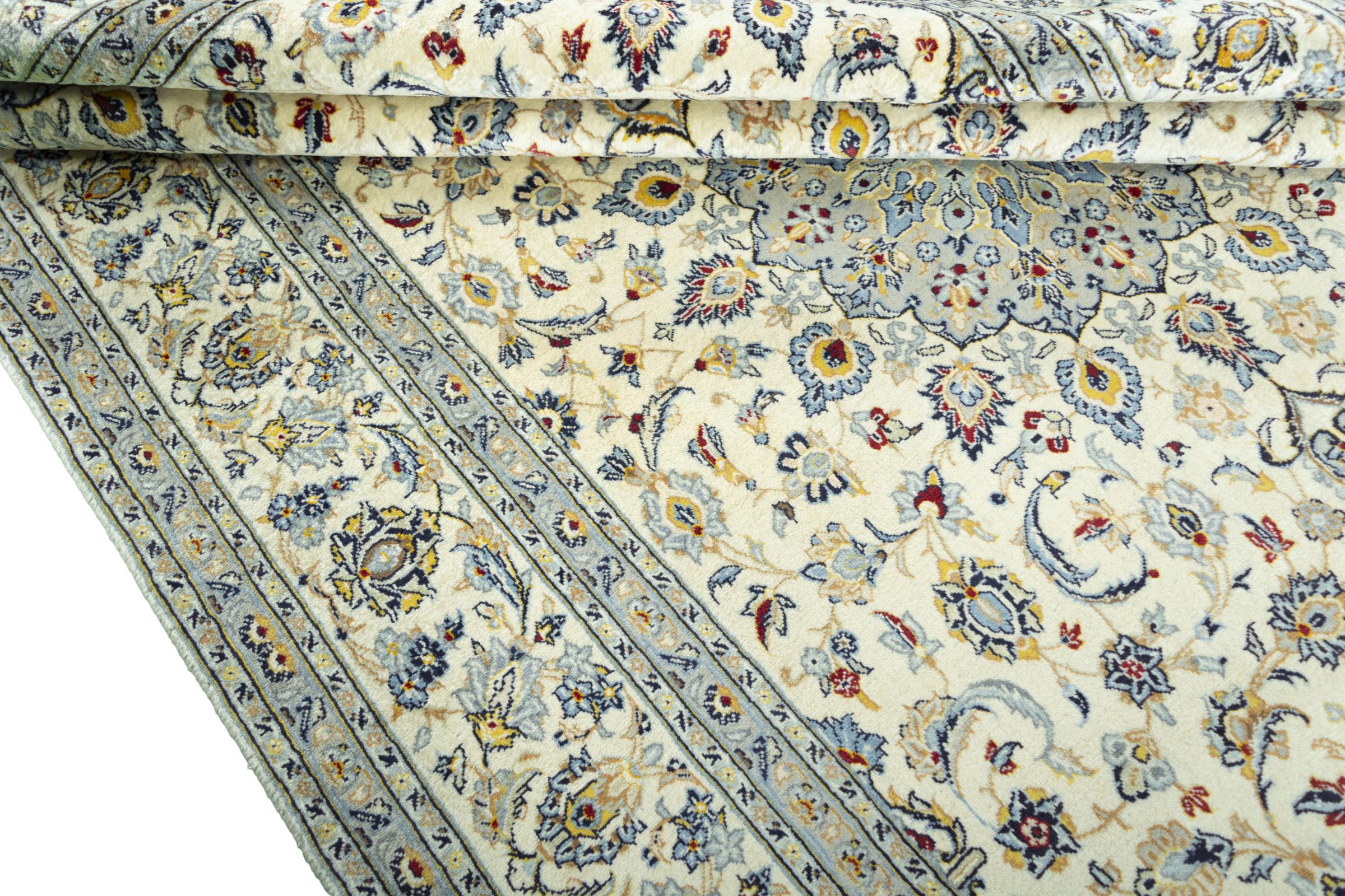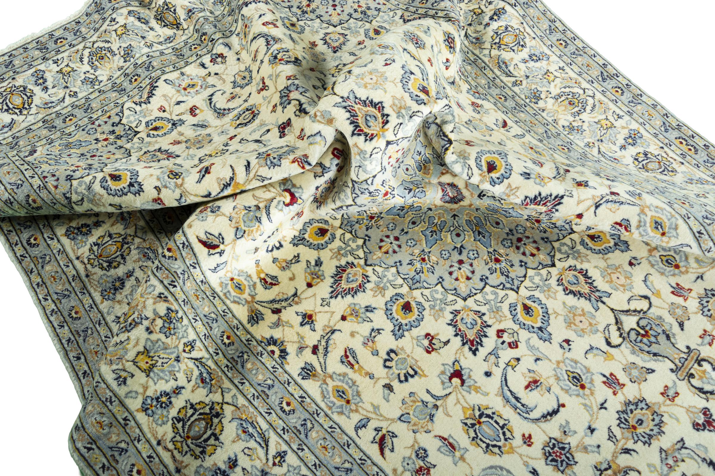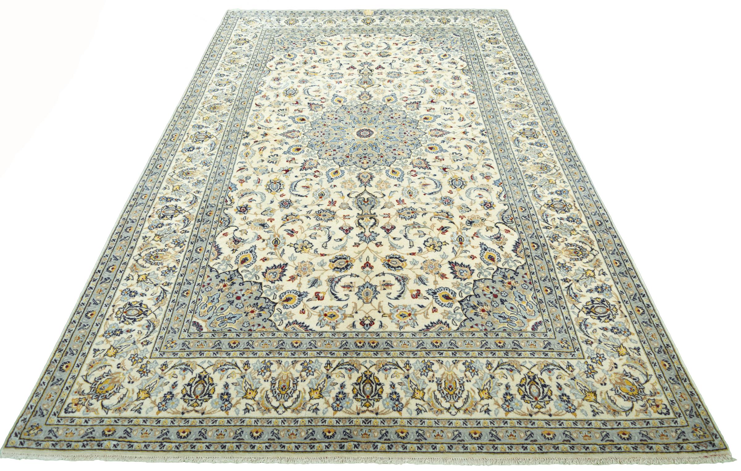 Hand knotted rugs from the city of Kashan (Keshan) are known worldwide. Not only do these Persian rugs have a very popular design, but their quality is undisputedly one of the best. In the Persian Empire the city was considered one of the most important trading places along the famous Silk Road. Kashan rugs usually have a central medallion, floral ornaments and a red background. They are made of high-quality sheep's wool and vegetable dyes.