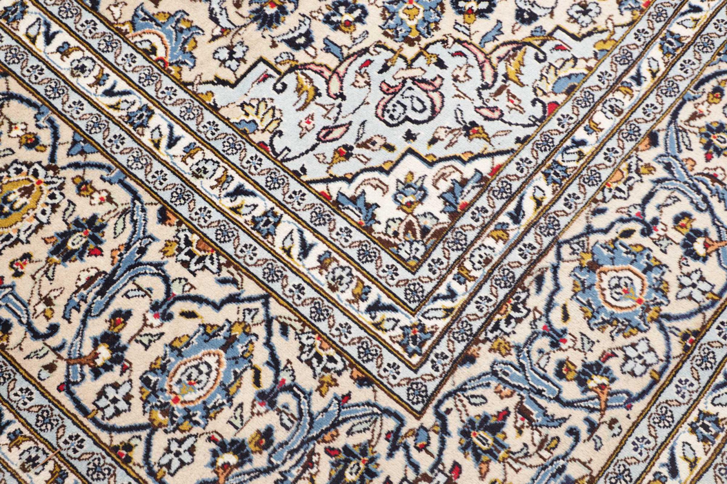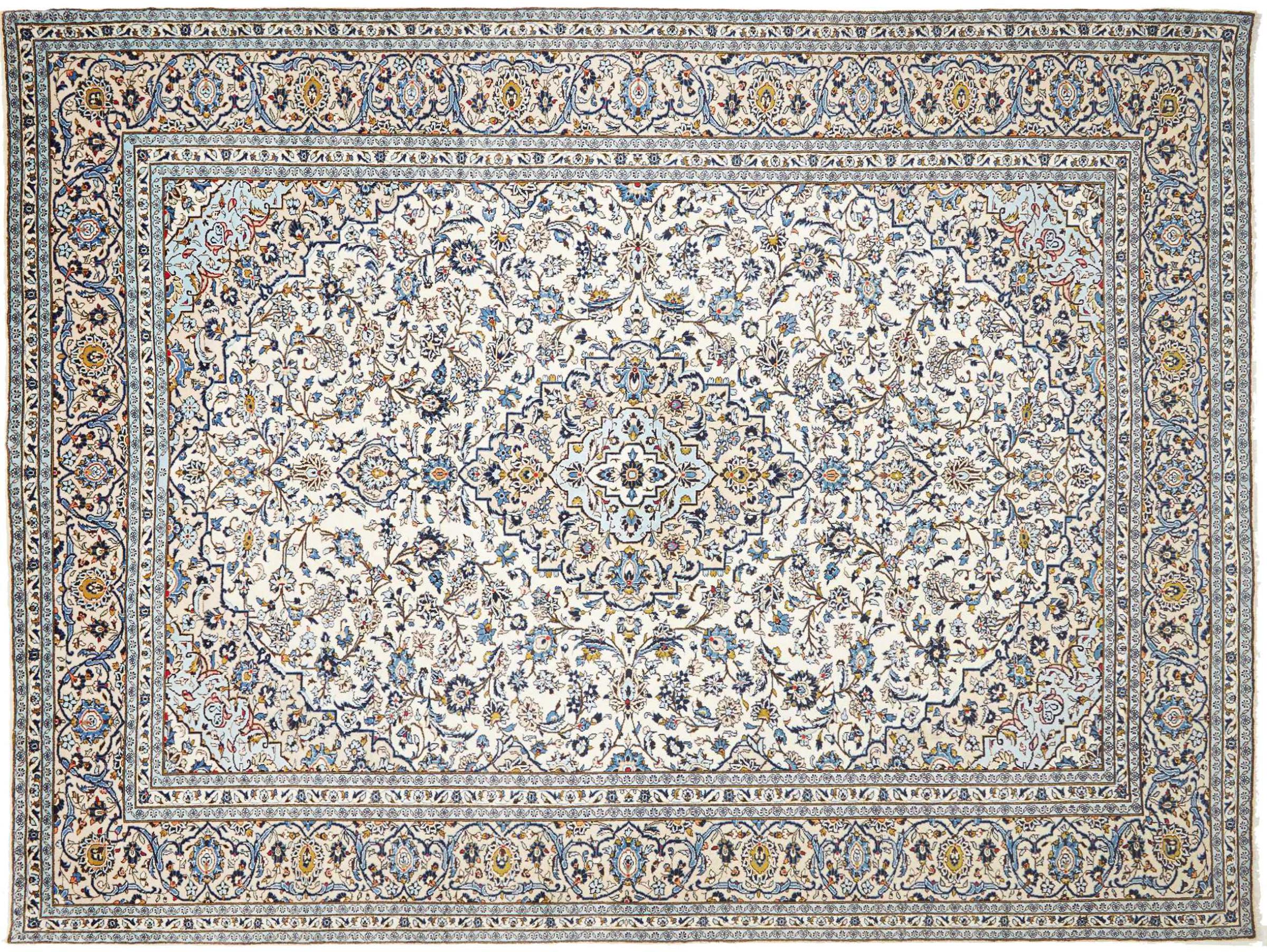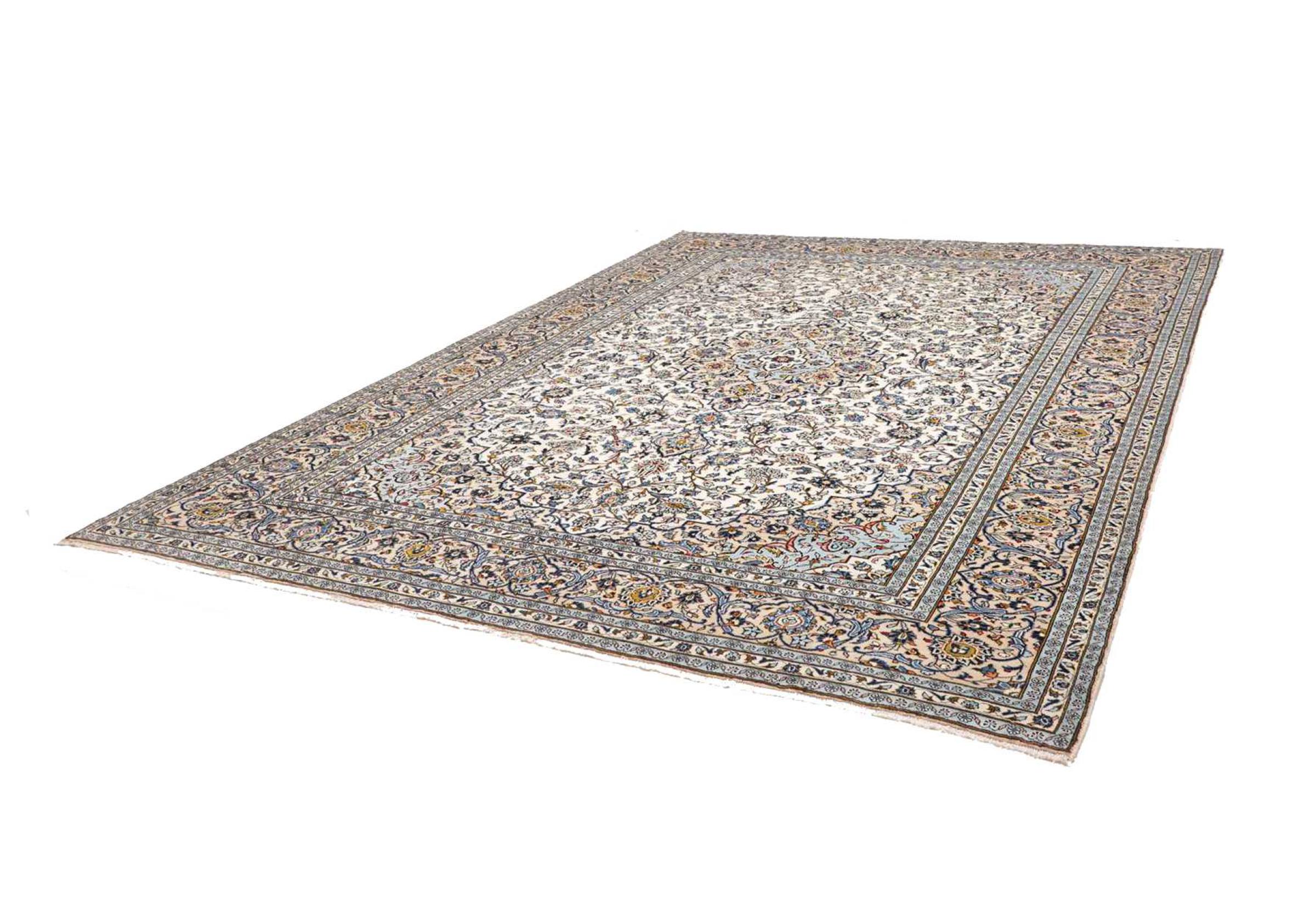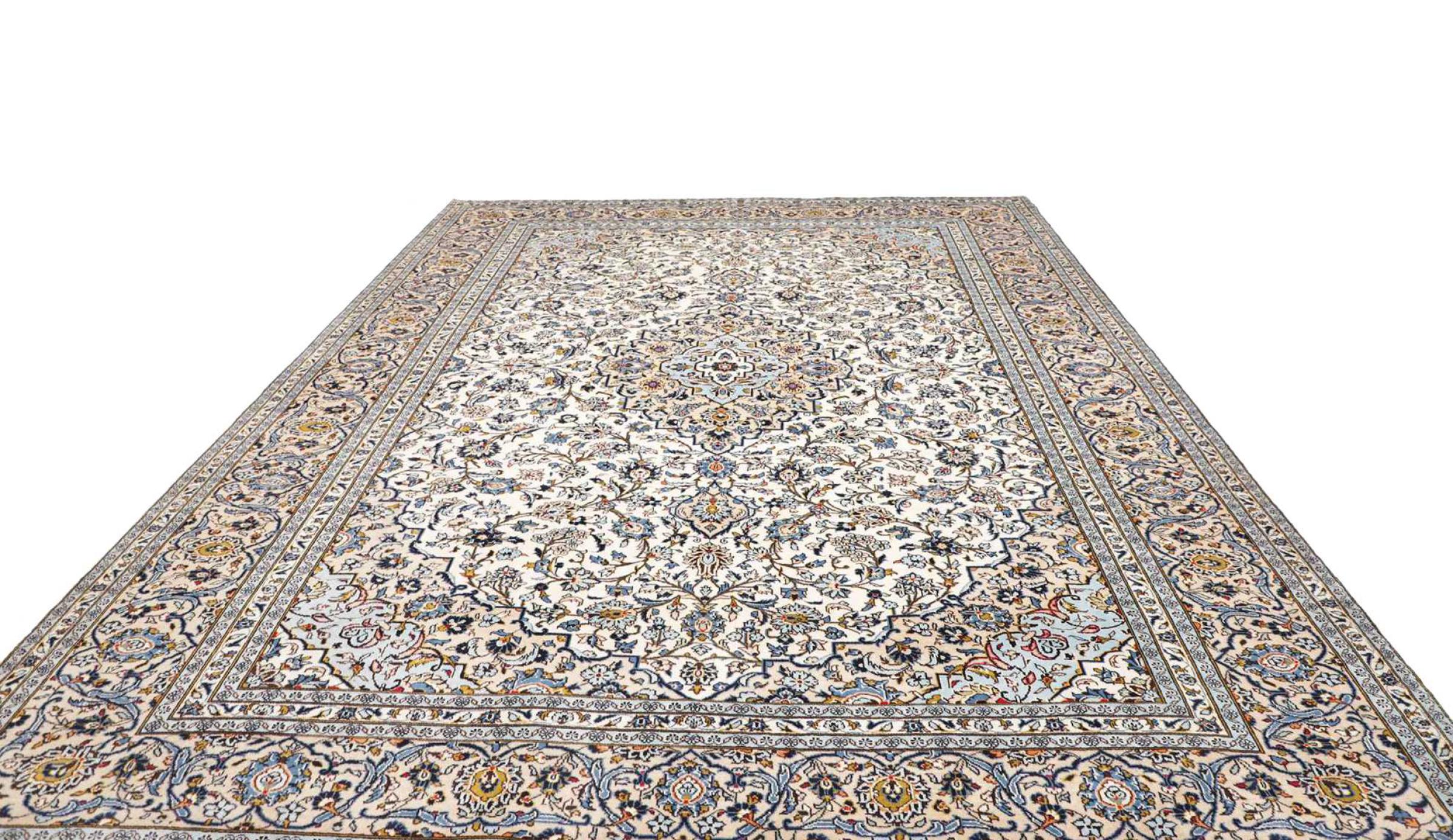 Hand knotted rugs from the city of Kashan (Keshan) are known worldwide. Not only do these Persian rugs have a very popular design, but their quality is undisputedly one of the best. In the Persian Empire the city was considered one of the most important trading places along the famous Silk Road. Kashan rugs usually have a central medallion, floral ornaments and a red background. They are made of high-quality sheep's wool and vegetable dyes.