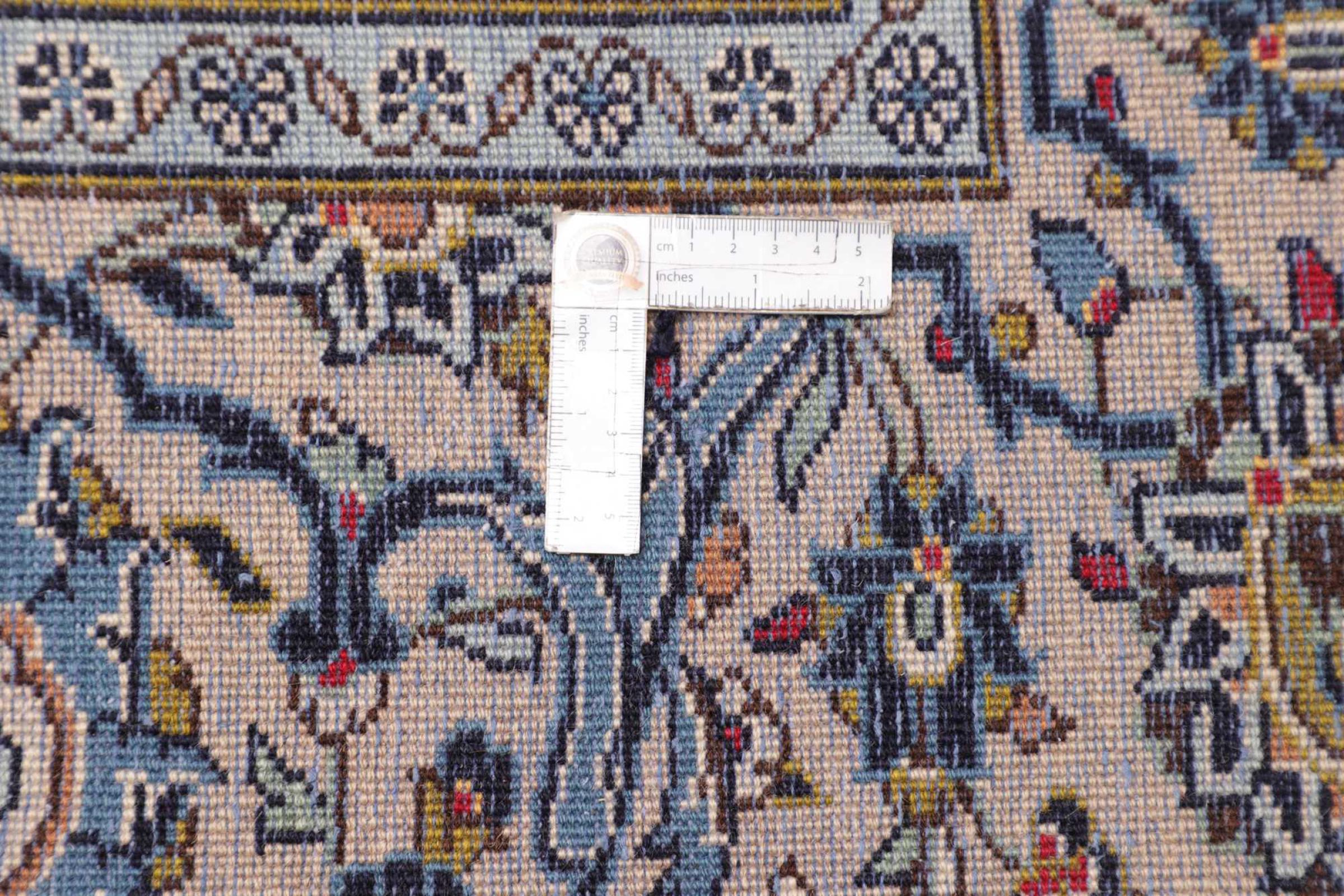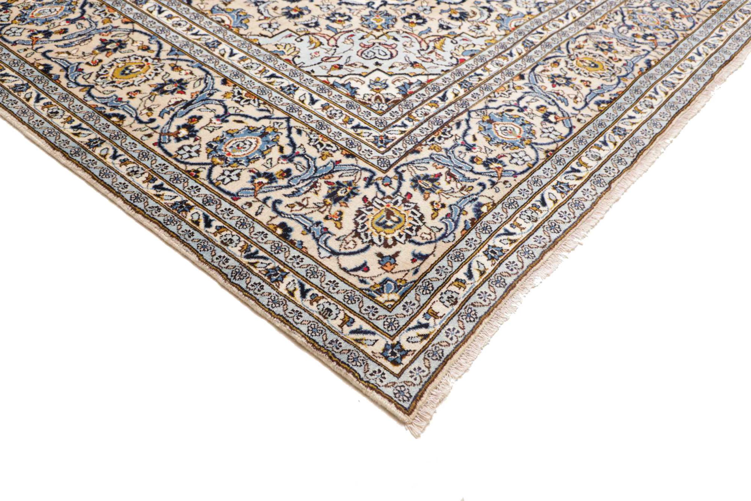 This carpet from Kashan (Keshan) is held in its very traditional and typical Persian design with beautiful ornaments. Kashan rugs are highly popular due to their exceptionally elegant design. These carpets originate from Kashan, a city on the ancient Silk Road. This carpet has been knotted by hand from high grade sheep wool and is going to be an one-of-a-kind highlight in your home.