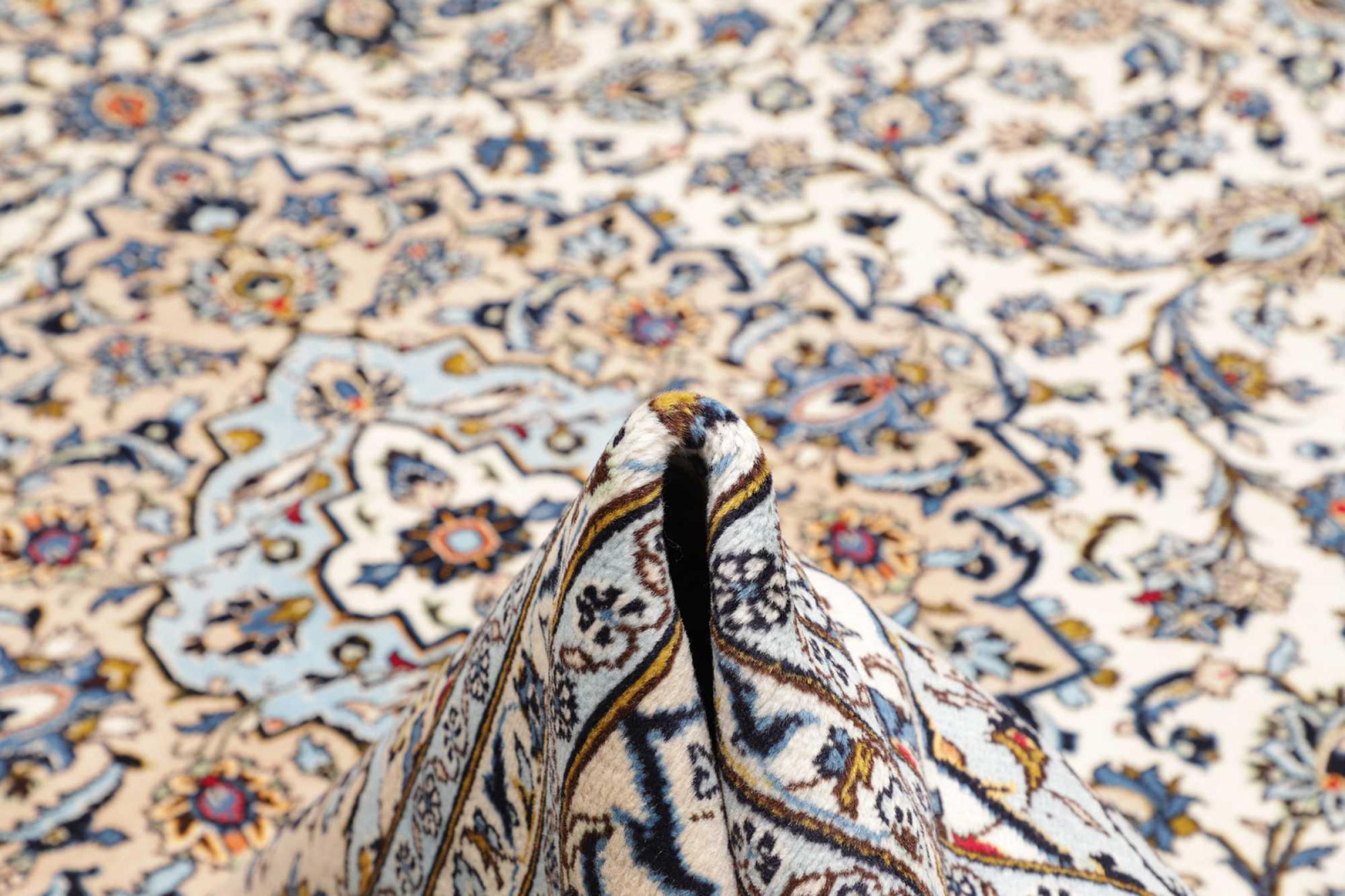 This rug is made of hand spun sheep wool of the highest quality. Especially in Iran (former Persia), Afghanistan and Pakistan wool is still spun by hand before the actual knotting of the rug begins. Wool has proven itself as a natural and extremely hard-wearing material over centuries. Among other things, it has dirt-repellent and heat-insulating properties. At the same time, wool is incomparably soft and has a natural shine.