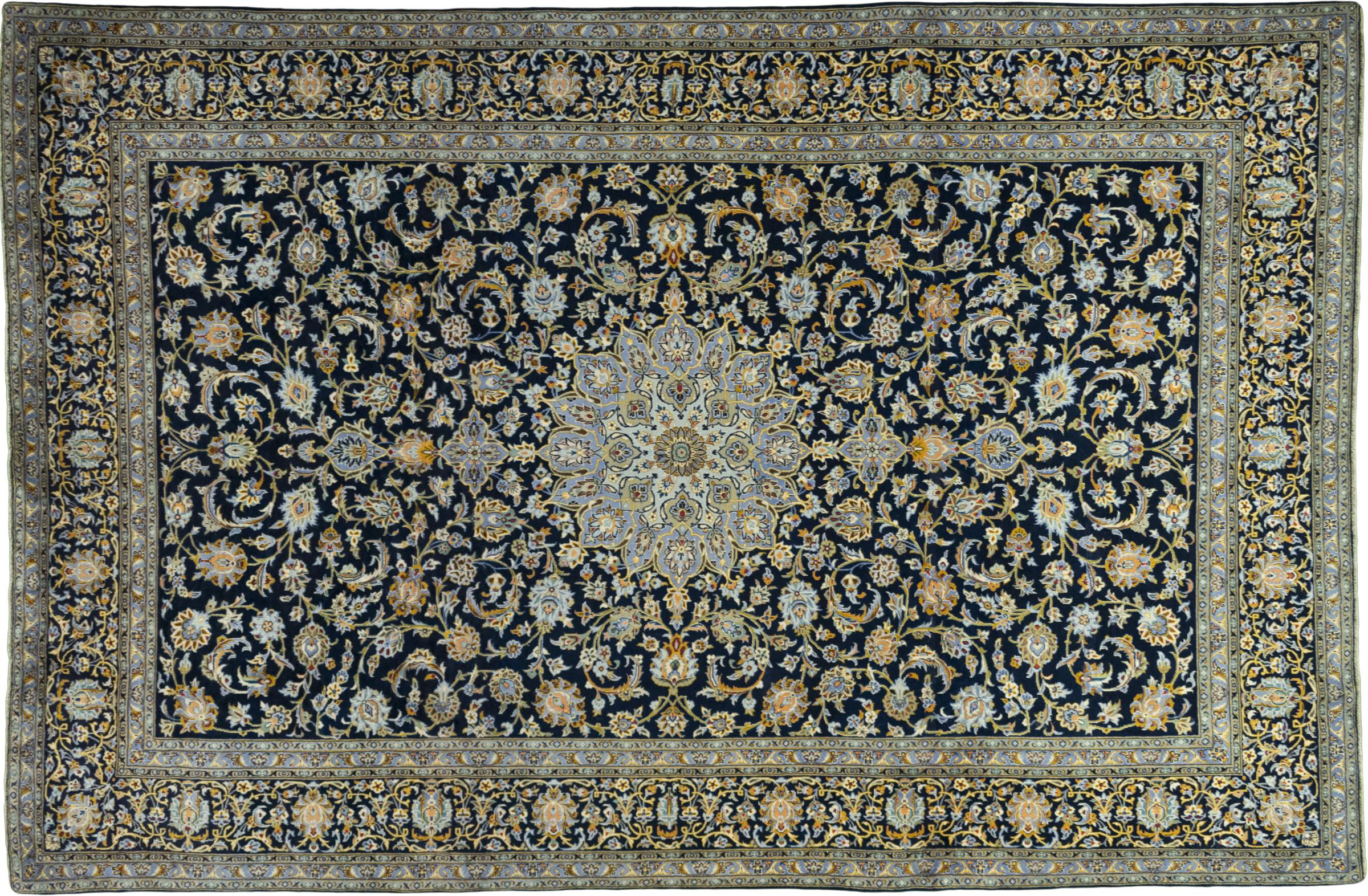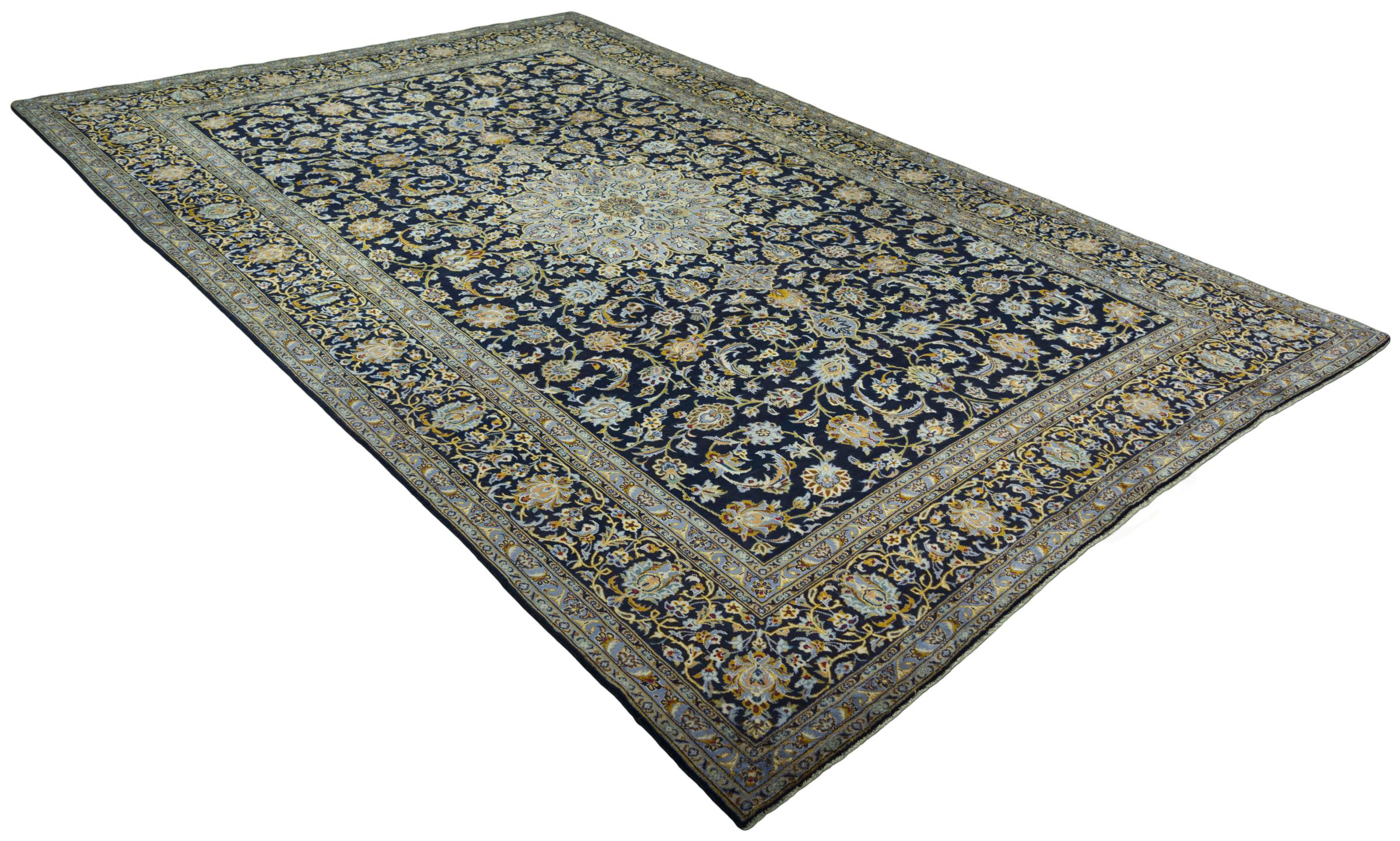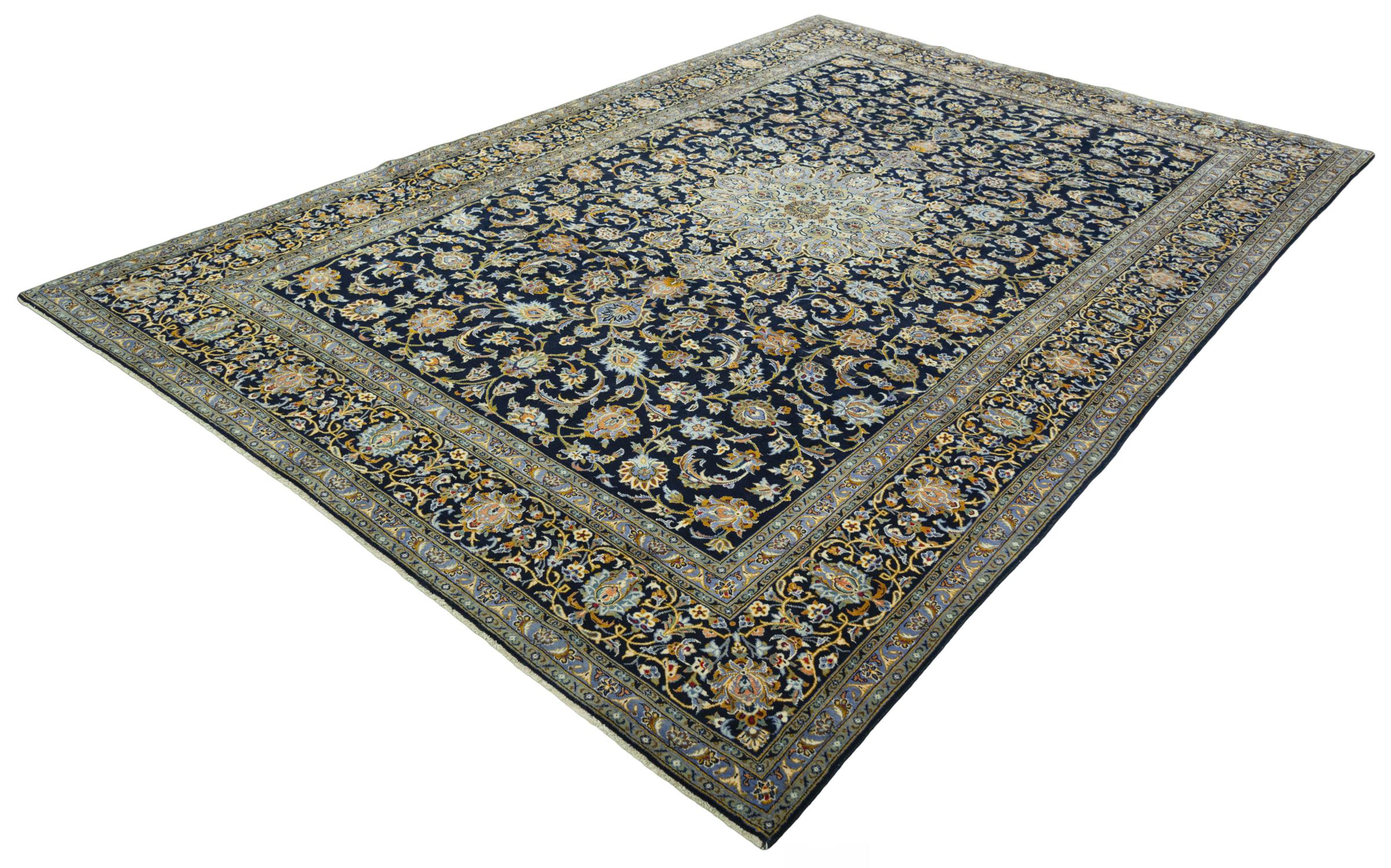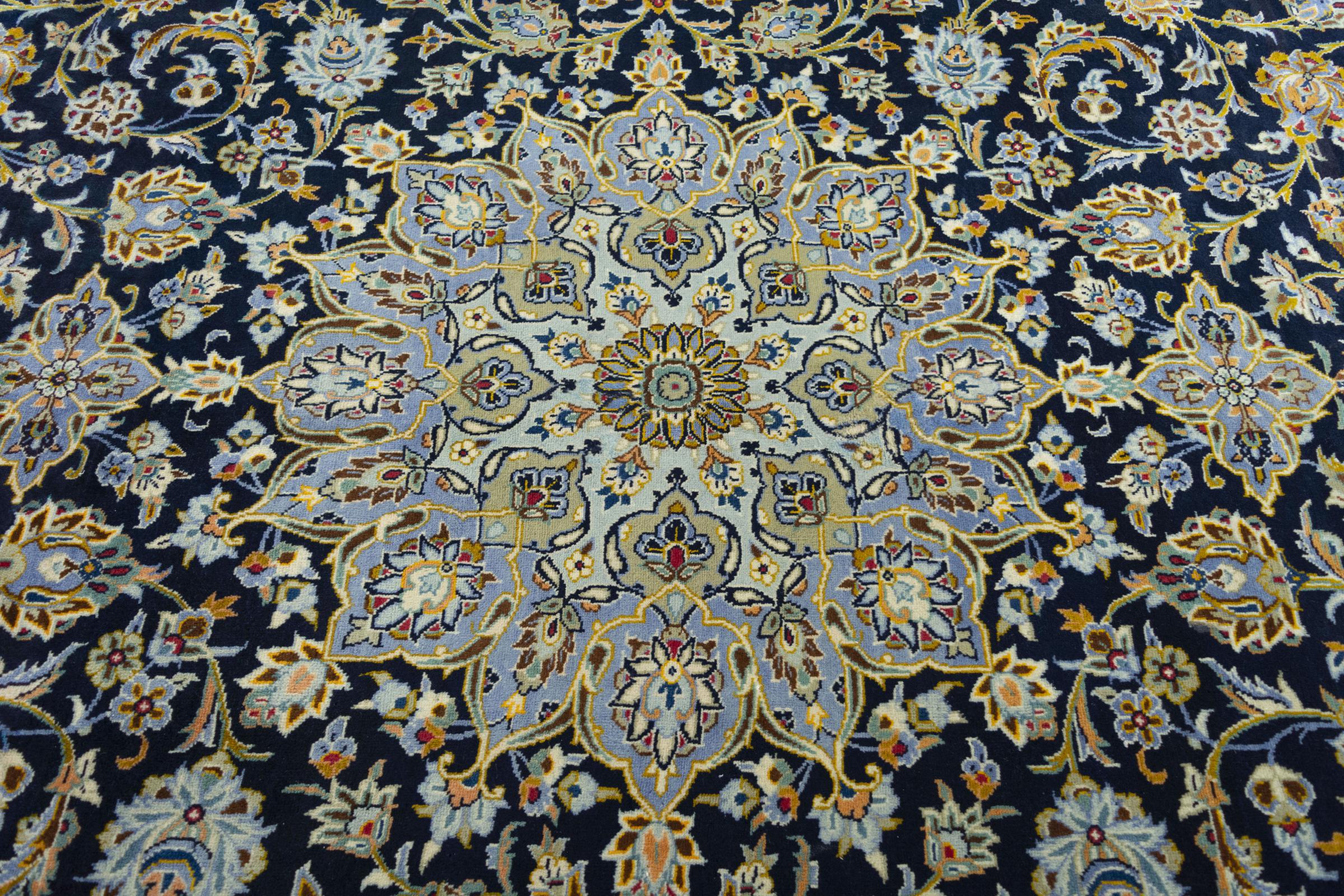 Hand knotted rugs from the city of Kashan (Keshan) are known worldwide. Not only do these Persian rugs have a very popular design, but their quality is undisputedly one of the best. In the Persian Empire the city was considered one of the most important trading places along the famous Silk Road. Kashan rugs usually have a central medallion, floral ornaments and a red background. They are made of high-quality sheep's wool and vegetable dyes.