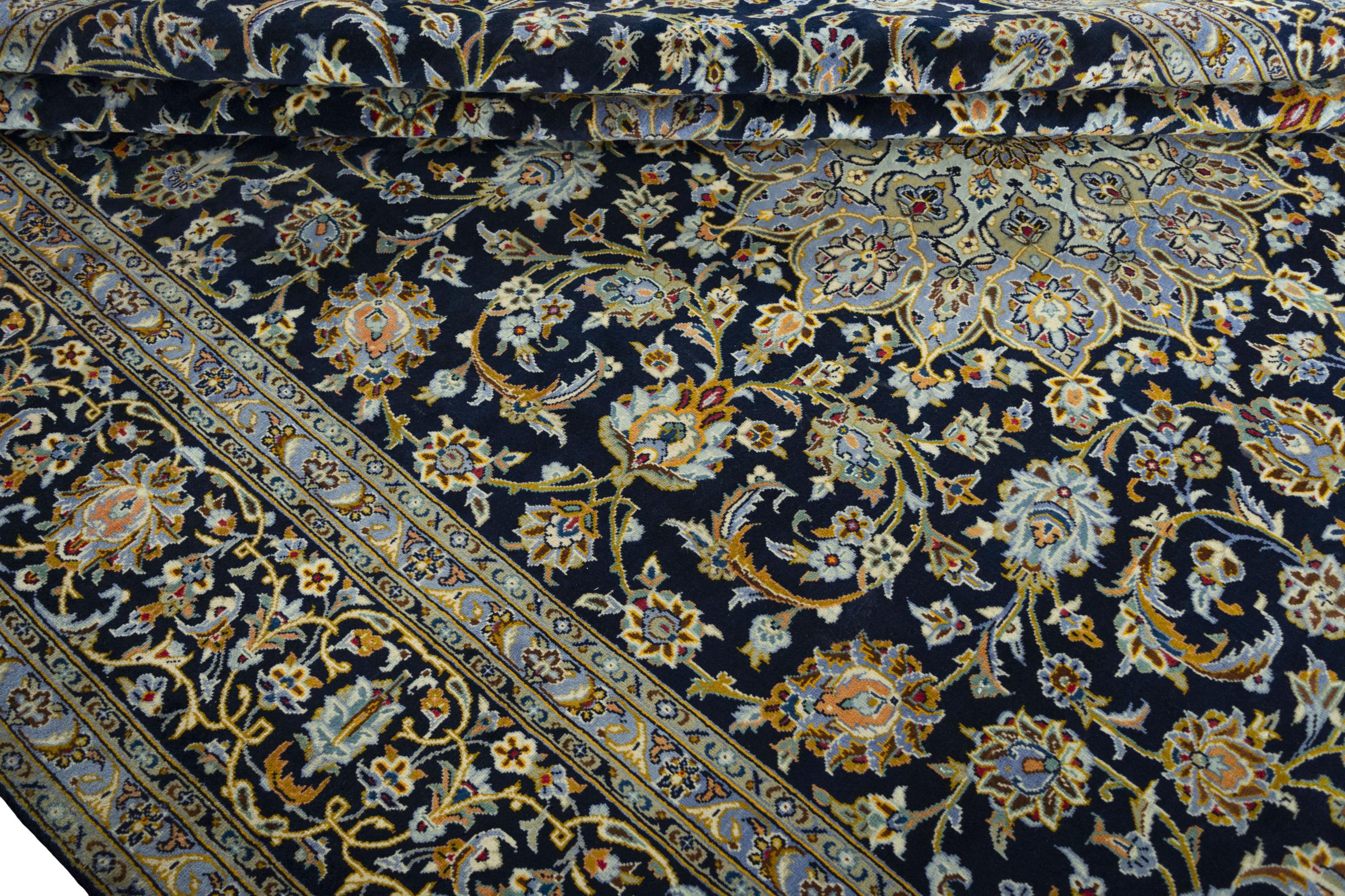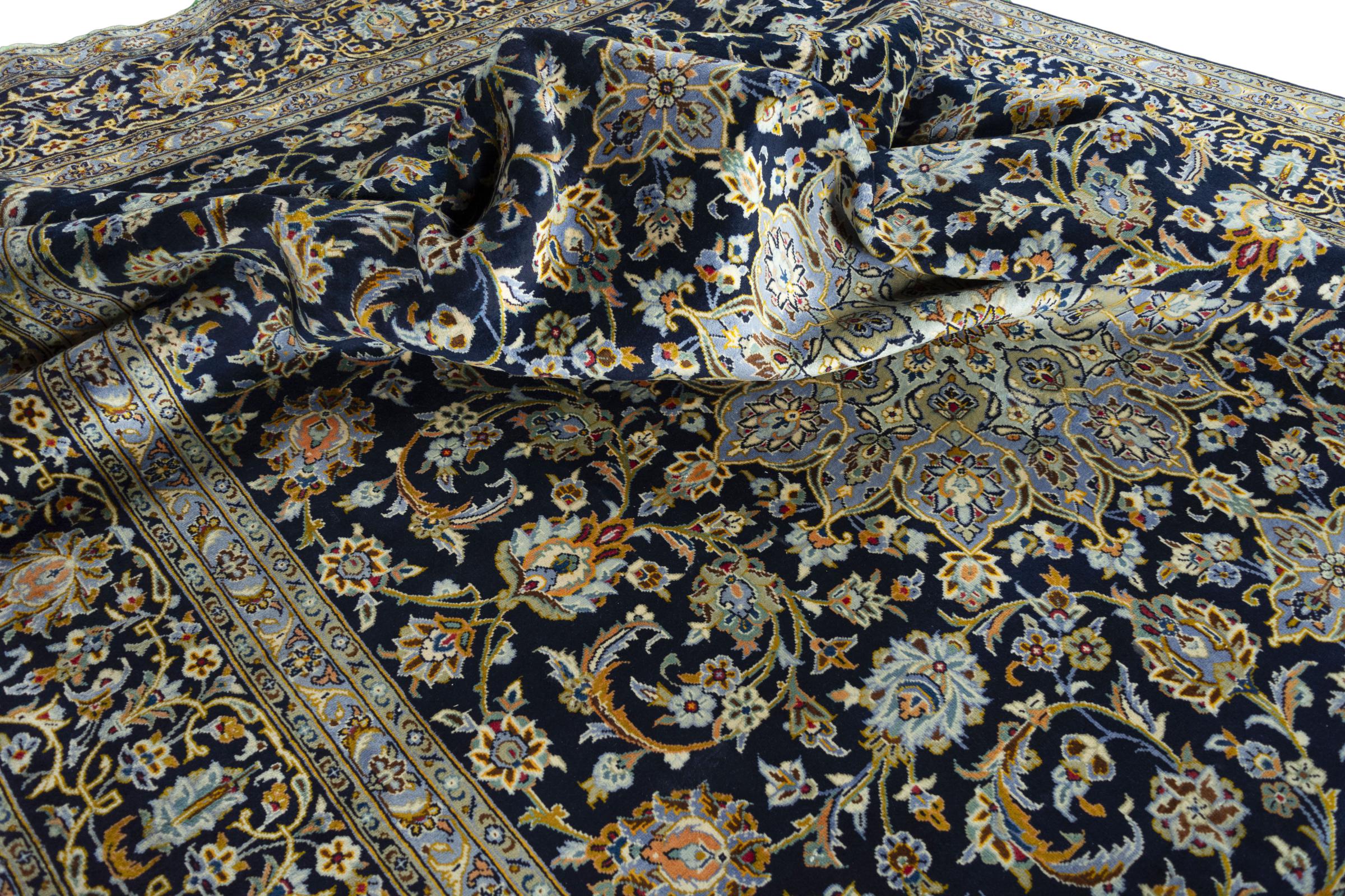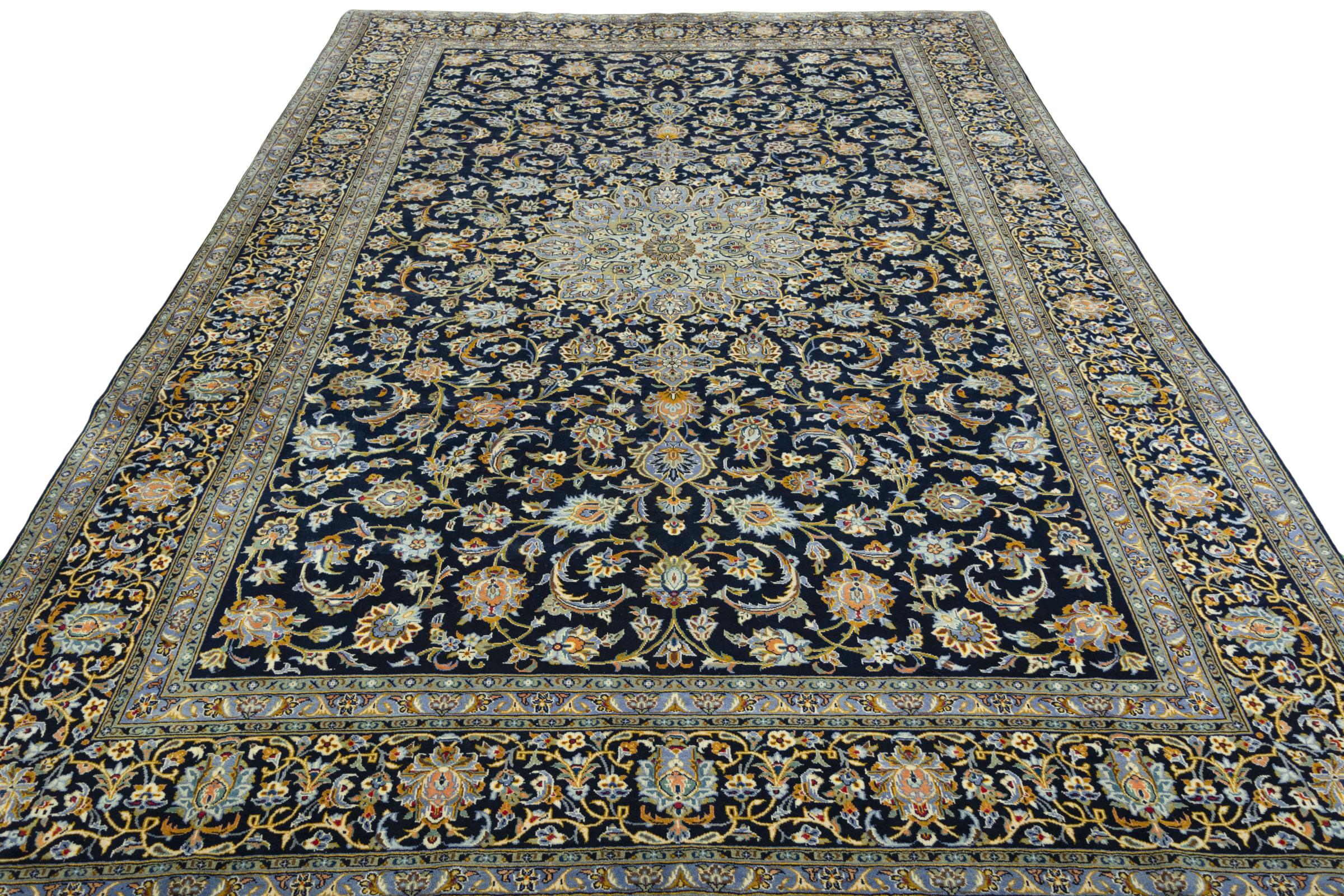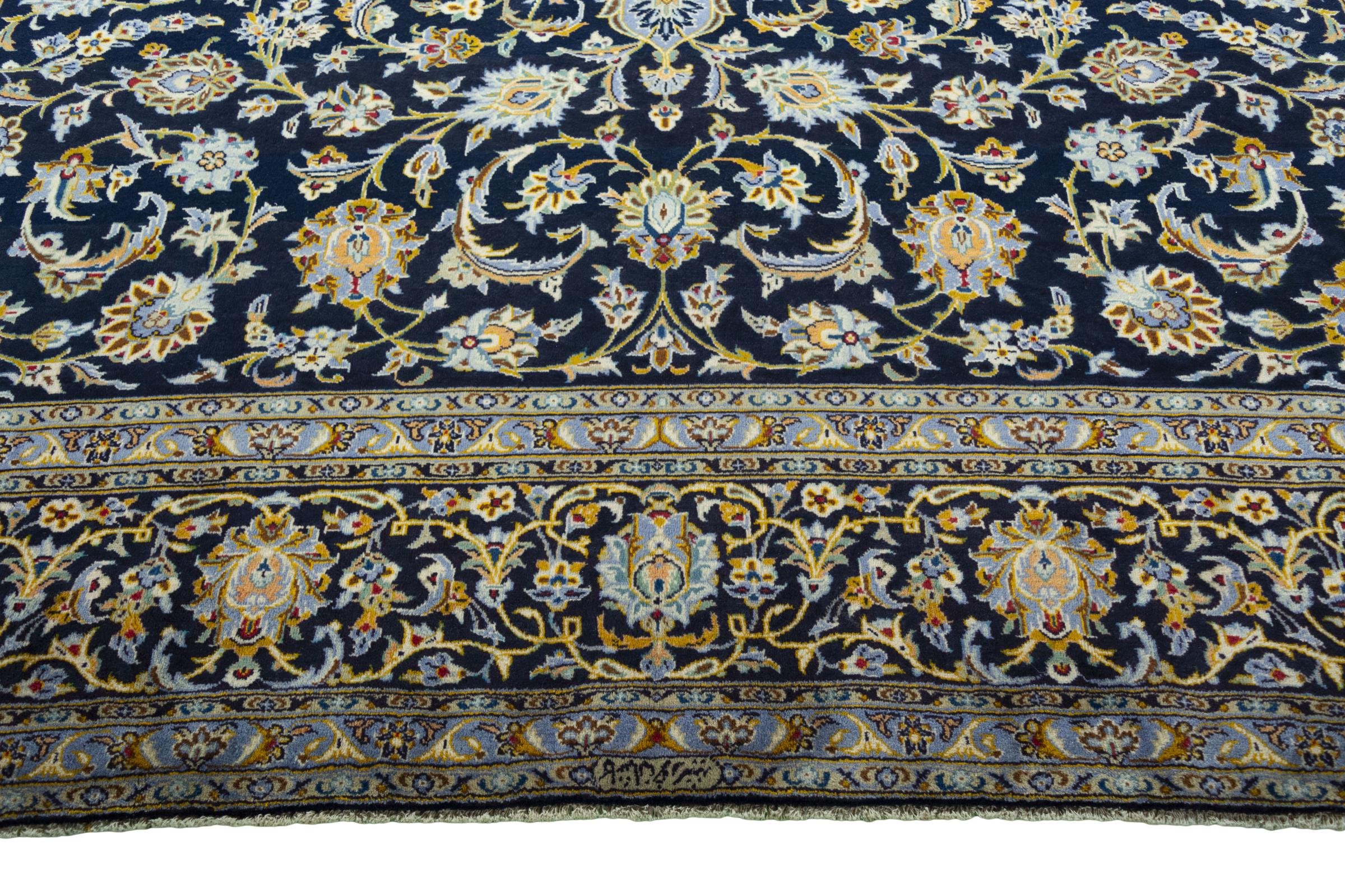 This carpet from Kashan (Keshan) is held in its very traditional and typical Persian design with beautiful ornaments. Kashan rugs are highly popular due to their exceptionally elegant design. These carpets originate from Kashan, a city on the ancient Silk Road. This carpet has been knotted by hand from high grade sheep wool and is going to be an one-of-a-kind highlight in your home.