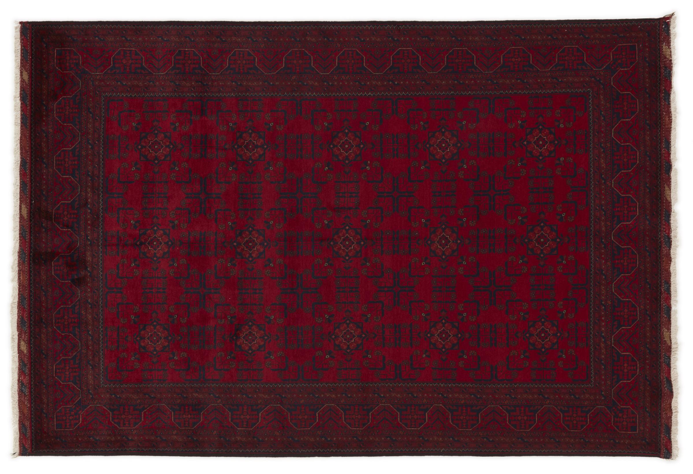 This Khal Mohammadi is a sample for high quality of Afghan Carpets. With its deep red nuances, it convinces everyone. This carpet was knotted in the north of Afghanistan with finest wool.