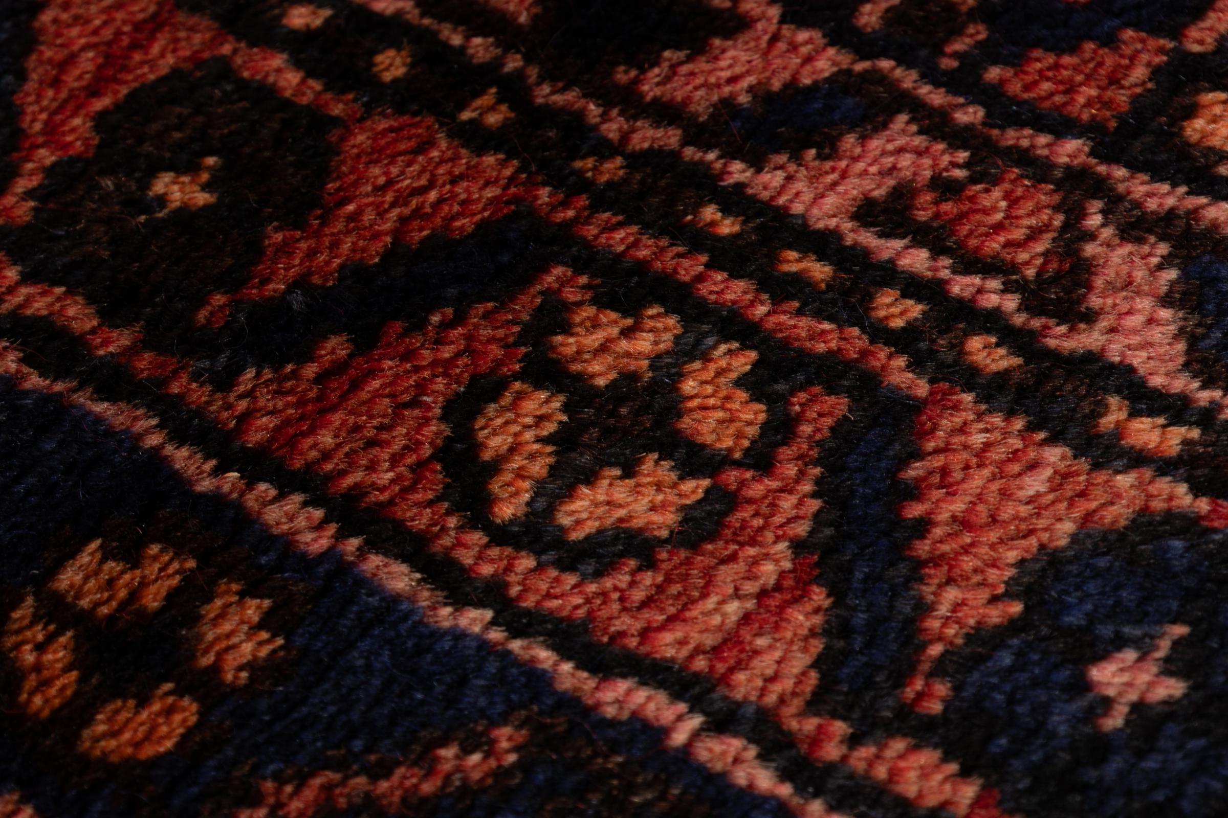 This rug belongs to village and nomadic rugs from Iran, formerly Persia. This type of rug is knotted by hand in smaller towns and villages in old tradition. Even nomads still knot Persian rugs in the open air. The rugs are knotted without a draft and completely from the mind. They are characterized by classical ornaments, which are arranged in straight and geometrical patterns. Thanks to their cultural-traditional origin, these rugs have a unique character that embodies ancient Persia.