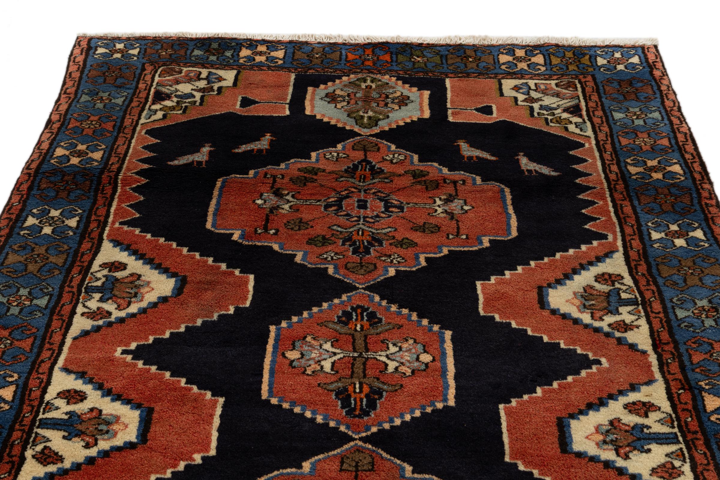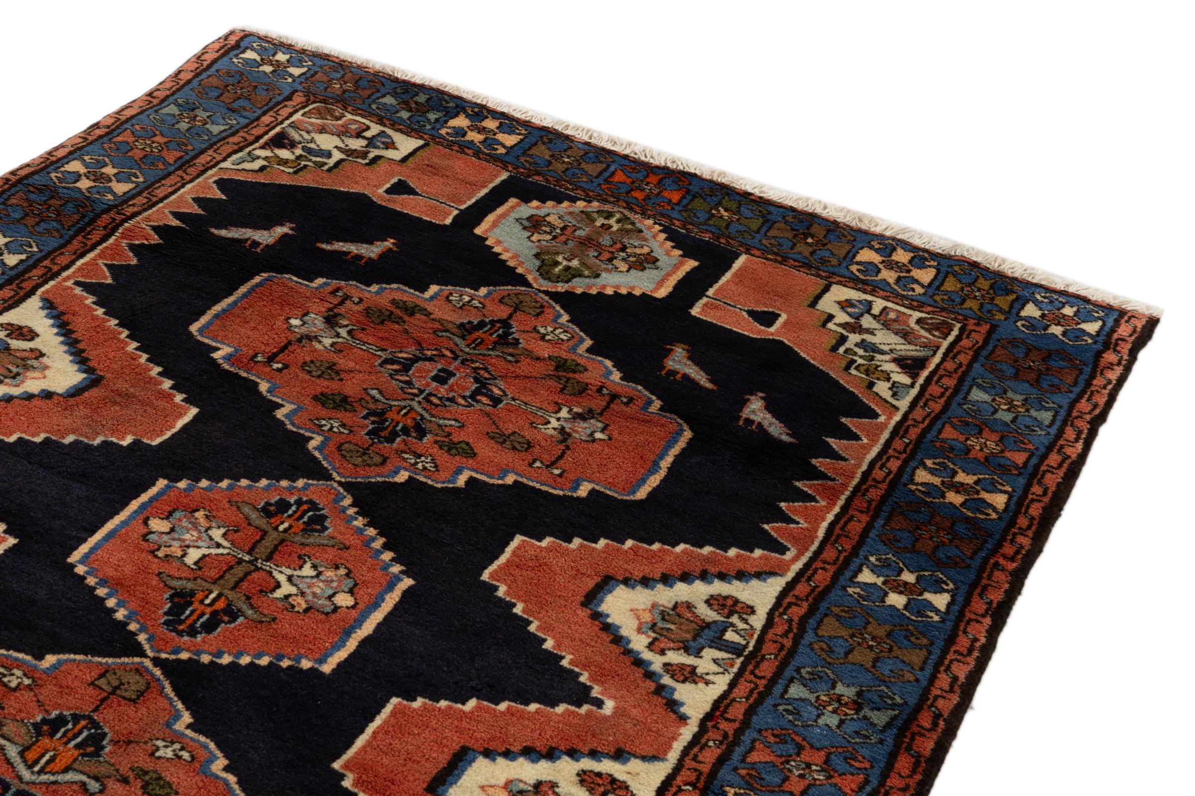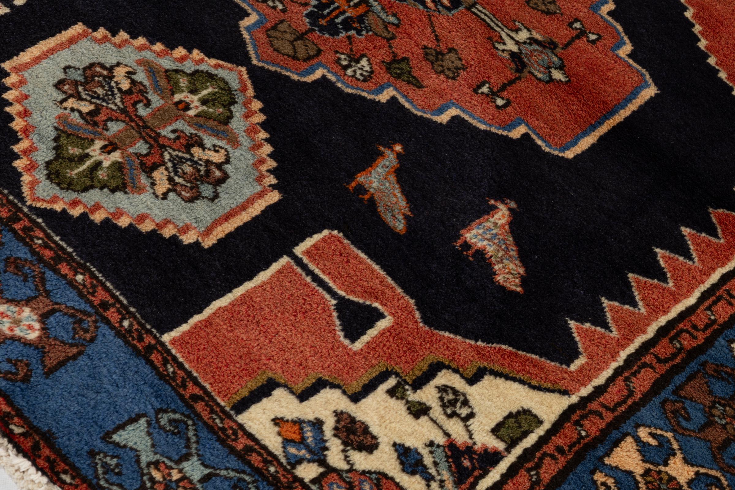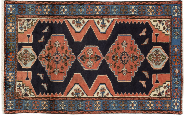 This rug belongs to village and nomadic rugs from Iran, formerly Persia. This type of rug is knotted by hand in smaller towns and villages in old tradition. Even nomads still knot Persian rugs in the open air. The rugs are knotted without a draft and completely from the mind. They are characterized by classical ornaments, which are arranged in straight and geometrical patterns. Thanks to their cultural-traditional origin, these rugs have a unique character that embodies ancient Persia.