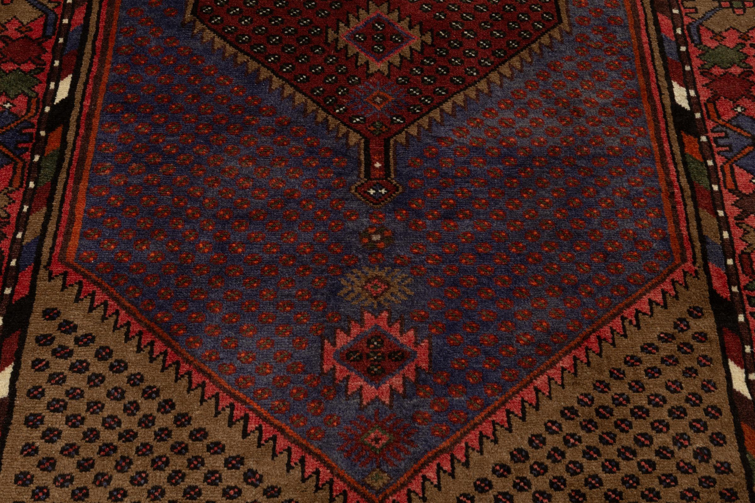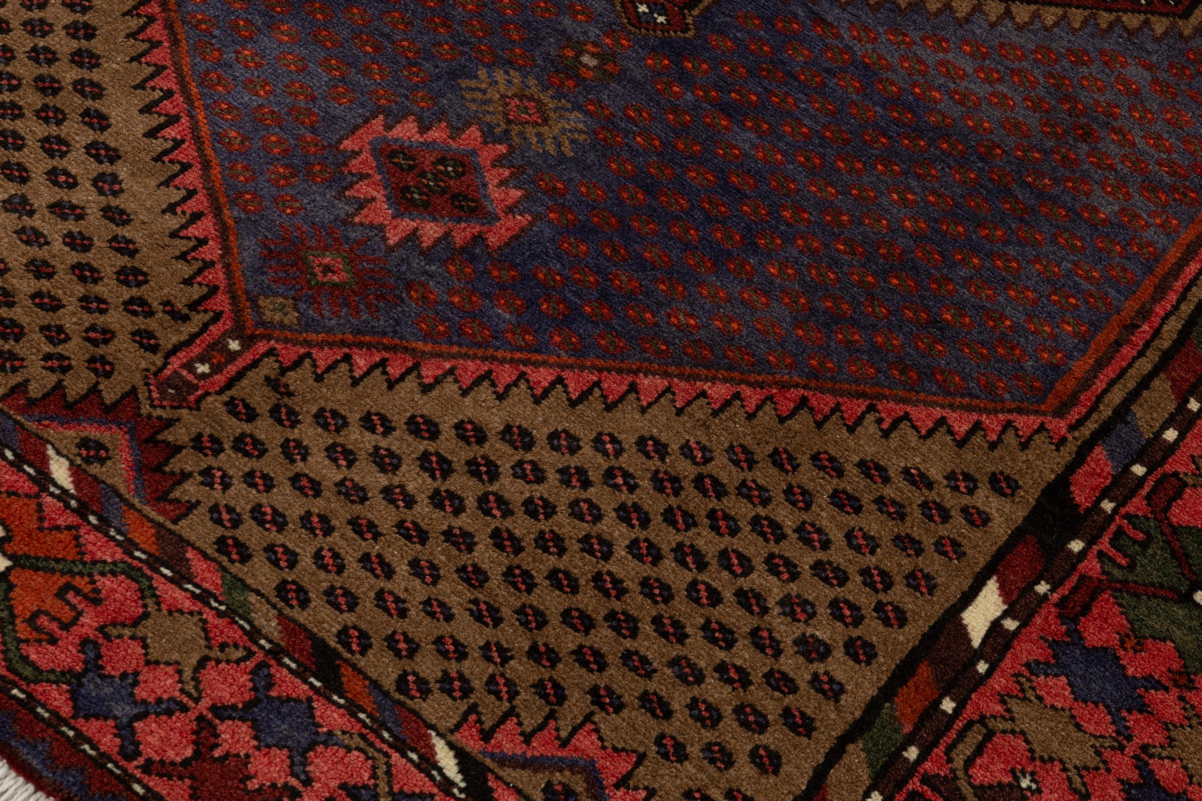This rug belongs to village and nomadic rugs from Iran, formerly Persia. This type of rug is knotted by hand in smaller towns and villages in old tradition. Even nomads still knot Persian rugs in the open air. The rugs are knotted without a draft and completely from the mind. They are characterized by classical ornaments, which are arranged in straight and geometrical patterns. Thanks to their cultural-traditional origin, these rugs have a unique character that embodies ancient Persia.
