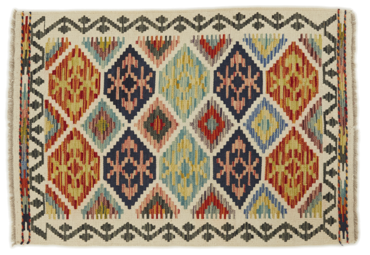 These kilim rugs show a decisive difference to hand-knotted rugs - they are woven by hand. Thus, they do not have a high pile of wool and are often flatter and rougher than knotted wool rugs. Their making is less elaborate and so they are usually much more affordable. As an advantage, kilim rugs are also much lighter and can be laid out from the front and back side. Hand-woven kilims originally come from the former Persia and are now also often made in Afghanistan. They have rather simple, straightforward patterns, which are determined by their weaving technique.