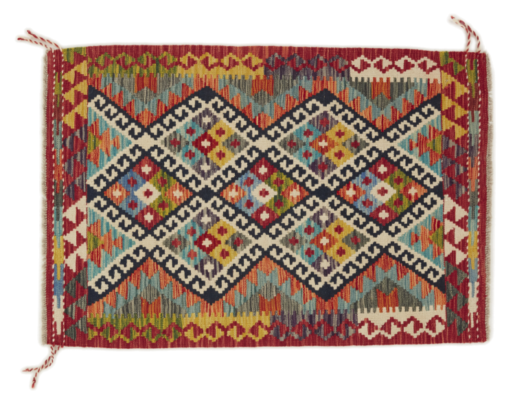 These kilim rugs show a decisive difference to hand-knotted rugs - they are woven by hand. Thus, they do not have a high pile of wool and are often flatter and rougher than knotted wool rugs. Their making is less elaborate and so they are usually much more affordable. As an advantage, kilim rugs are also much lighter and can be laid out from the front and back side. Hand-woven kilims originally come from the former Persia and are now also often made in Afghanistan. They have rather simple, straightforward patterns, which are determined by their weaving technique.