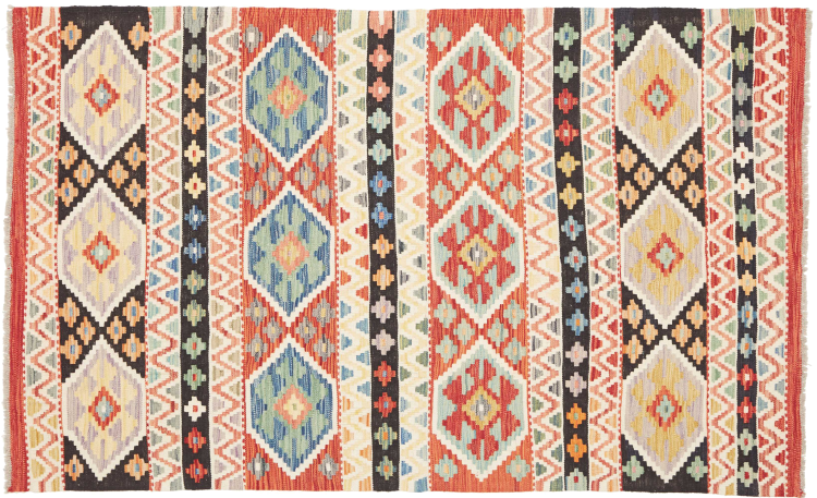 These kilim rugs show a decisive difference to hand-knotted rugs - they are woven by hand. Thus, they do not have a high pile of wool and are often flatter and rougher than knotted wool rugs. Their making is less elaborate and so they are usually much more affordable. As an advantage, kilim rugs are also much lighter and can be laid out from the front and back side. Hand-woven kilims originally come from the former Persia and are now also often made in Afghanistan. They have rather simple, straightforward patterns, which are determined by their weaving technique.