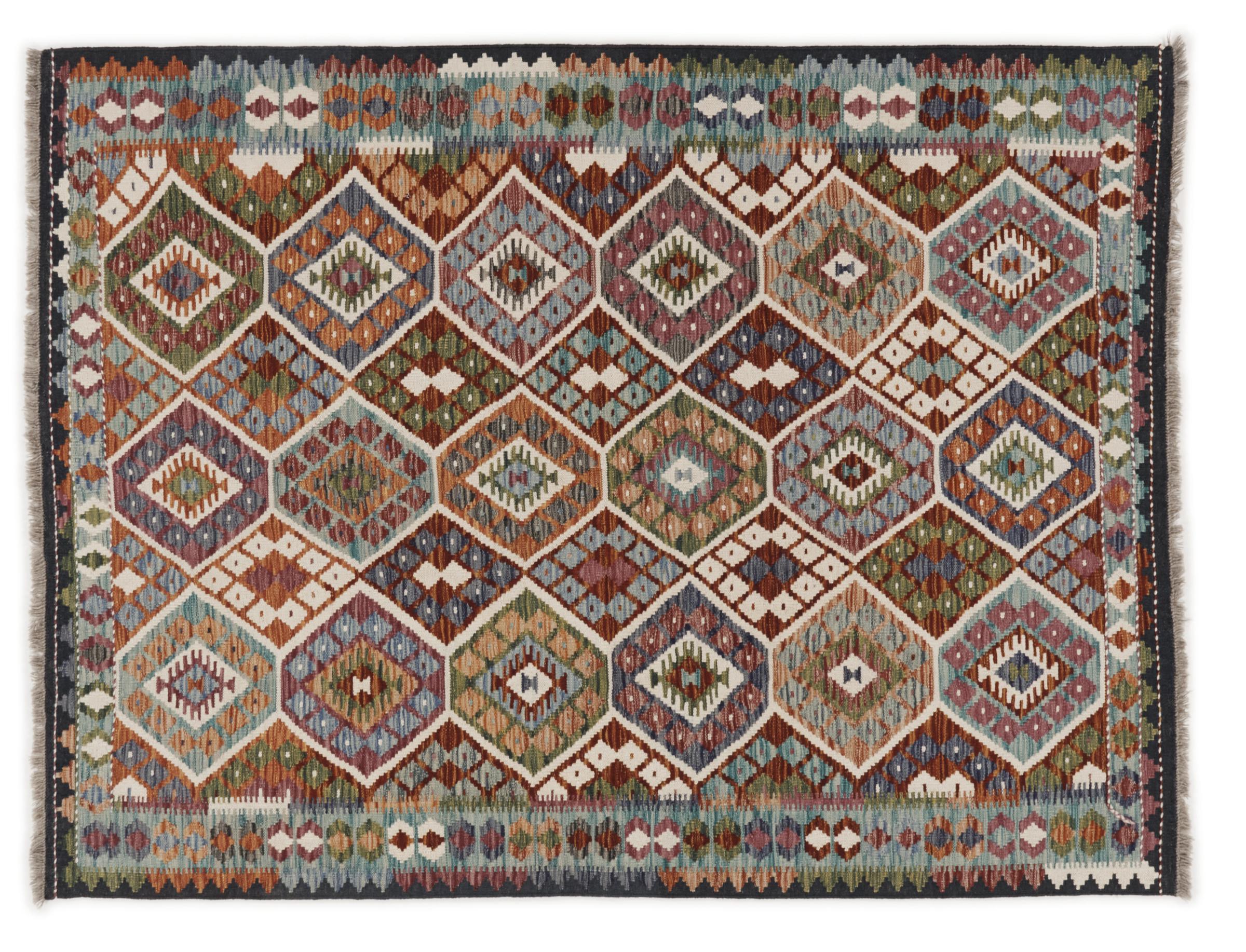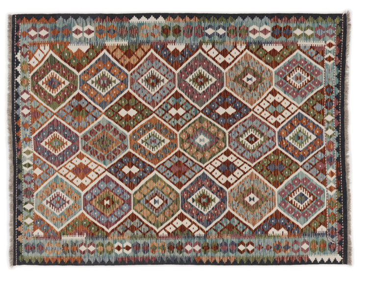 These kilim rugs show a decisive difference to hand-knotted rugs - they are woven by hand. Thus, they do not have a high pile of wool and are often flatter and rougher than knotted wool rugs. Their making is less elaborate and so they are usually much more affordable. As an advantage, kilim rugs are also much lighter and can be laid out from the front and back side. Hand-woven kilims originally come from the former Persia and are now also often made in Afghanistan. They have rather simple, straightforward patterns, which are determined by their weaving technique.