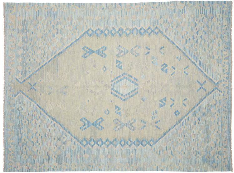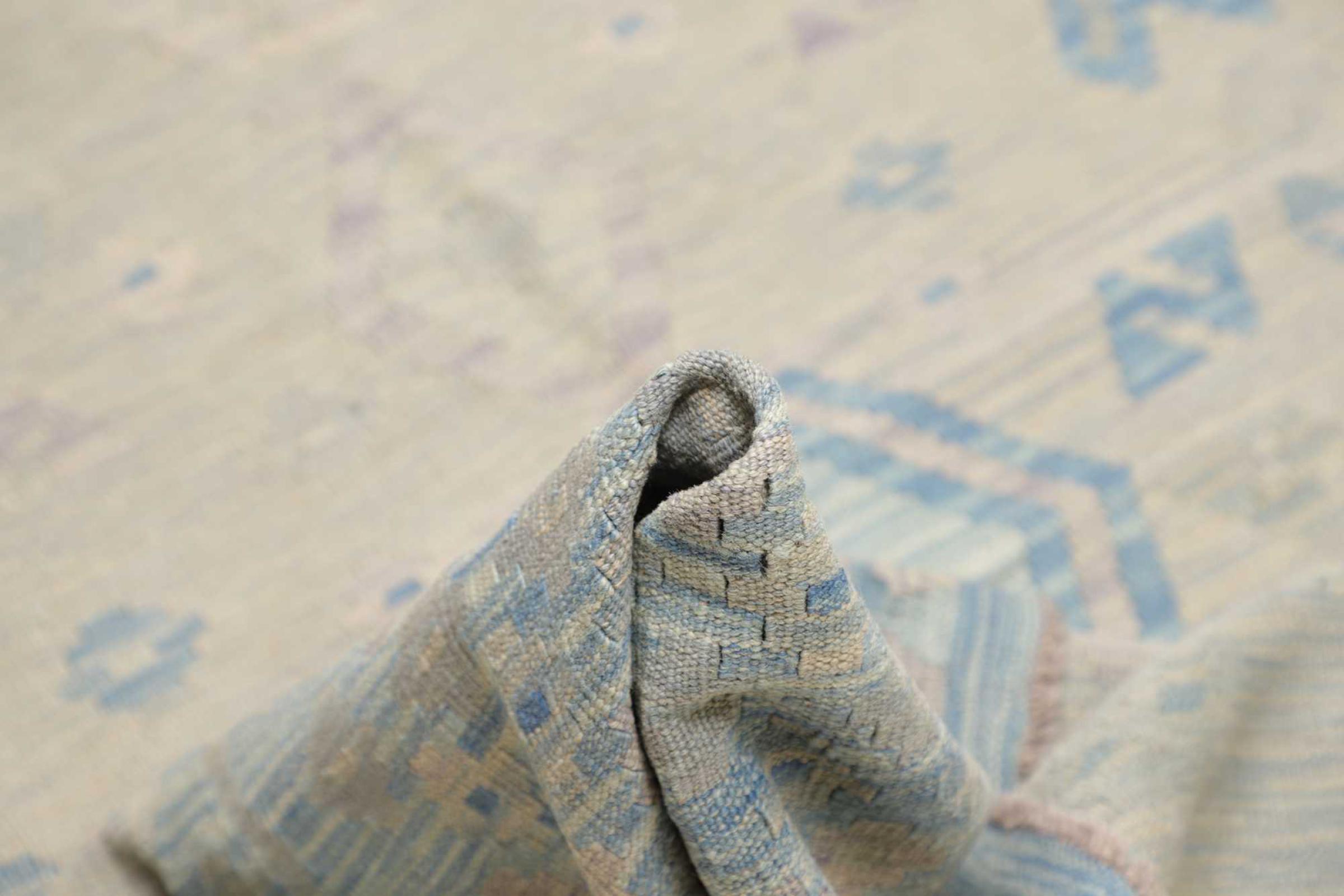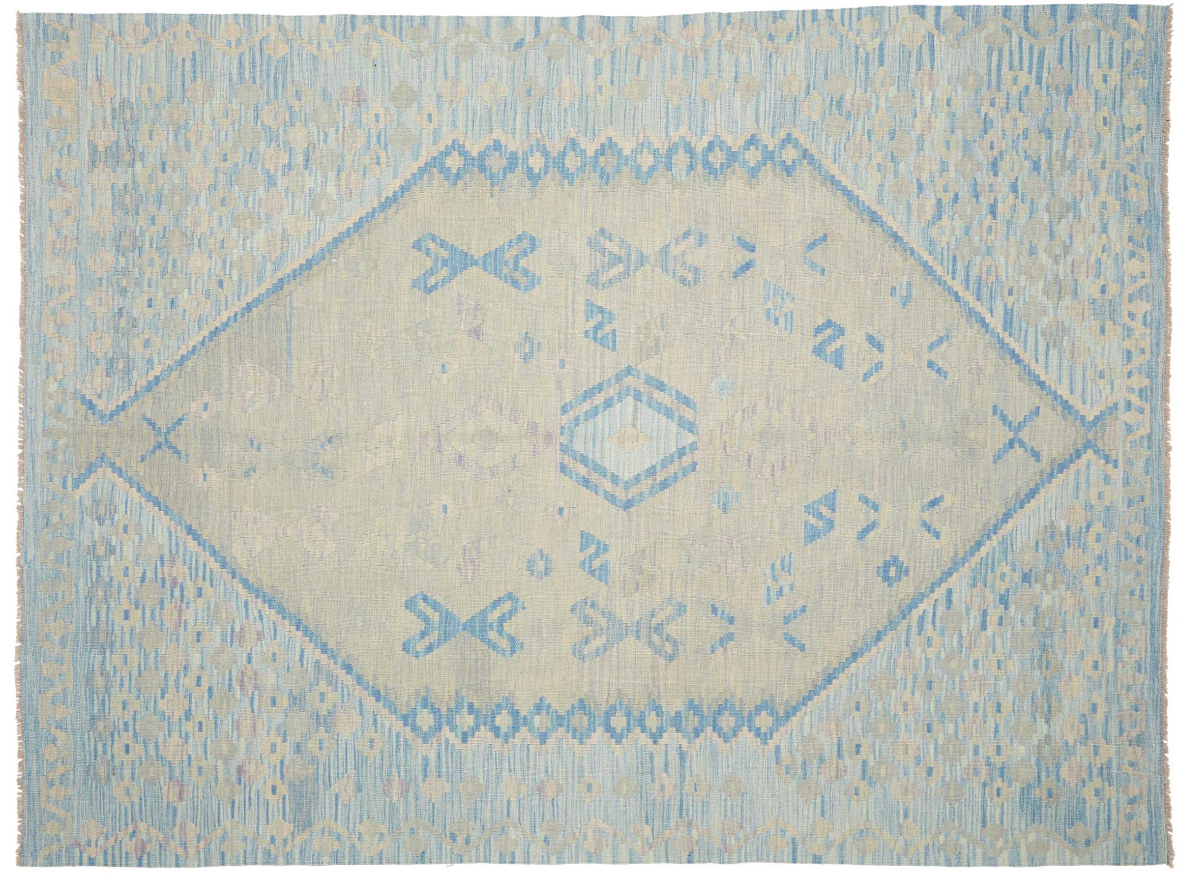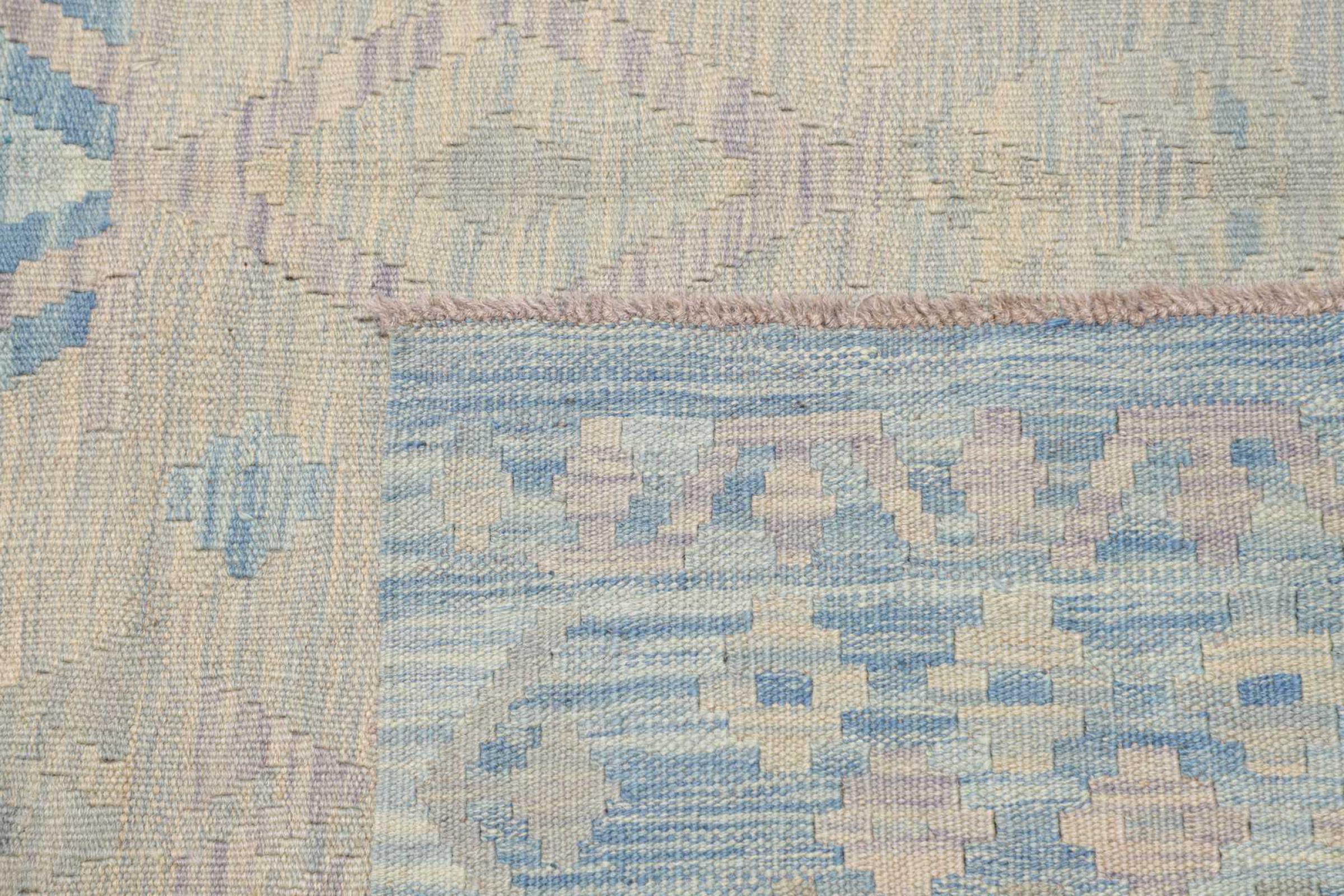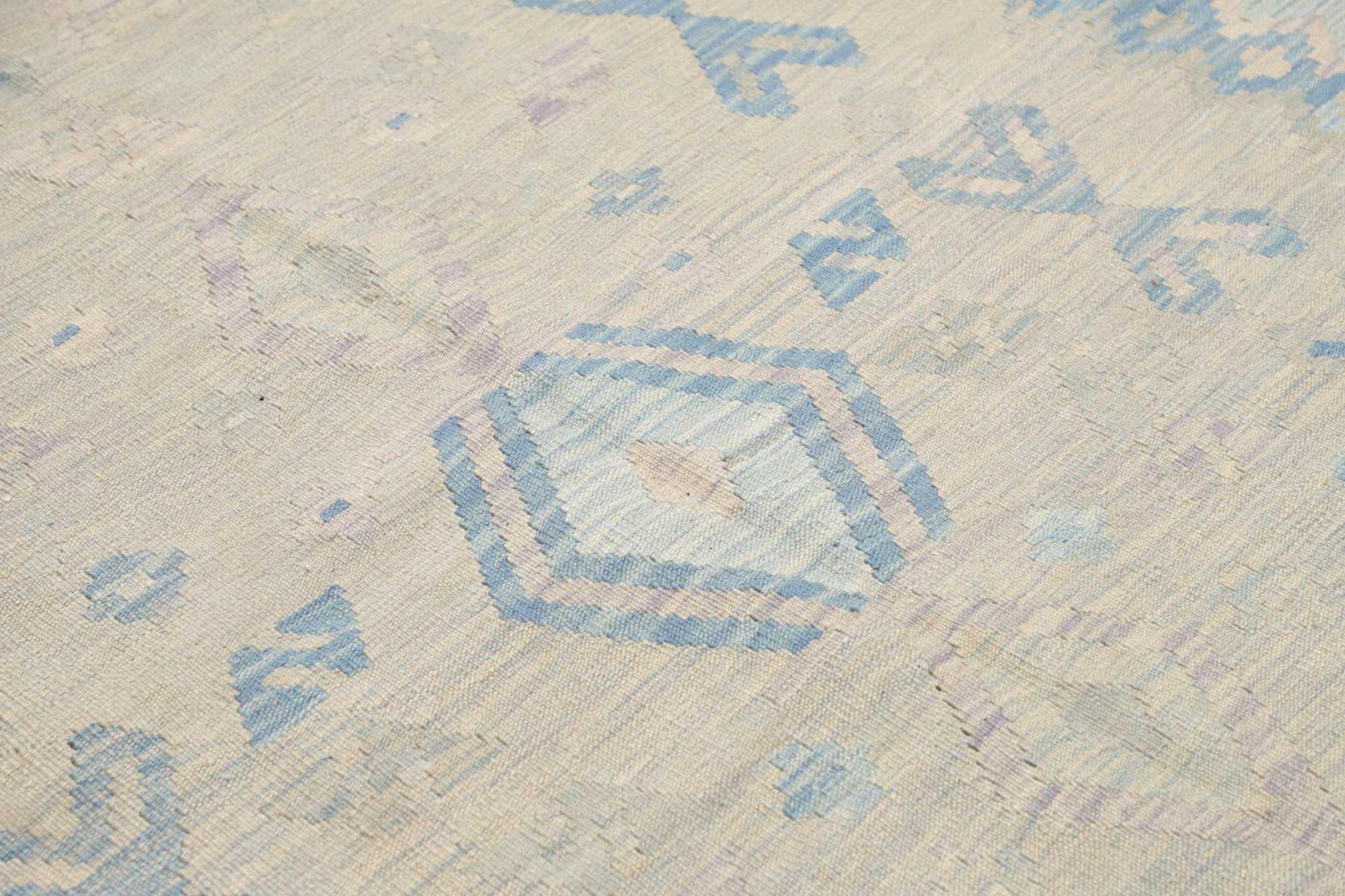This handwoven Kilim Afghan is a wonderful and unique piece of art. Hard to believe that these modern colours and patterns have already been used centuries ago. This carpet has been woven by hand in old tradition in Afghanistan. It delivers a portion of contemporary history, which you won't find in this specific design a second time. It consists of high-grade natural wool and gives your home a personalised touch.