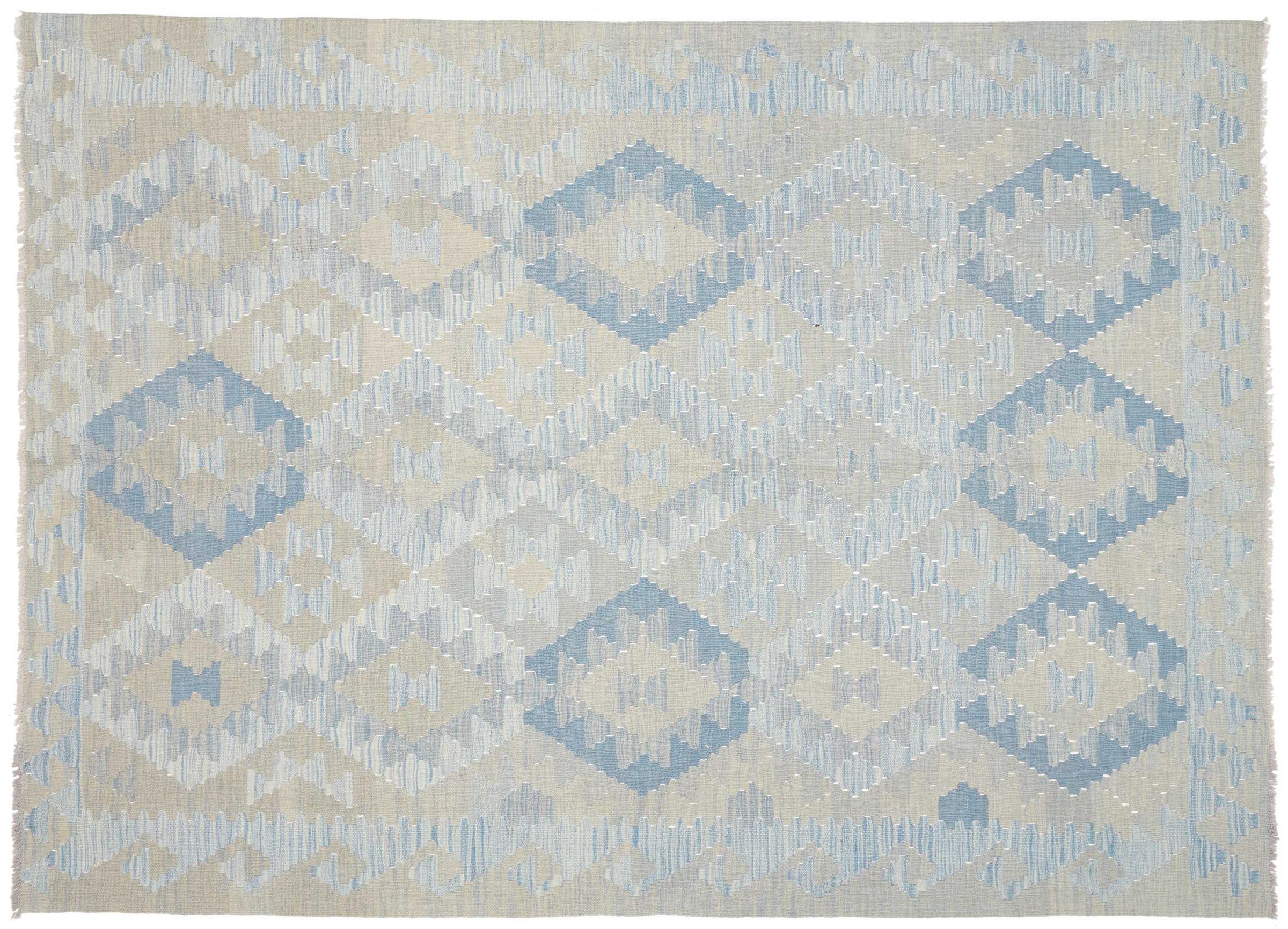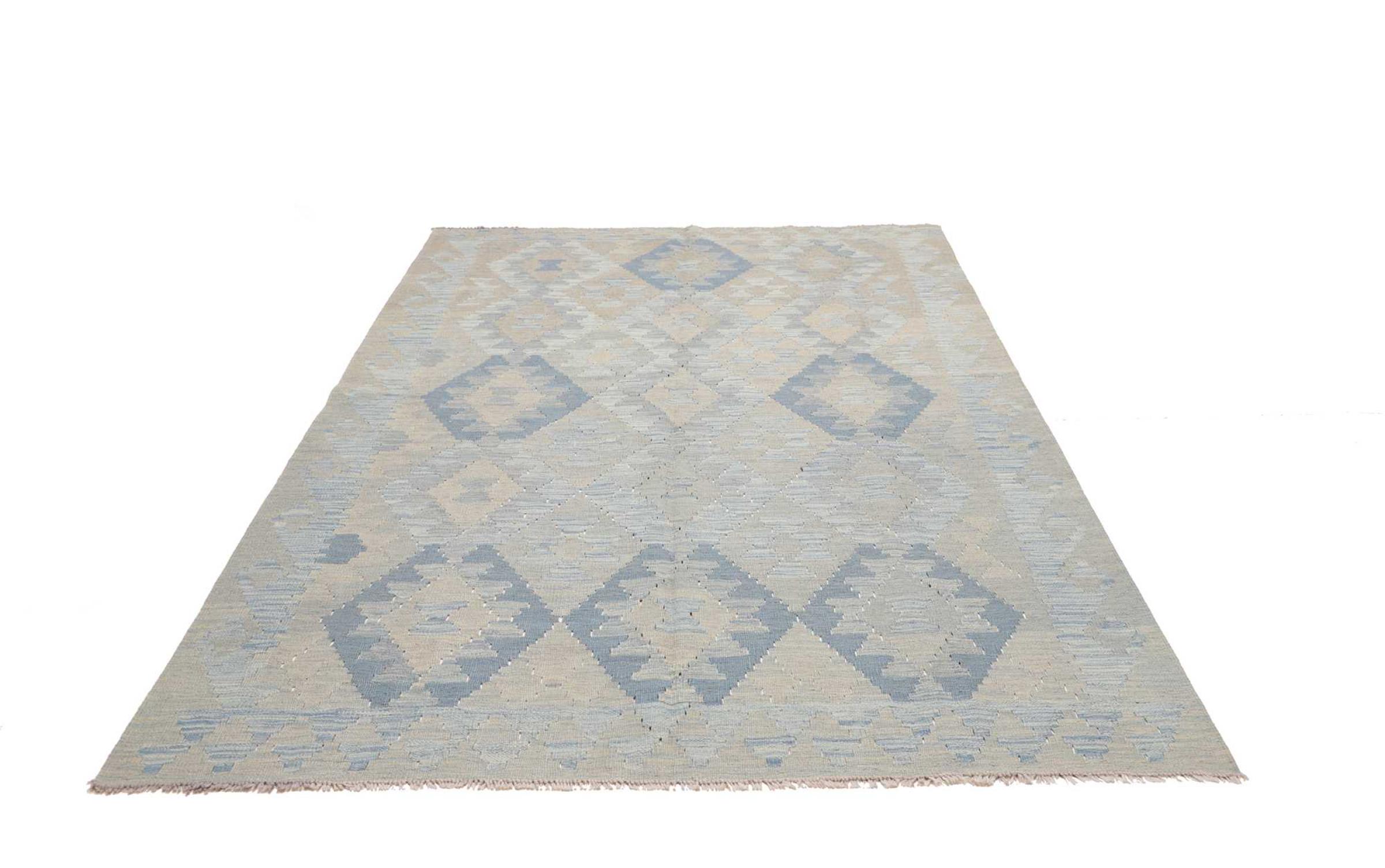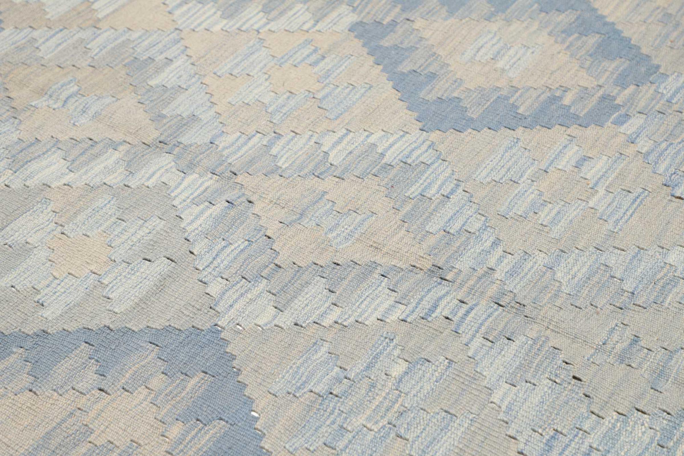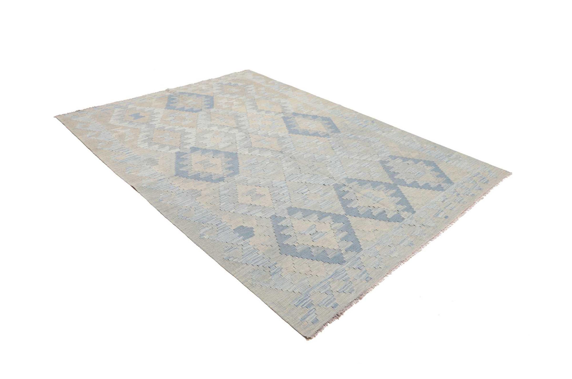 This handwoven Kilim Afghan is a wonderful and unique piece of art. Hard to believe that these modern colours and patterns have already been used centuries ago. This carpet has been woven by hand in old tradition in Afghanistan. It delivers a portion of contemporary history, which you won't find in this specific design a second time. It consists of high-grade natural wool and gives your home a personalised touch.