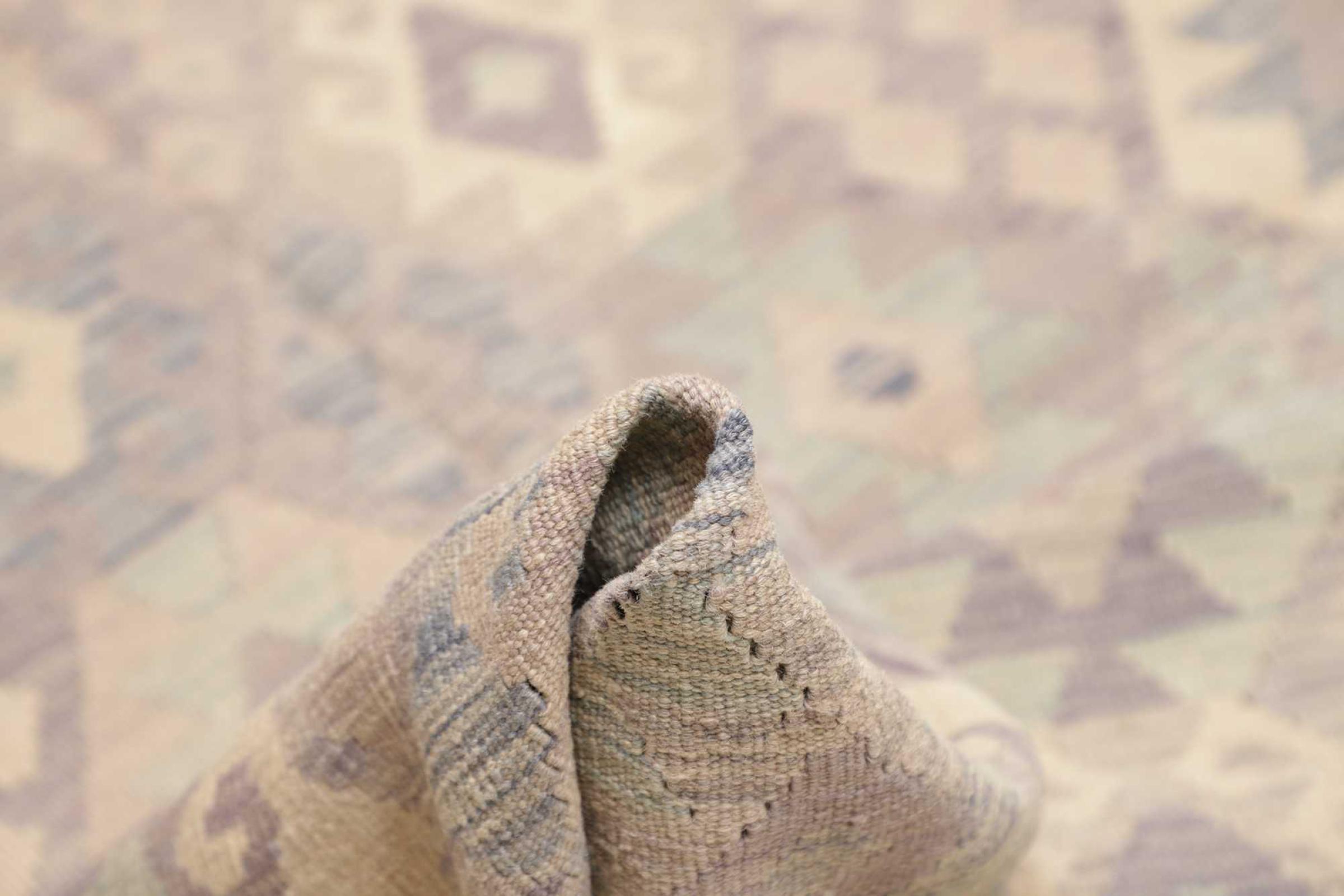 This rug was made as a flat weave by hand on a loom. Flatweave is the term used to describe rugs that have no pile. As the name promises, these rugs are woven and not knotted. This results in a flat rug with a structured surface. Flatweaves are not as soft and usually thinner than knotted rugs. At the same time they are much less complex to manufacture and can usually be laid out from both sides (front and back). Their patterns are usually geometric, which is determined by the fabric.