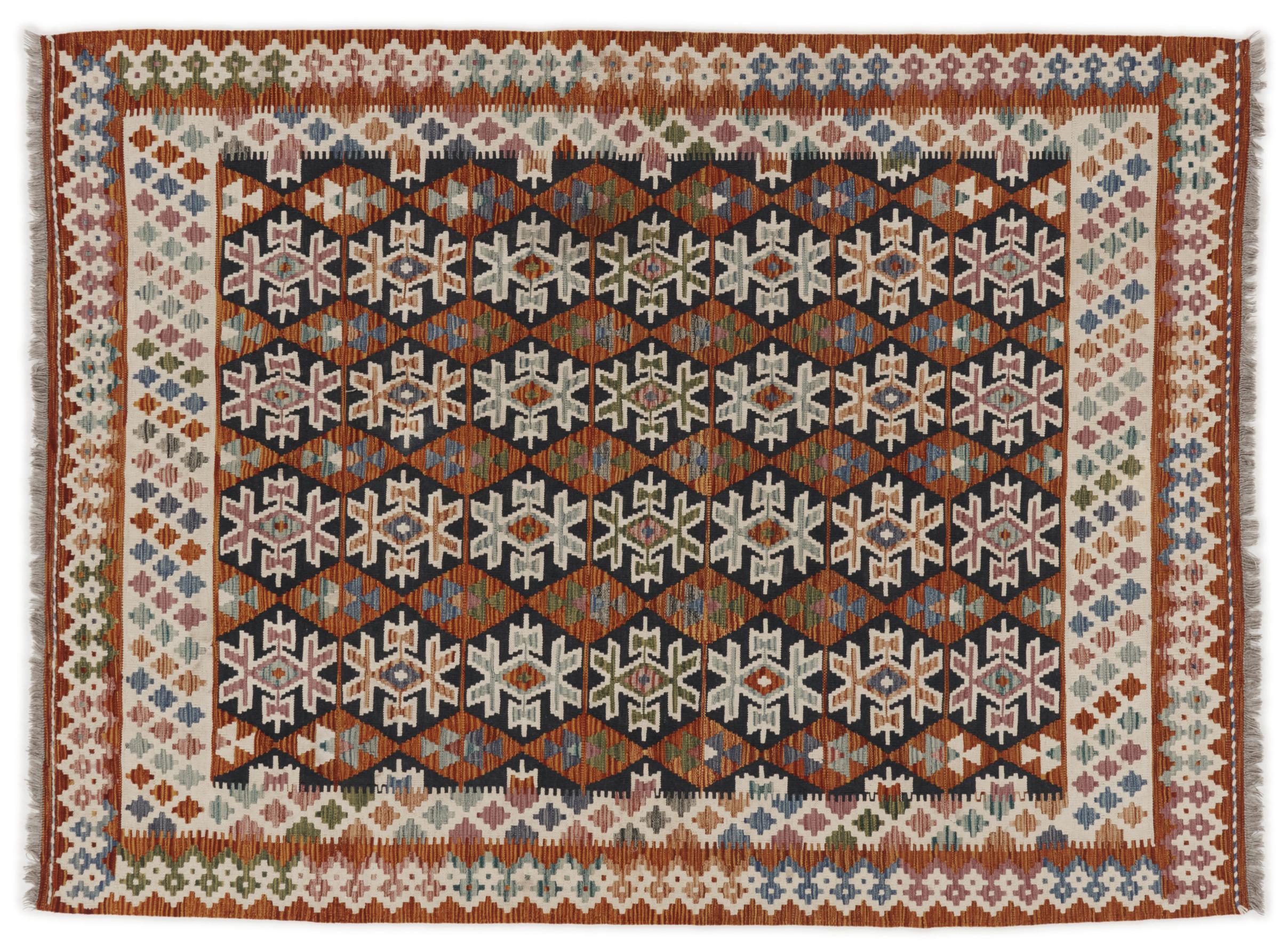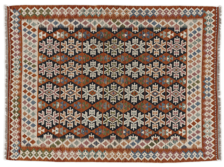 These kilim rugs show a decisive difference to hand-knotted rugs - they are woven by hand. Thus, they do not have a high pile of wool and are often flatter and rougher than knotted wool rugs. Their making is less elaborate and so they are usually much more affordable. As an advantage, kilim rugs are also much lighter and can be laid out from the front and back side. Hand-woven kilims originally come from the former Persia and are now also often made in Afghanistan. They have rather simple, straightforward patterns, which are determined by their weaving technique.