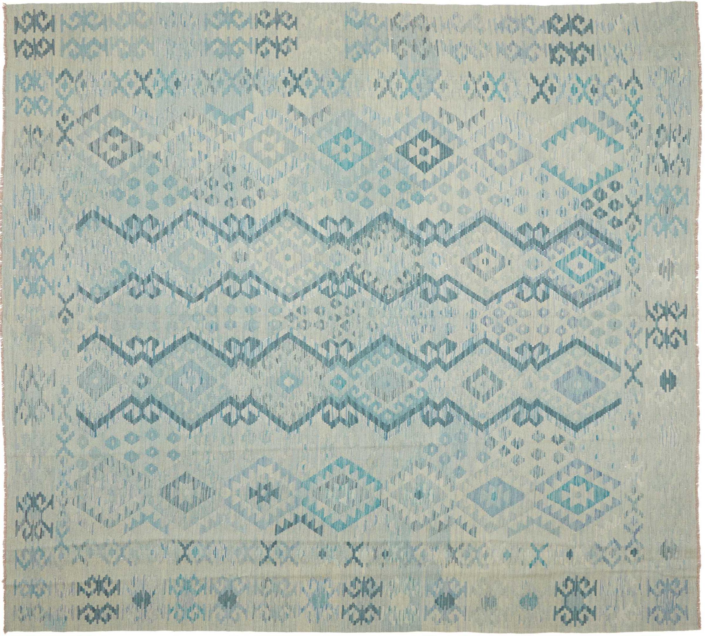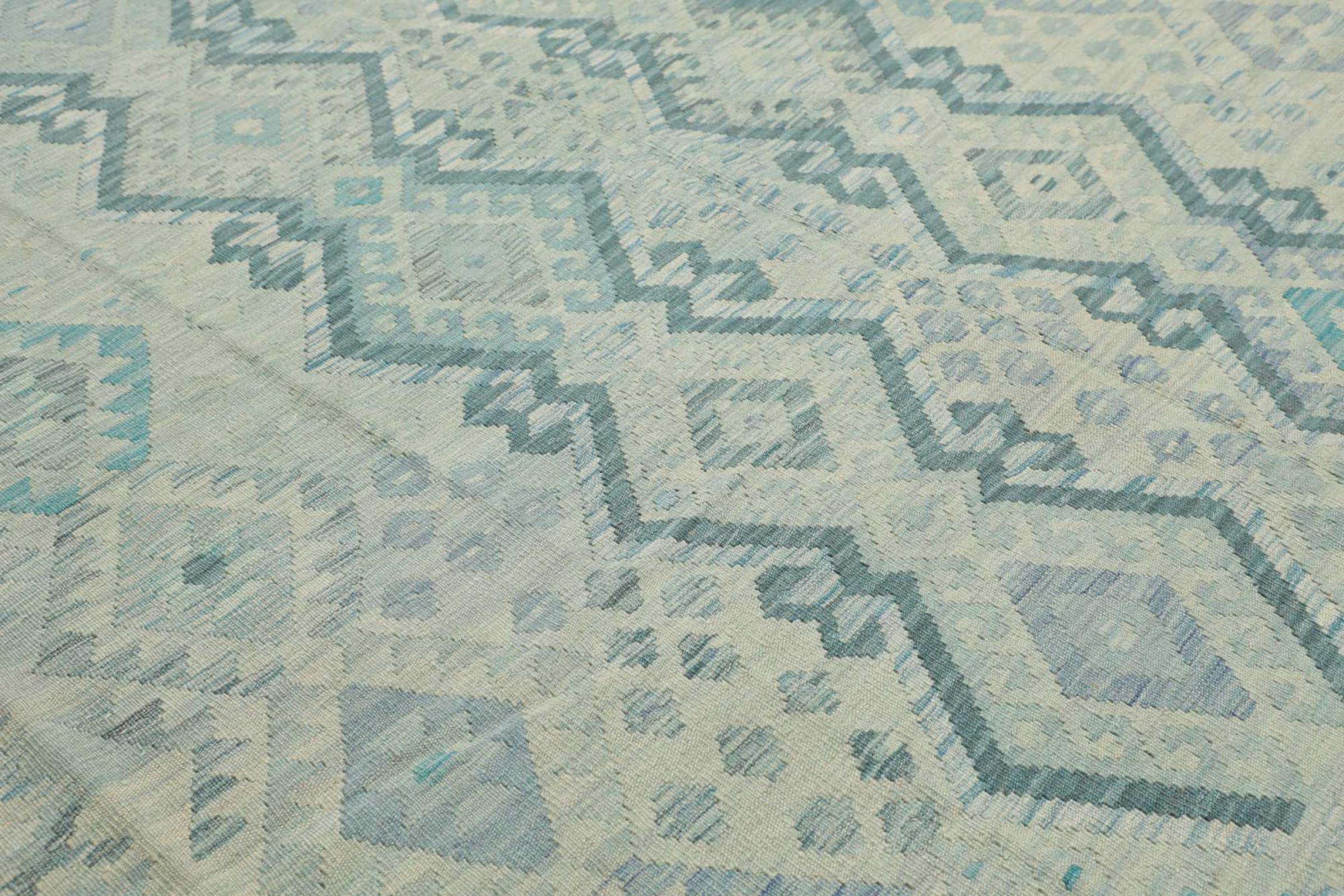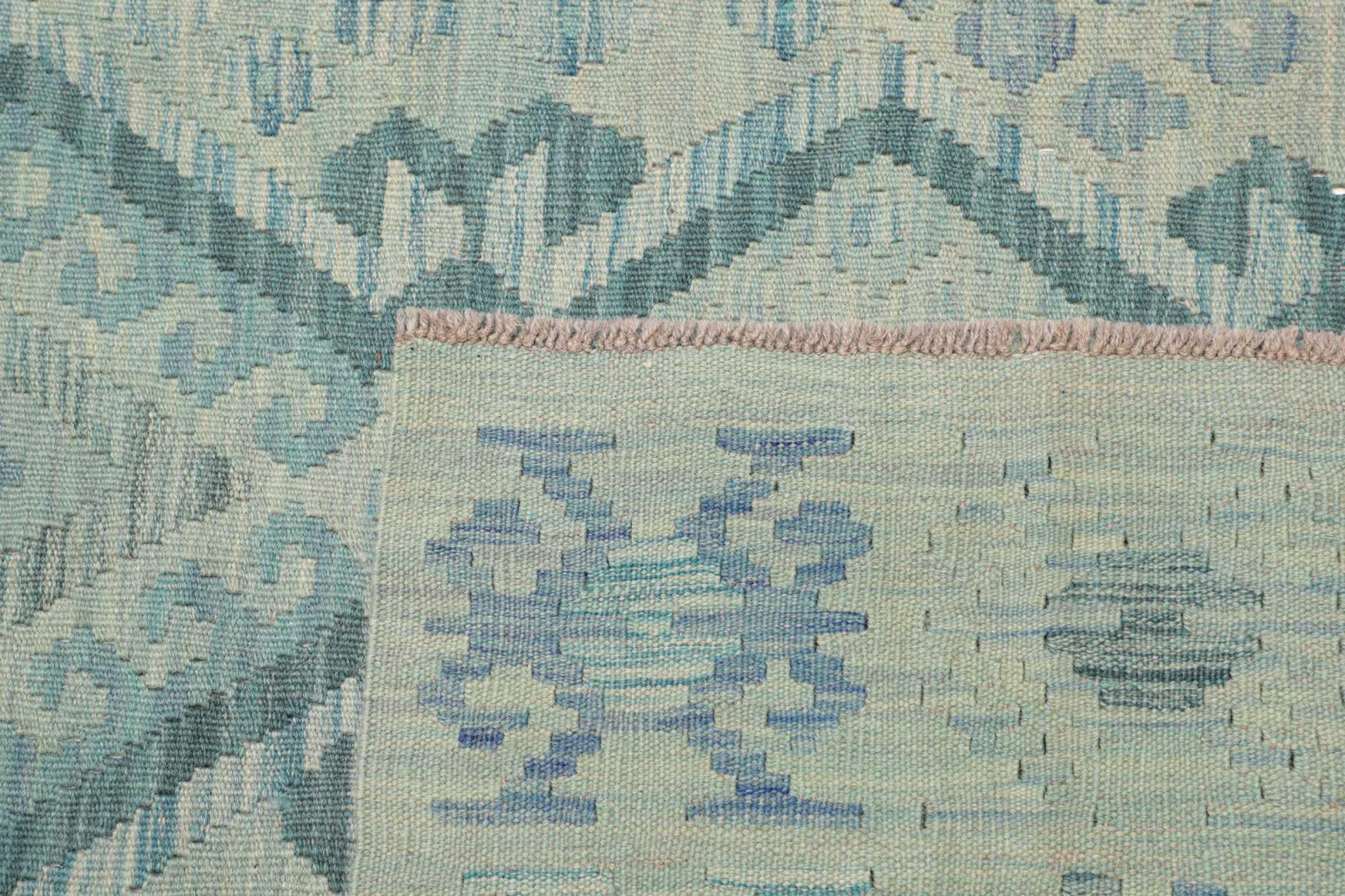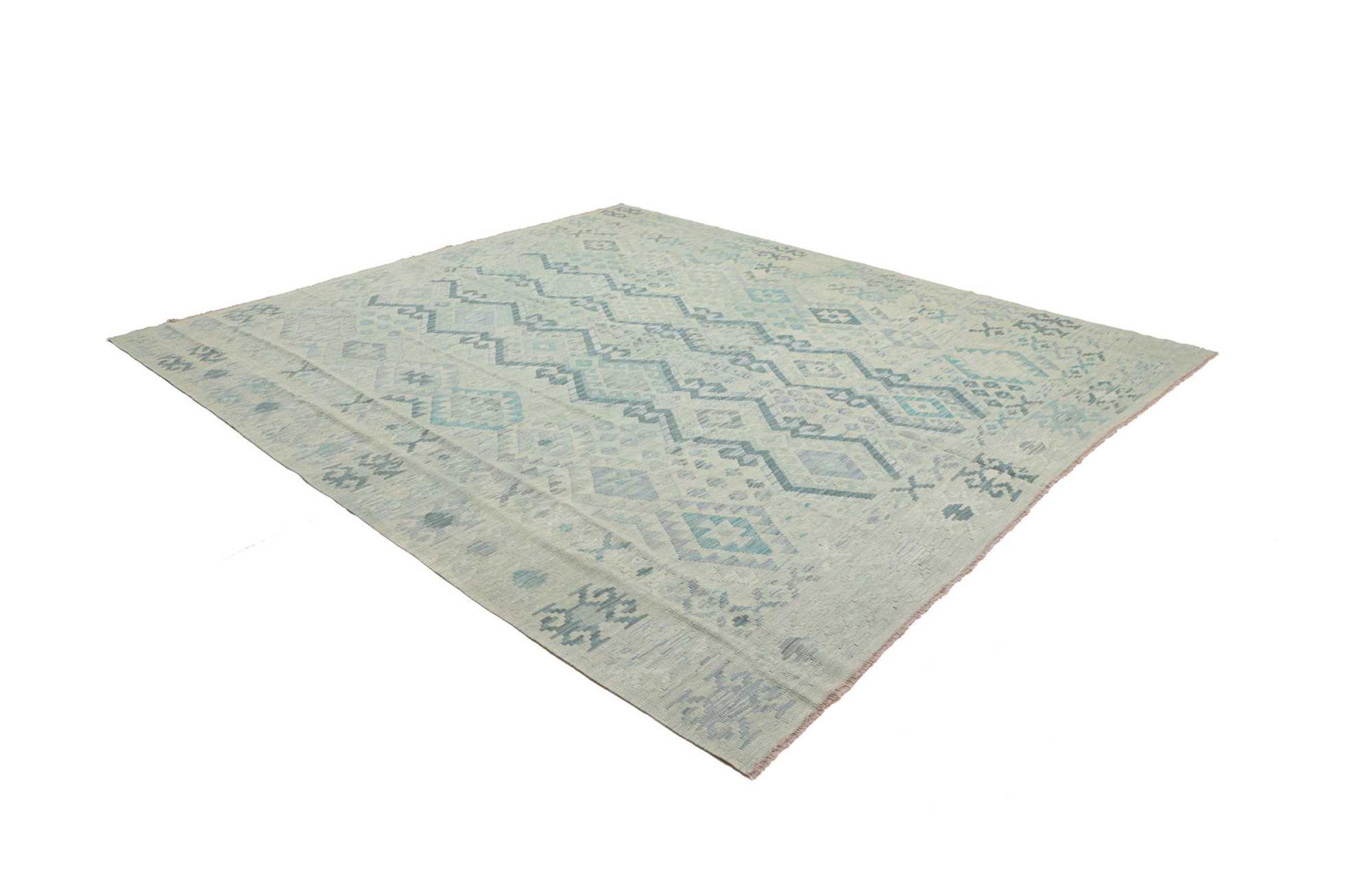 This handwoven Kilim Afghan is a wonderful and unique piece of art. Hard to believe that these modern colours and patterns have already been used centuries ago. This carpet has been woven by hand in old tradition in Afghanistan. It delivers a portion of contemporary history, which you won't find in this specific design a second time. It consists of high-grade natural wool and gives your home a personalised touch.