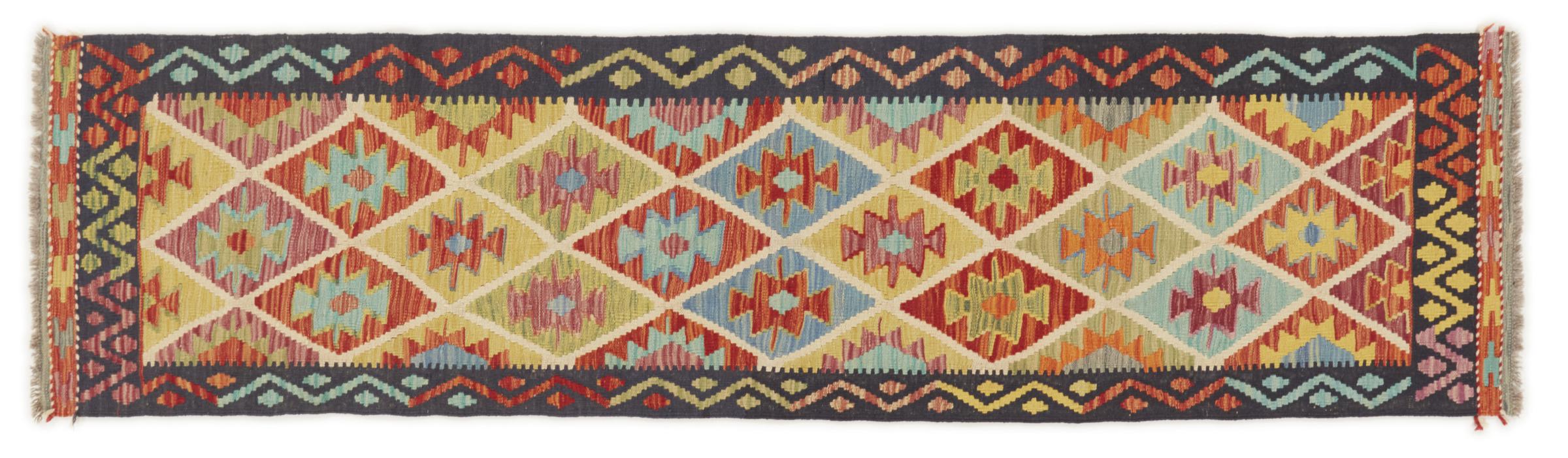 Carpet ID: 283857004461989 Size: 294x80 cm Thickness: ap. 3 mm Manufacturing: Woven by hand Pile: Handspun wool Warp: Sheep wool Origin: Afghanistan Age: New Weight: ap. 4 kg In stock: Unique - Only 1 in stock