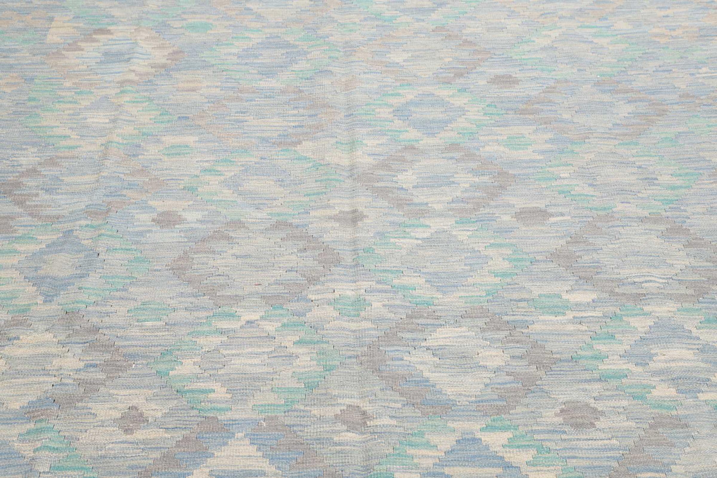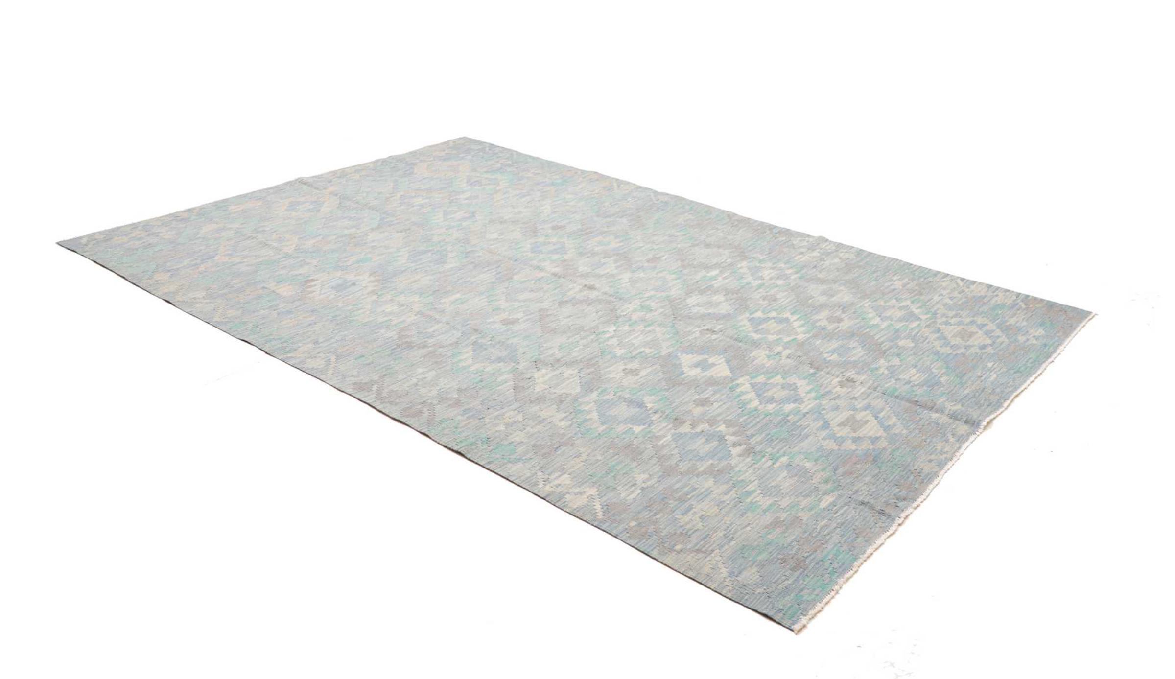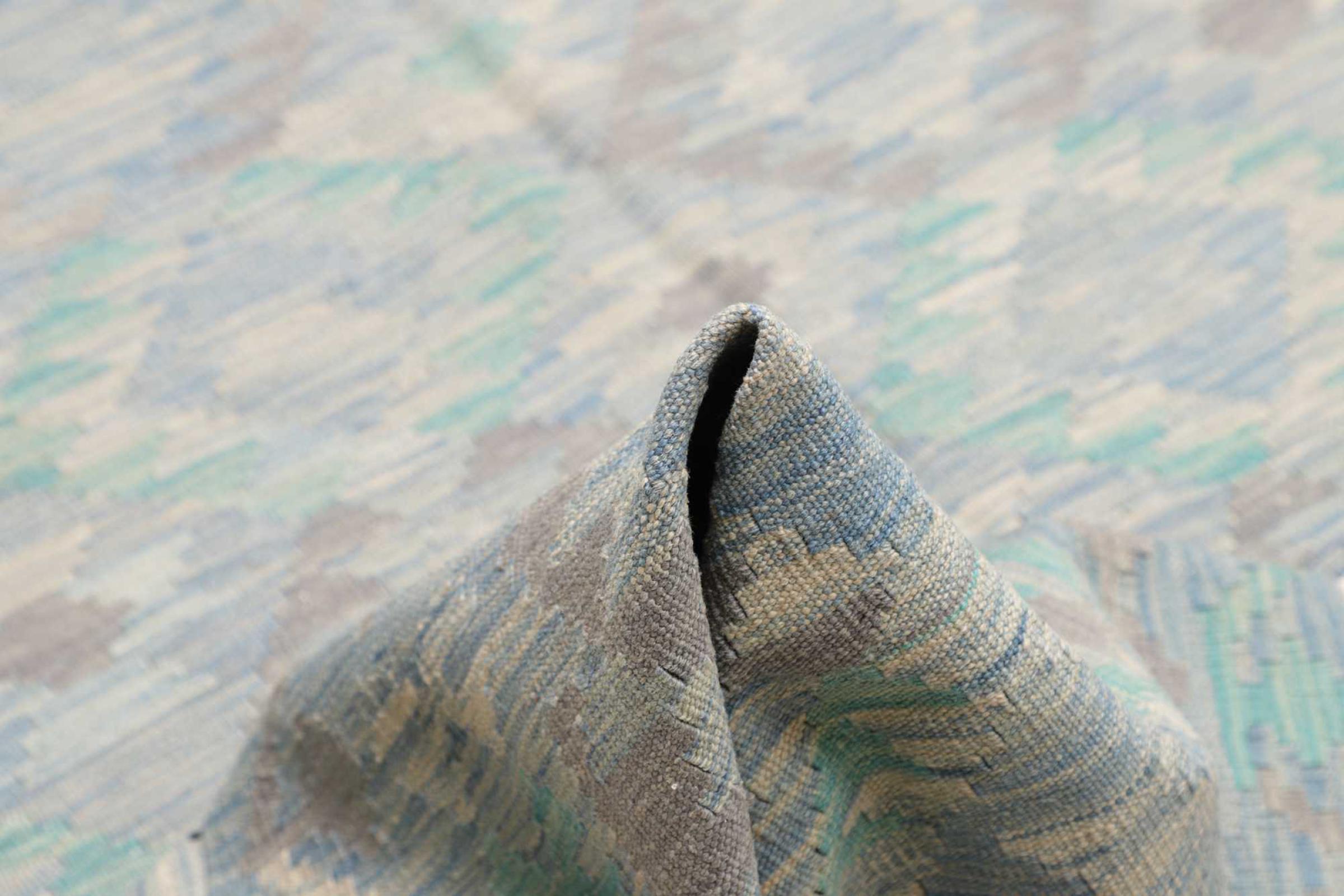 This rug was made as a flat weave by hand on a loom. Flatweave is the term used to describe rugs that have no pile. As the name promises, these rugs are woven and not knotted. This results in a flat rug with a structured surface. Flatweaves are not as soft and usually thinner than knotted rugs. At the same time they are much less complex to manufacture and can usually be laid out from both sides (front and back). Their patterns are usually geometric, which is determined by the fabric.