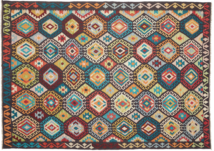 These kilim rugs show a decisive difference to hand-knotted rugs - they are woven by hand. Thus, they do not have a high pile of wool and are often flatter and rougher than knotted wool rugs. Their making is less elaborate and so they are usually much more affordable. As an advantage, kilim rugs are also much lighter and can be laid out from the front and back side. Hand-woven kilims originally come from the former Persia and are now also often made in Afghanistan. They have rather simple, straightforward patterns, which are determined by their weaving technique.