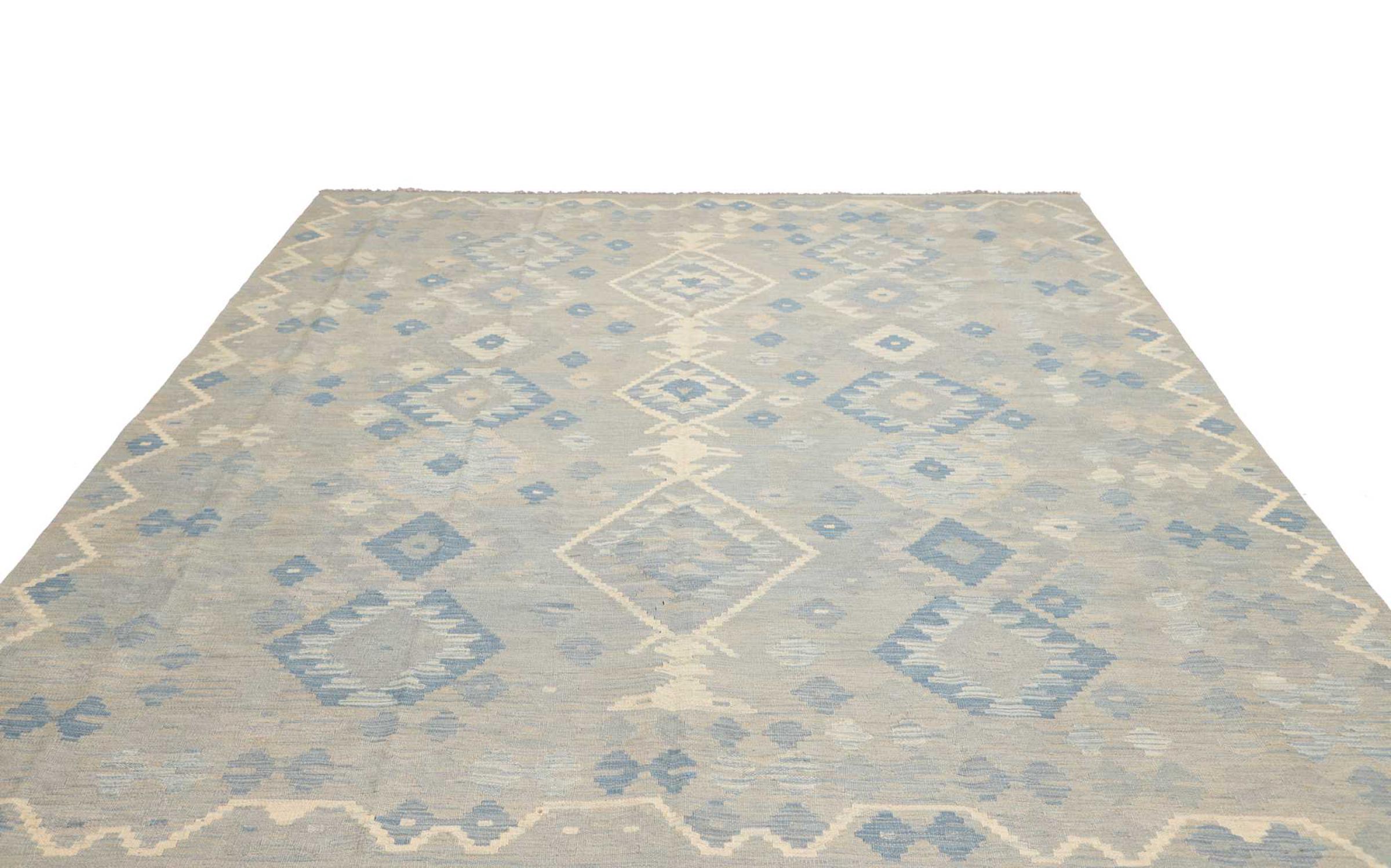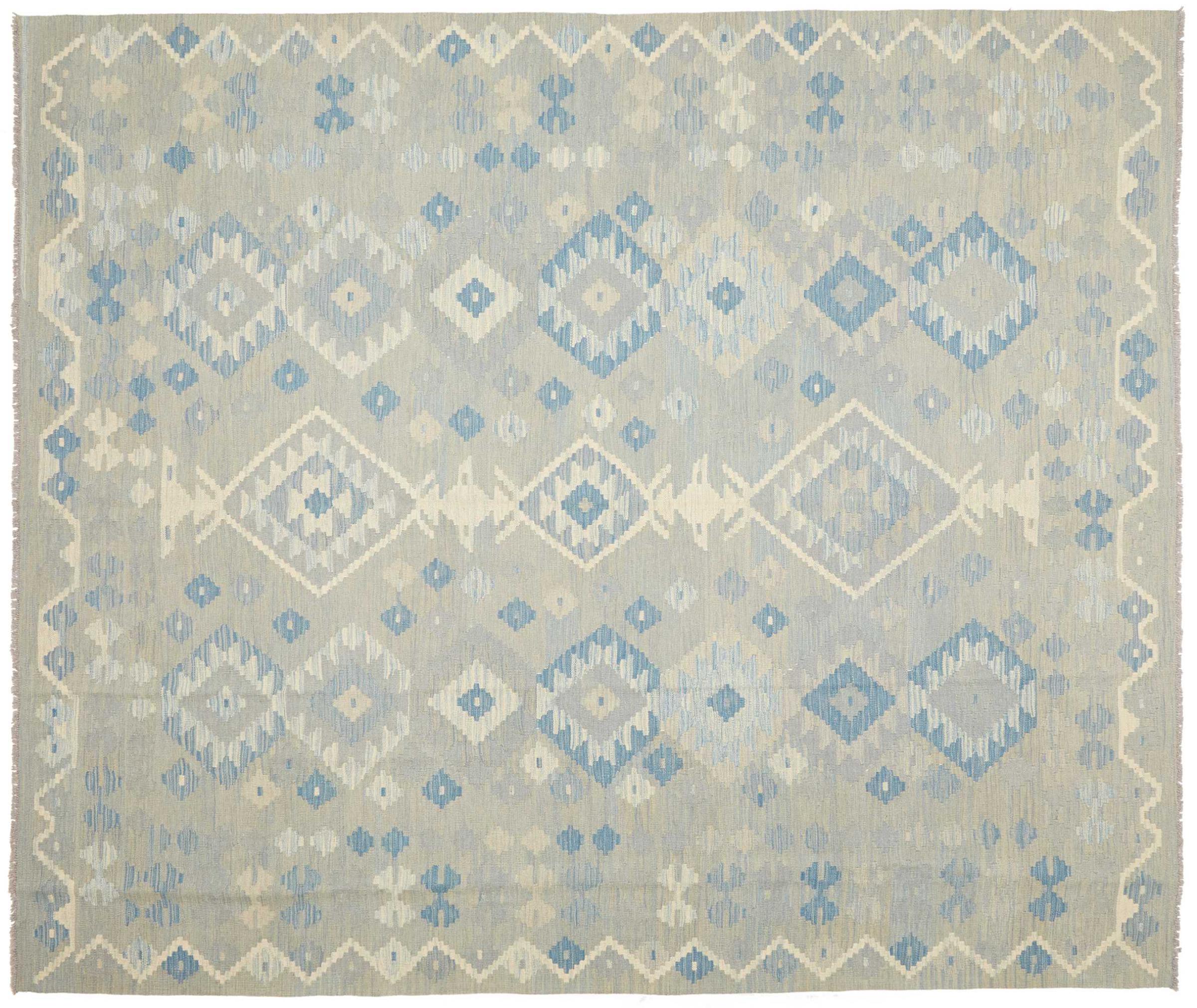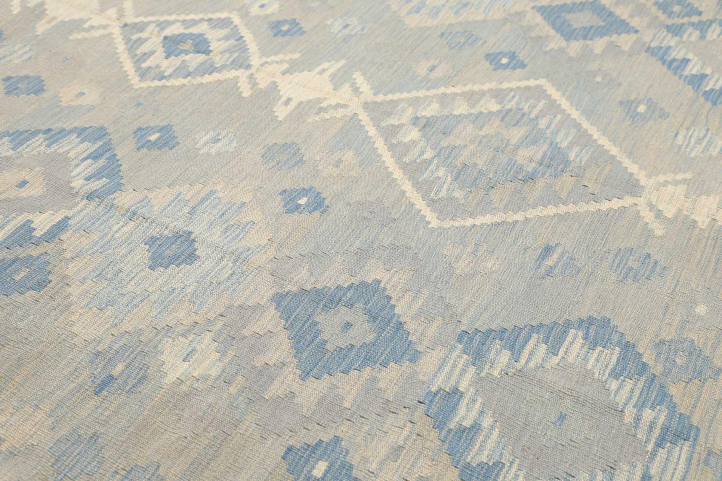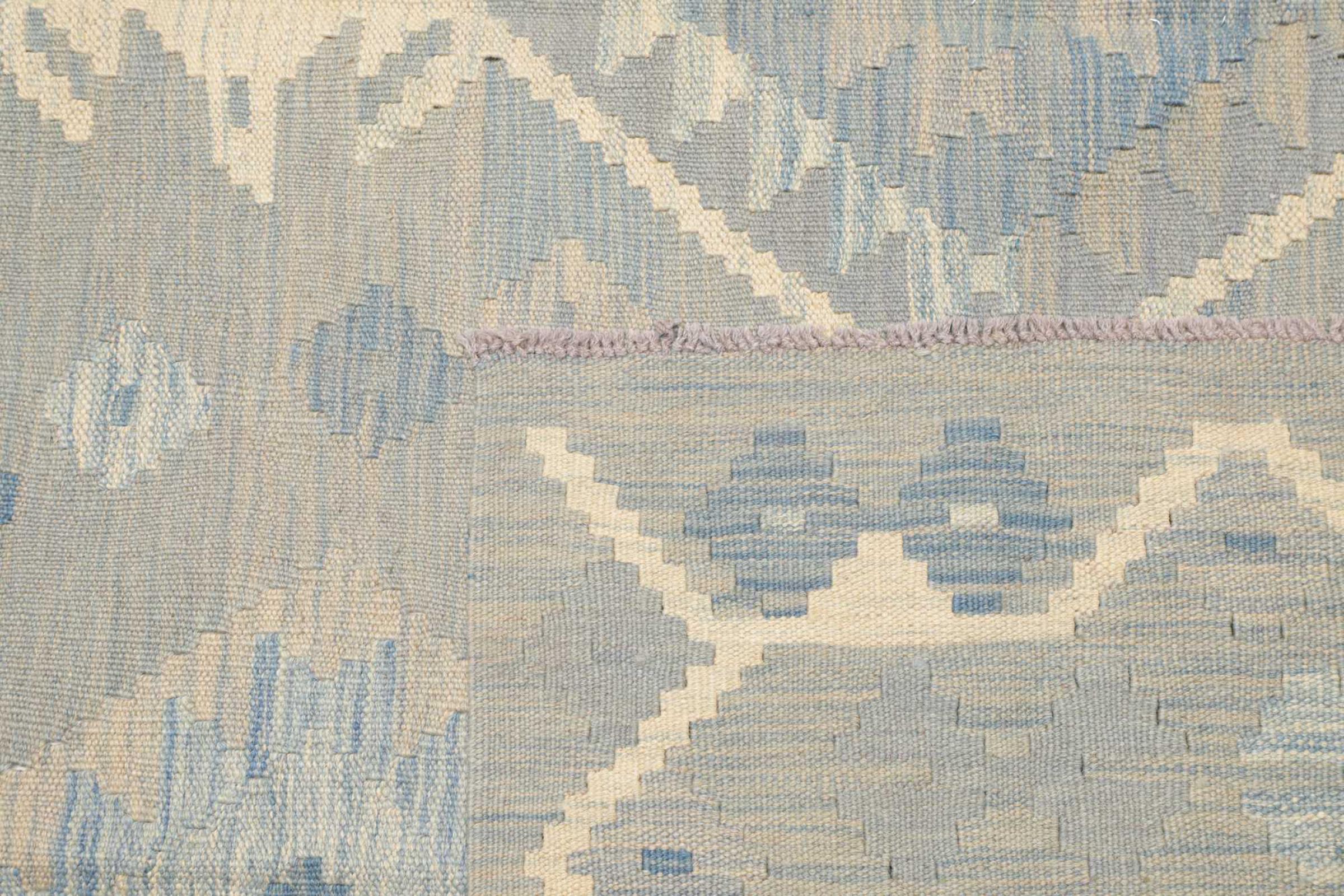 This handwoven Kilim Afghan is a wonderful and unique piece of art. Hard to believe that these modern colours and patterns have already been used centuries ago. This carpet has been woven by hand in old tradition in Afghanistan. It delivers a portion of contemporary history, which you won't find in this specific design a second time. It consists of high-grade natural wool and gives your home a personalised touch.