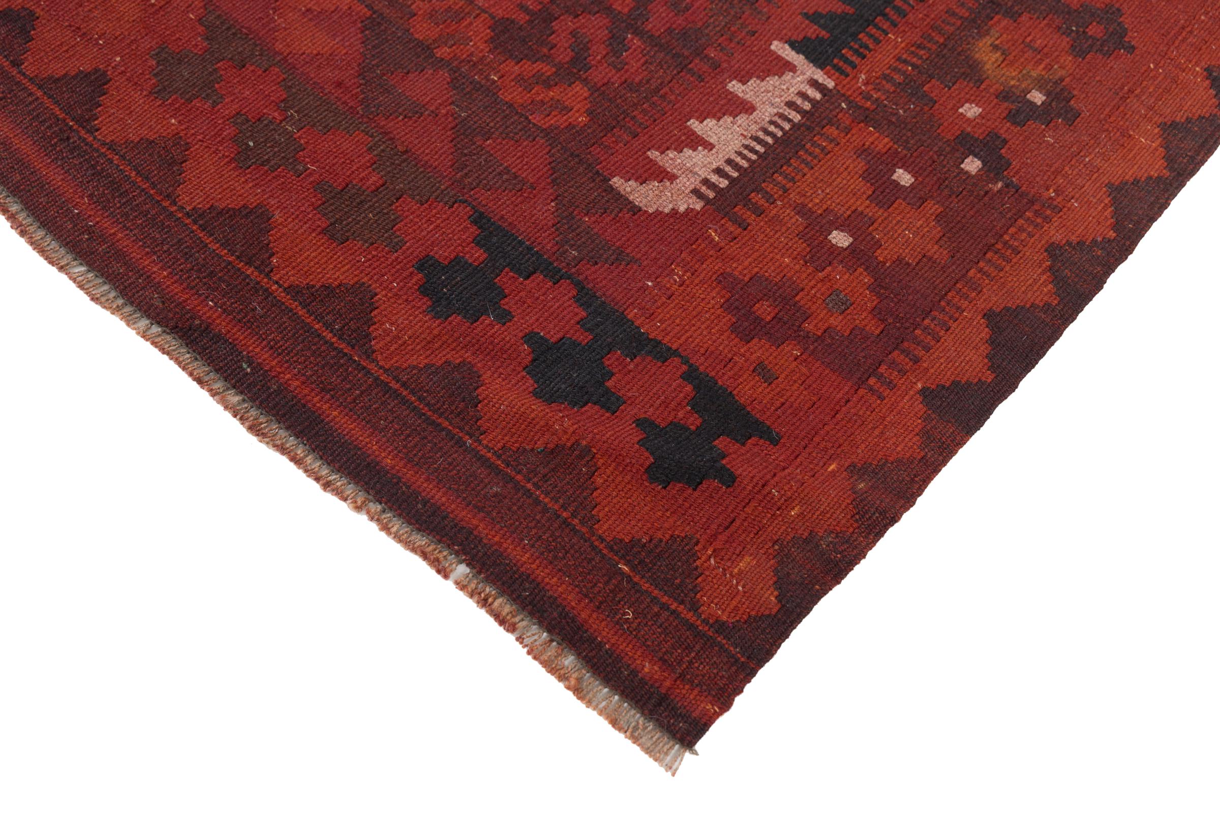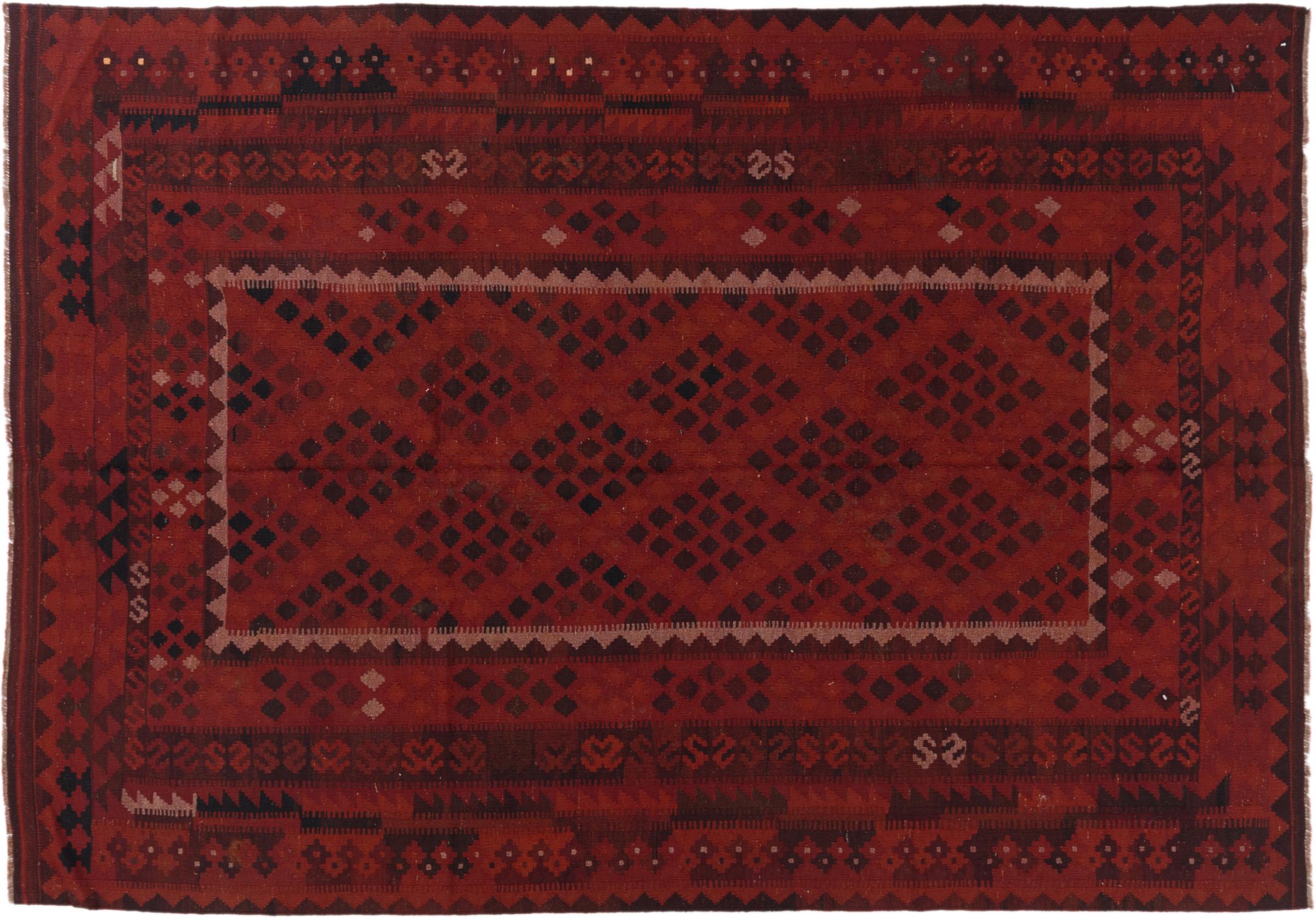 This handwoven Kilim Afghan is a wonderful and unique piece of art. Hard to believe that these modern colours and patterns have already been used centuries ago. This carpet has been woven by hand in old tradition in Afghanistan. It delivers a portion of contemporary history, which you won't find in this specific design a second time. It consists of high-grade natural wool and gives your home a personalised touch.