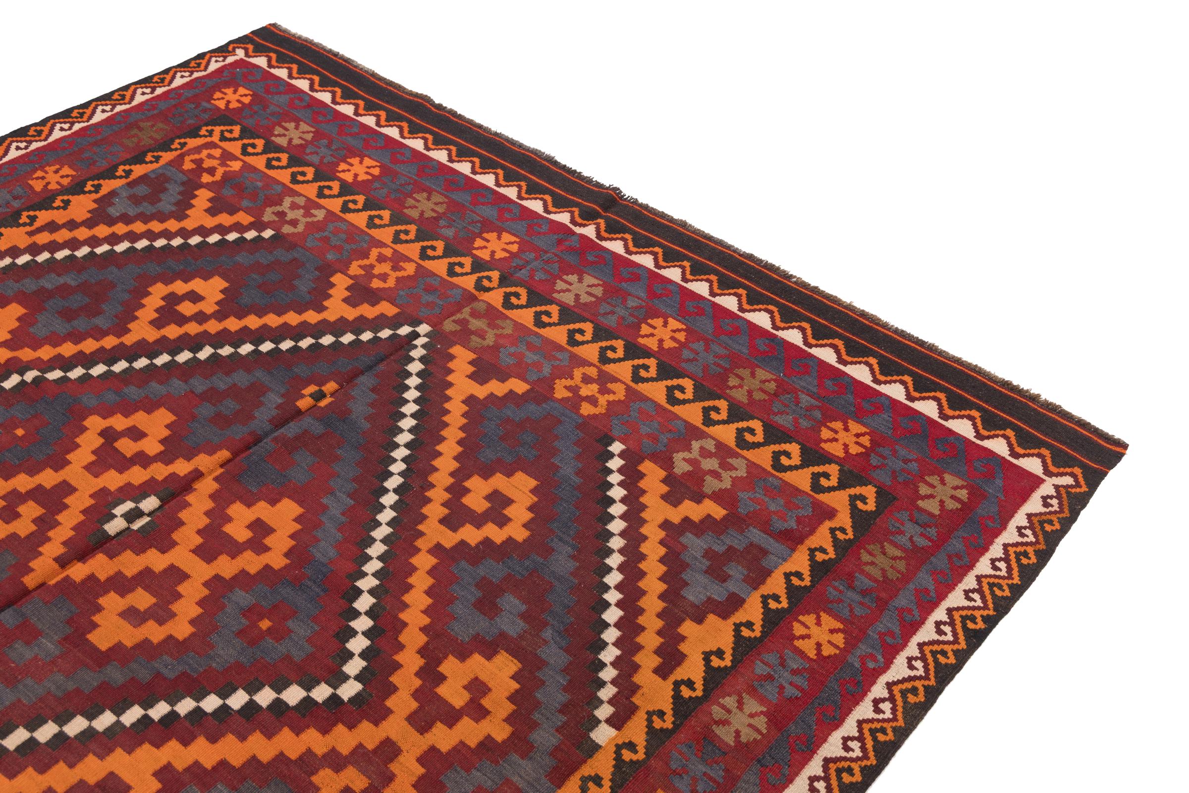 This handwoven Kilim Afghan is a wonderful and unique piece of art. Hard to believe that these modern colours and patterns have already been used centuries ago. This carpet has been woven by hand in old tradition in Afghanistan. It delivers a portion of contemporary history, which you won't find in this specific design a second time. It consists of high-grade natural wool and gives your home a personalised touch.