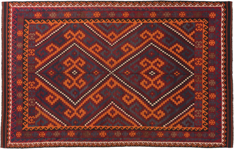 These kilim rugs show a decisive difference to hand-knotted rugs - they are woven by hand. Thus, they do not have a high pile of wool and are often flatter and rougher than knotted wool rugs. Their making is less elaborate and so they are usually much more affordable. As an advantage, kilim rugs are also much lighter and can be laid out from the front and back side. Hand-woven kilims originally come from the former Persia and are now also often made in Afghanistan. They have rather simple, straightforward patterns, which are determined by their weaving technique.