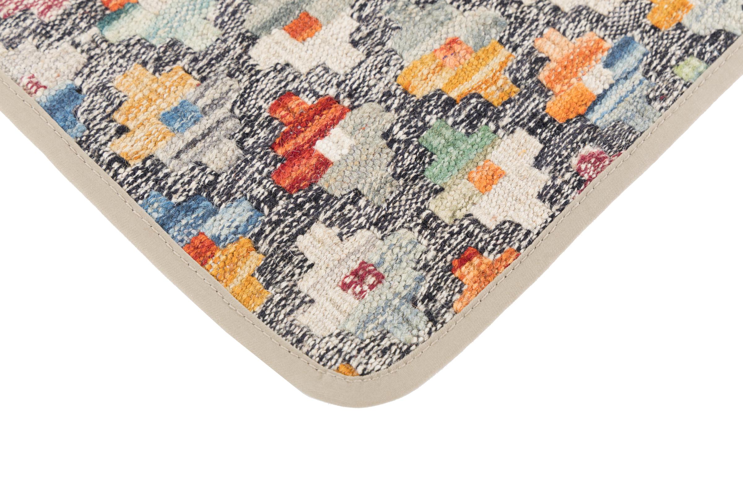 This handwoven Kilim Afghan is a wonderful and unique piece of art. Hard to believe that these modern colours and patterns have already been used centuries ago. This carpet has been woven by hand in old tradition in Afghanistan. It delivers a portion of contemporary history, which you won't find in this specific design a second time. It consists of high-grade natural wool and gives your home a personalised touch.