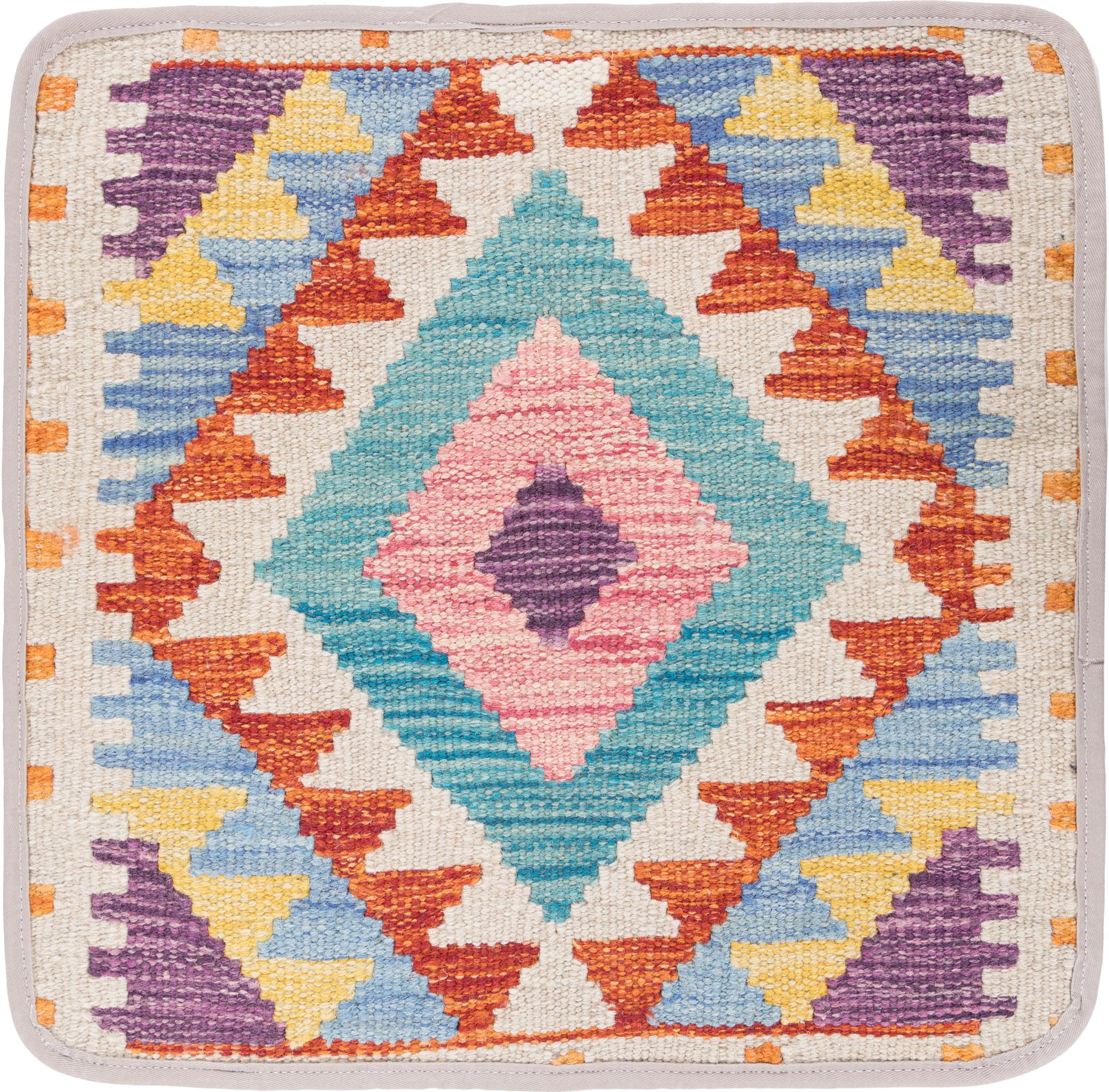 This handwoven Kilim Afghan is a wonderful and unique piece of art. Hard to believe that these modern colours and patterns have already been used centuries ago. This carpet has been woven by hand in old tradition in Afghanistan. It delivers a portion of contemporary history, which you won't find in this specific design a second time. It consists of high-grade natural wool and gives your home a personalised touch.