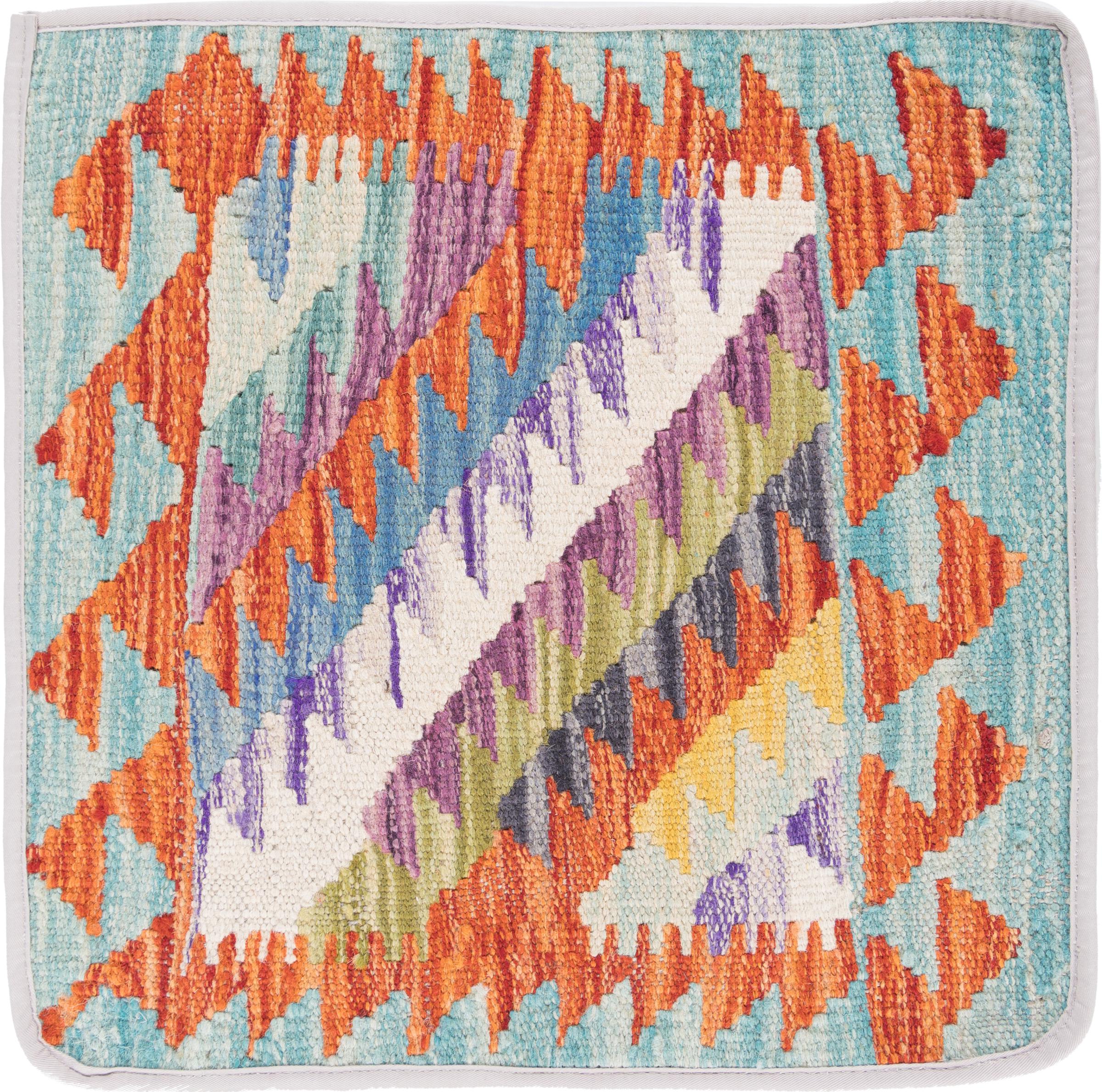 This handwoven Kilim Afghan is a wonderful and unique piece of art. Hard to believe that these modern colours and patterns have already been used centuries ago. This carpet has been woven by hand in old tradition in Afghanistan. It delivers a portion of contemporary history, which you won't find in this specific design a second time. It consists of high-grade natural wool and gives your home a personalised touch.