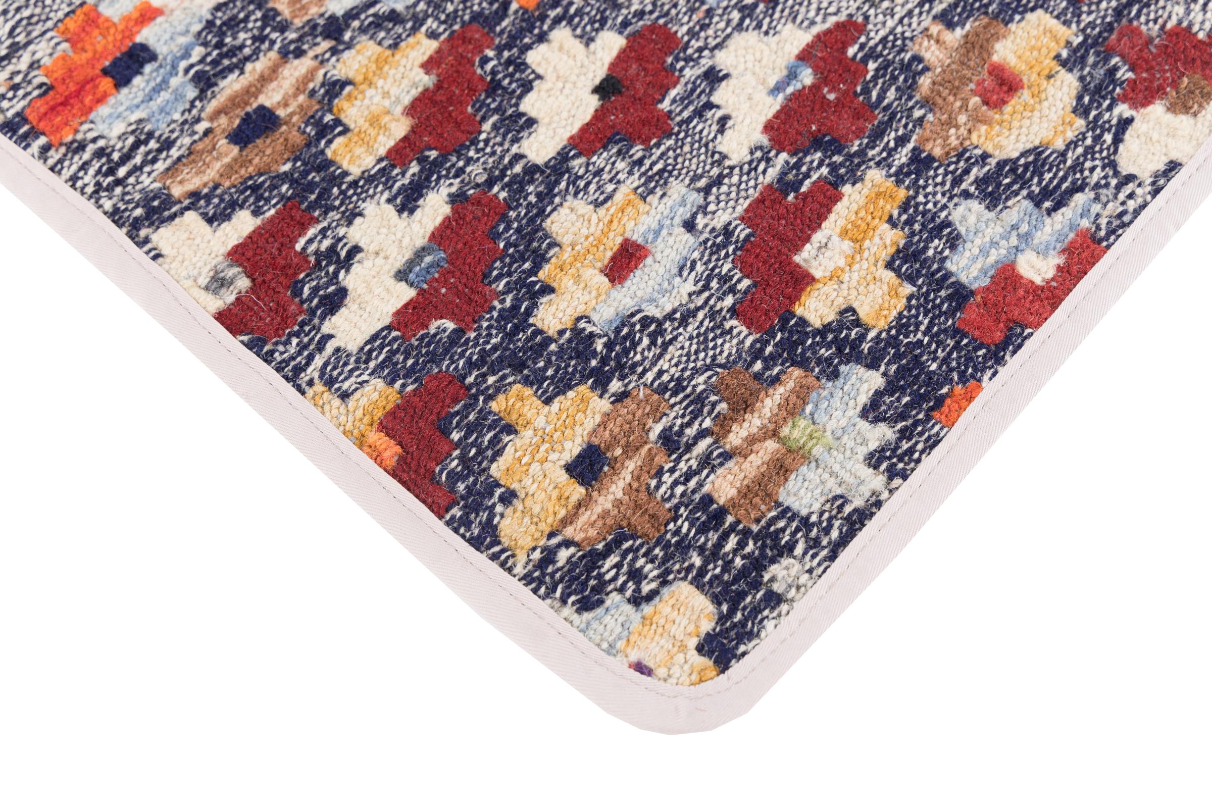 This handwoven Kilim Afghan is a wonderful and unique piece of art. Hard to believe that these modern colours and patterns have already been used centuries ago. This carpet has been woven by hand in old tradition in Afghanistan. It delivers a portion of contemporary history, which you won't find in this specific design a second time. It consists of high-grade natural wool and gives your home a personalised touch.