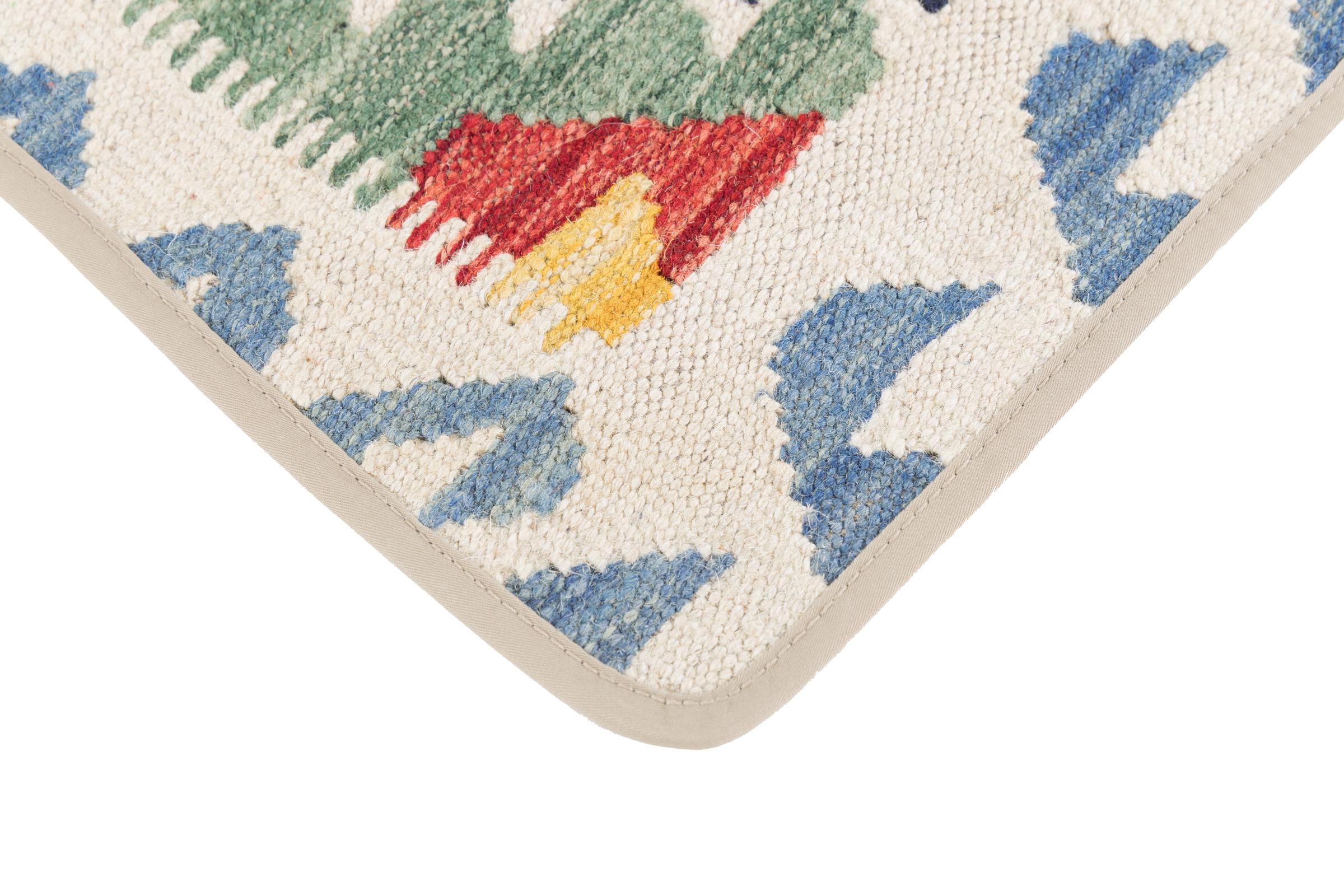 This handwoven Kilim Afghan is a wonderful and unique piece of art. Hard to believe that these modern colours and patterns have already been used centuries ago. This carpet has been woven by hand in old tradition in Afghanistan. It delivers a portion of contemporary history, which you won't find in this specific design a second time. It consists of high-grade natural wool and gives your home a personalised touch.