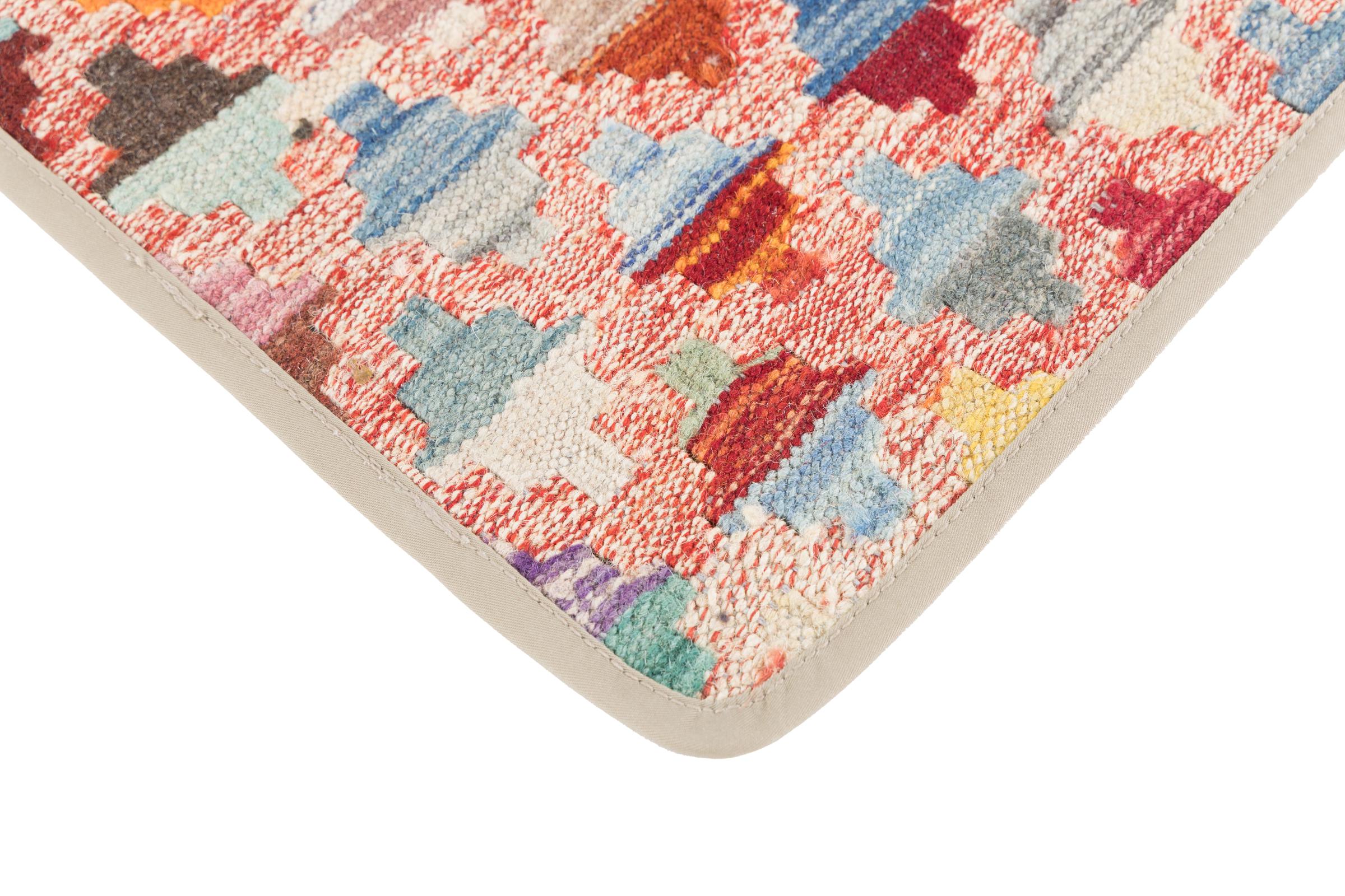 This handwoven Kilim Afghan is a wonderful and unique piece of art. Hard to believe that these modern colours and patterns have already been used centuries ago. This carpet has been woven by hand in old tradition in Afghanistan. It delivers a portion of contemporary history, which you won't find in this specific design a second time. It consists of high-grade natural wool and gives your home a personalised touch.