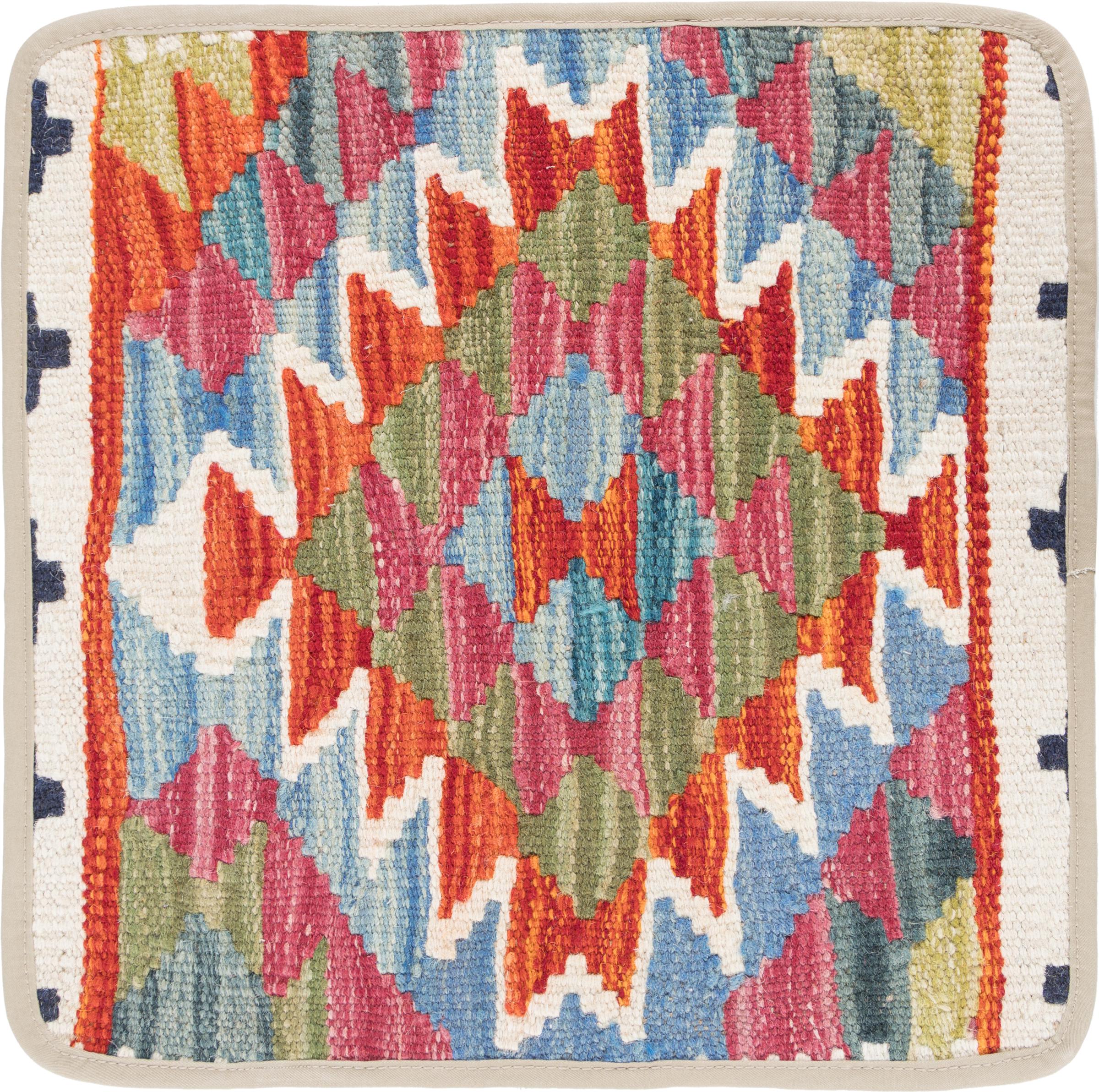 This handwoven Kilim Afghan is a wonderful and unique piece of art. Hard to believe that these modern colours and patterns have already been used centuries ago. This carpet has been woven by hand in old tradition in Afghanistan. It delivers a portion of contemporary history, which you won't find in this specific design a second time. It consists of high-grade natural wool and gives your home a personalised touch.